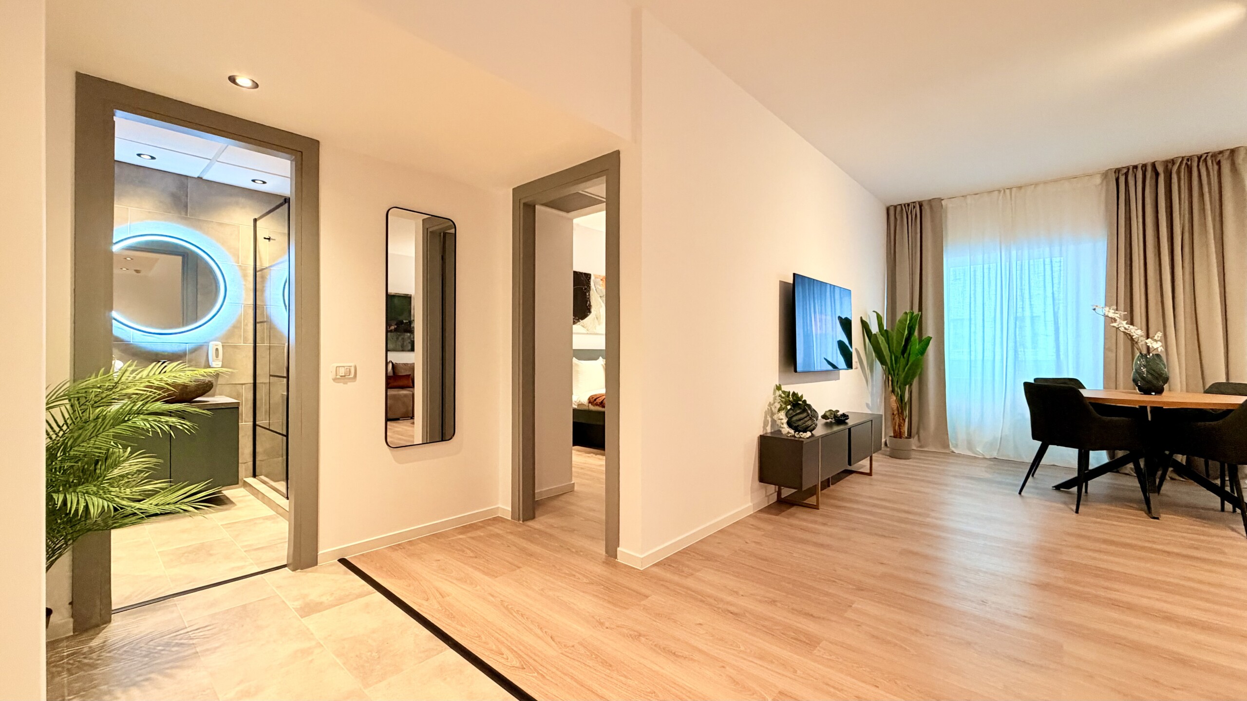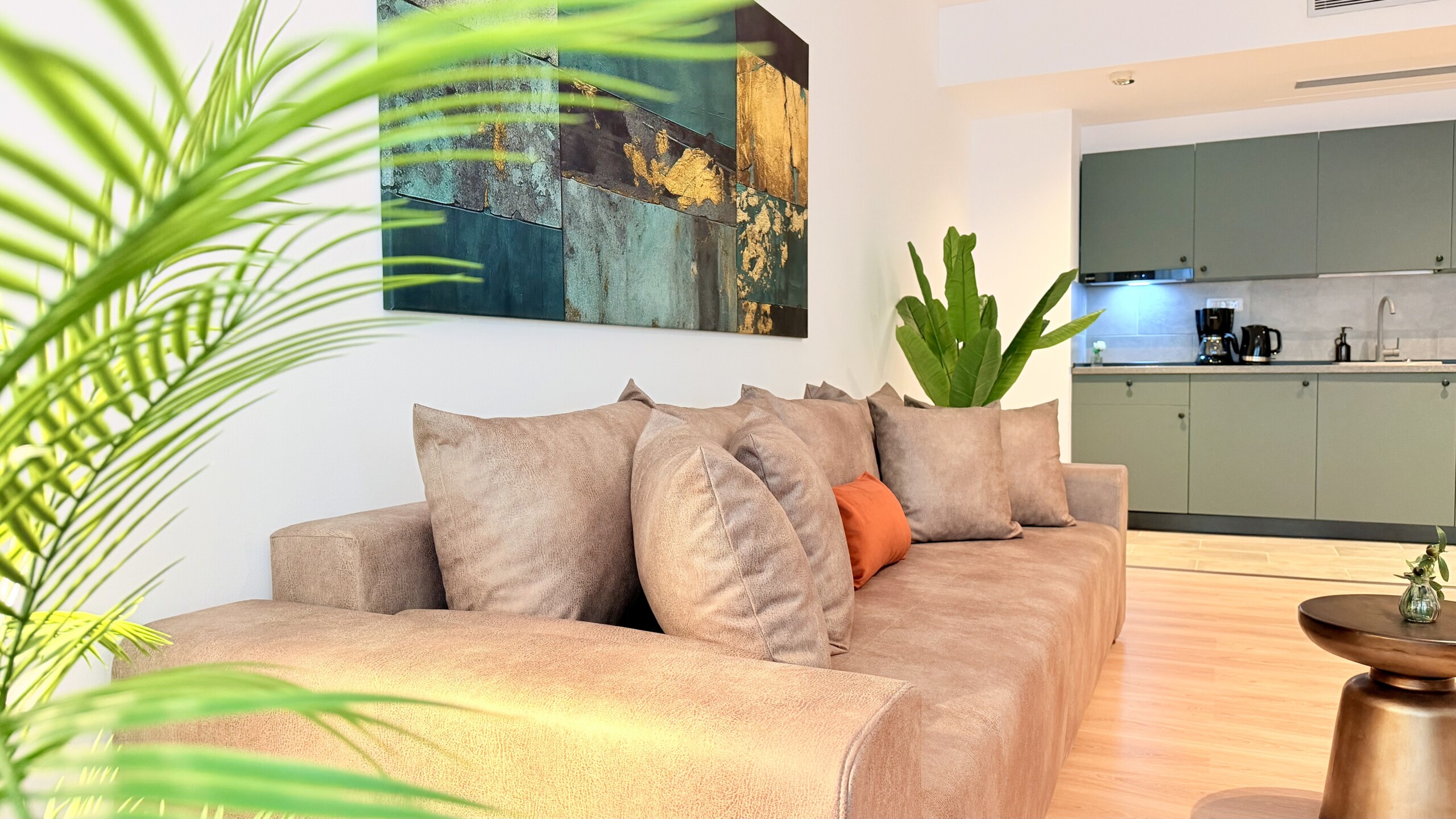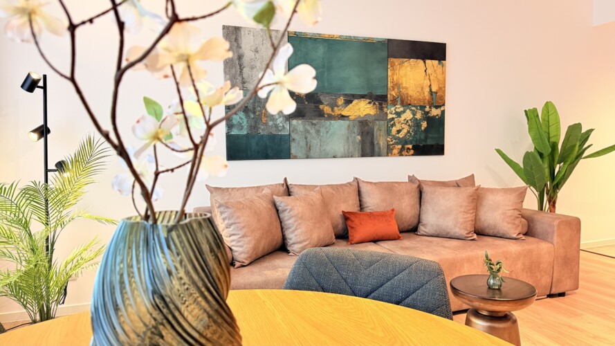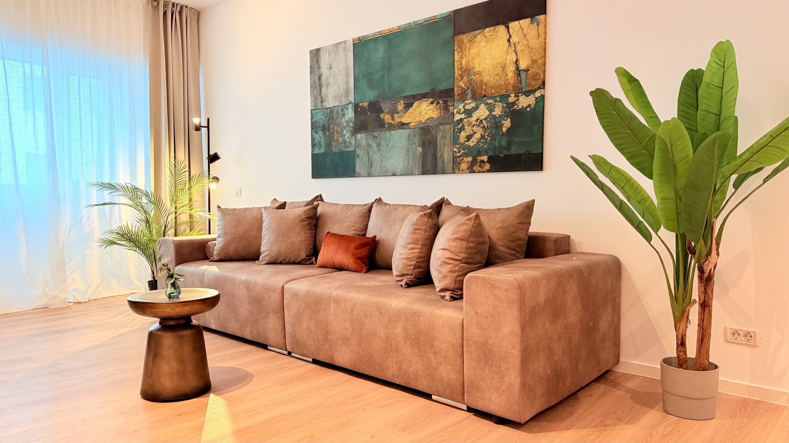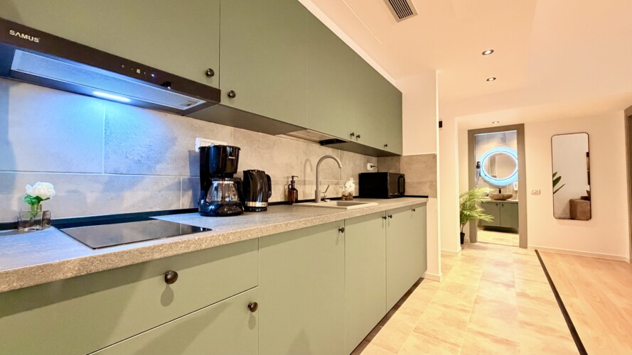 Step into a space where comfort meets charm in our elegant, light-filled apartment. Relax in the inviting living room and enjoy a true cinema-style experience, or retreat to the bedroom where a unique suspended chair creates a cozy and memorable atmosphere.