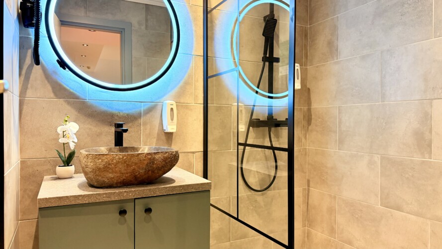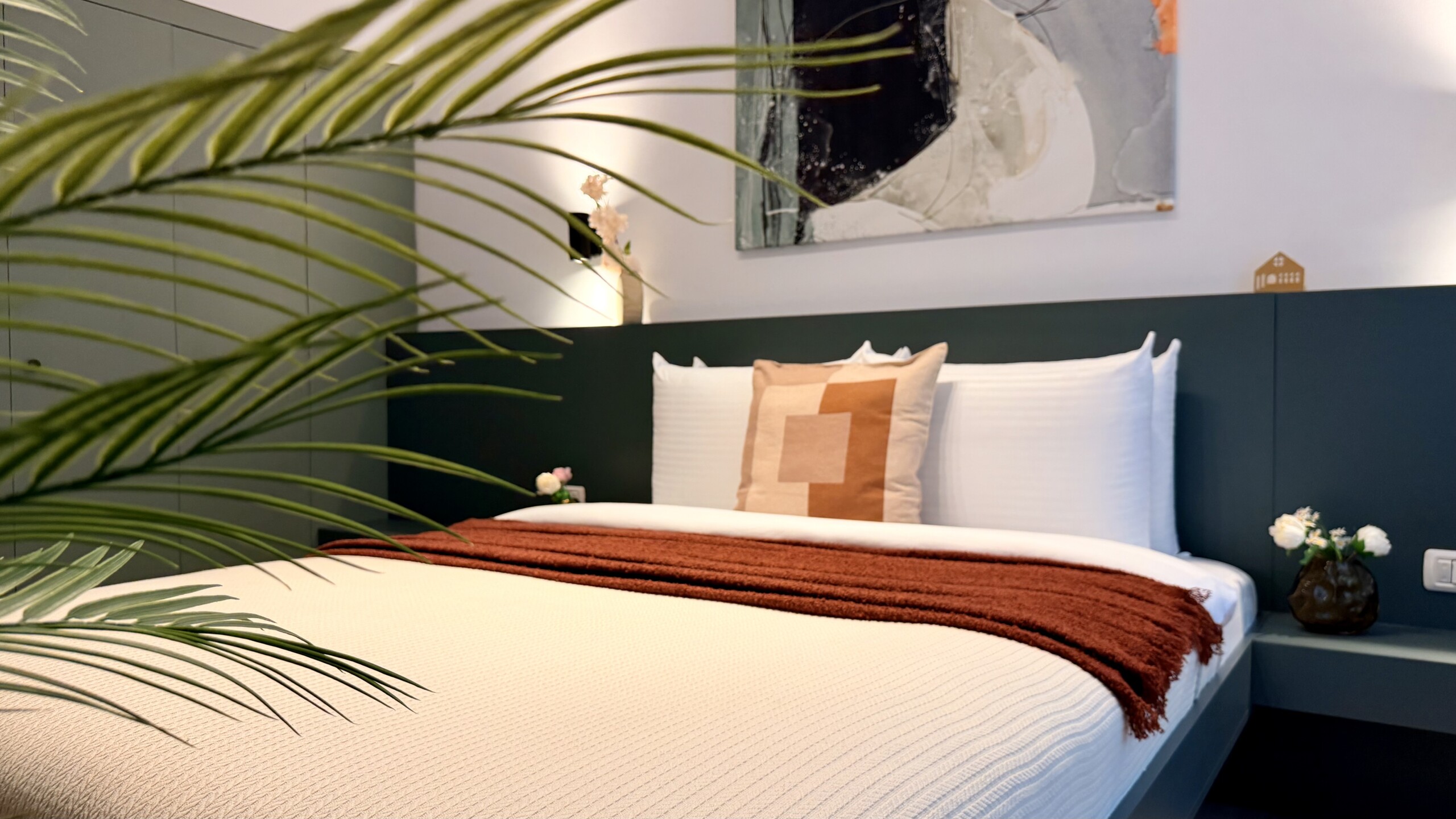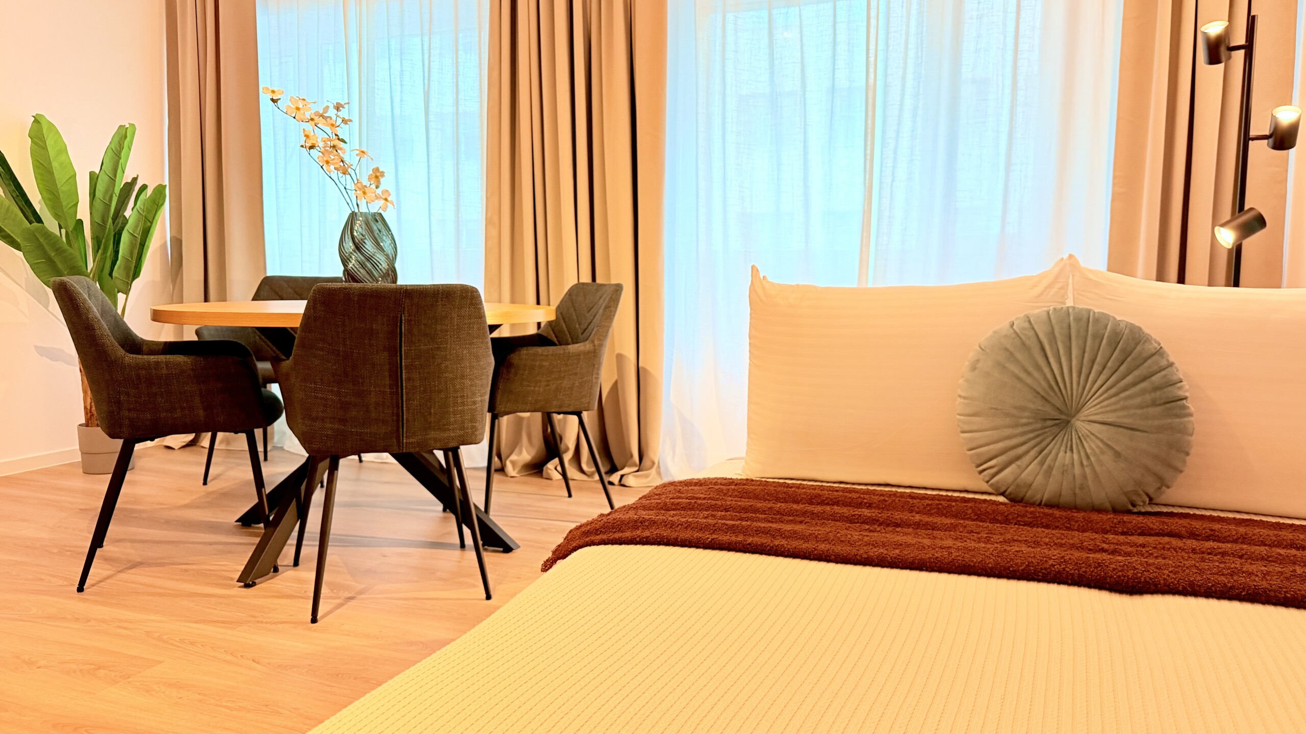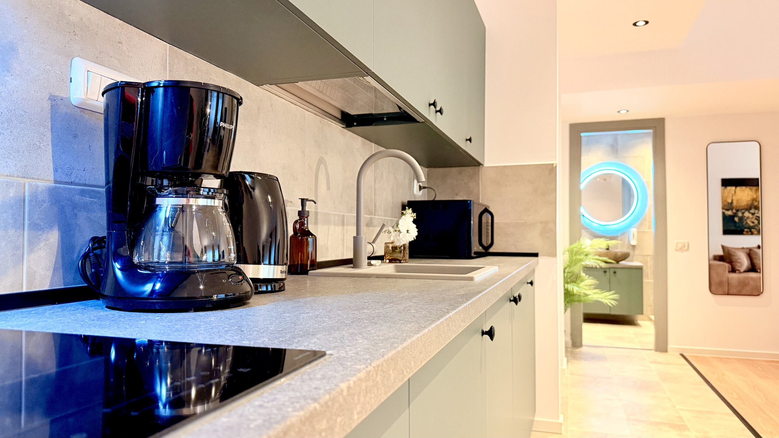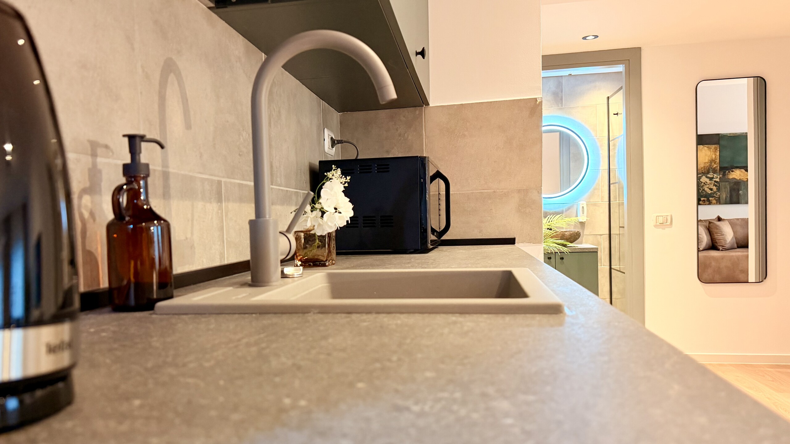 Step into a space where comfort meets charm in our elegant, light-filled apartment. Relax in the inviting living room and enjoy a true cinema-style experience, or retreat to the bedroom where a unique suspended chair creates a cozy and memorable atmosphere.