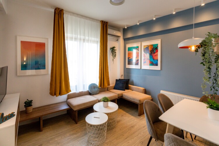 Indulge in modern luxury in our 2BR apartment, offering breathtaking views of Piata Romana.