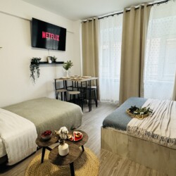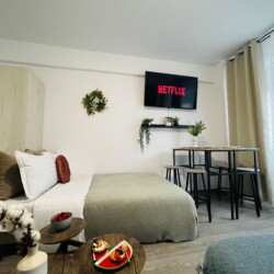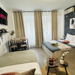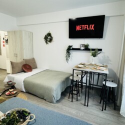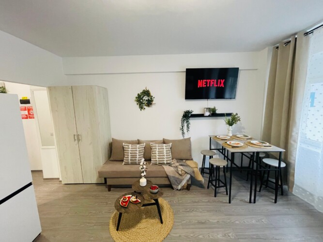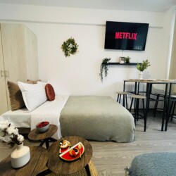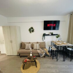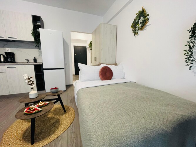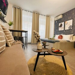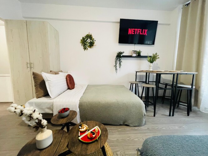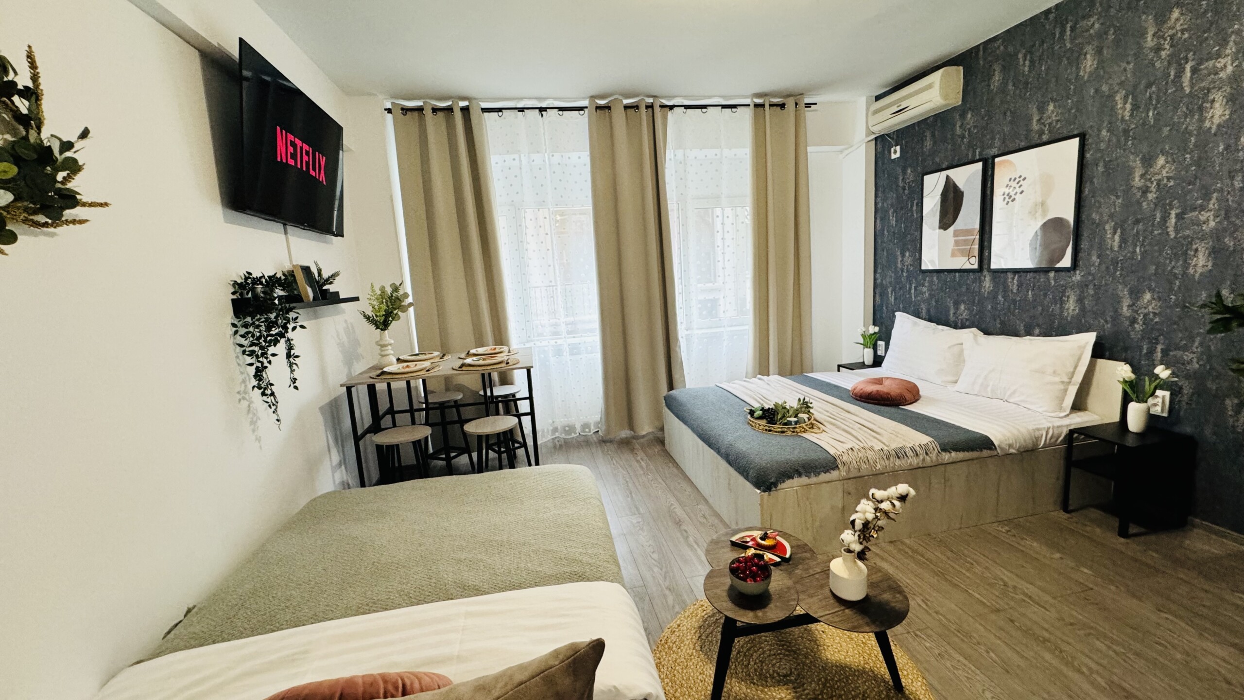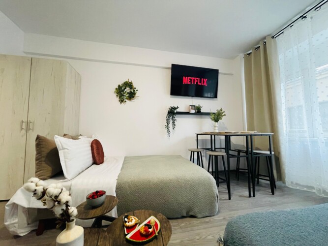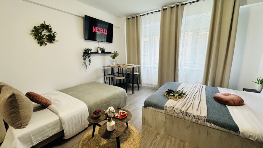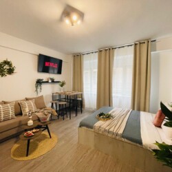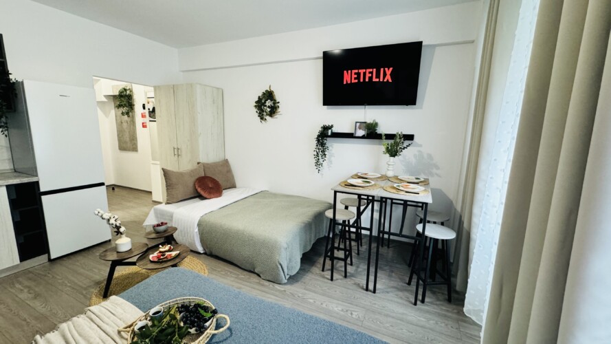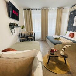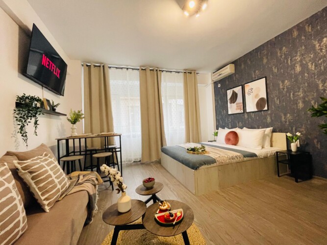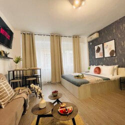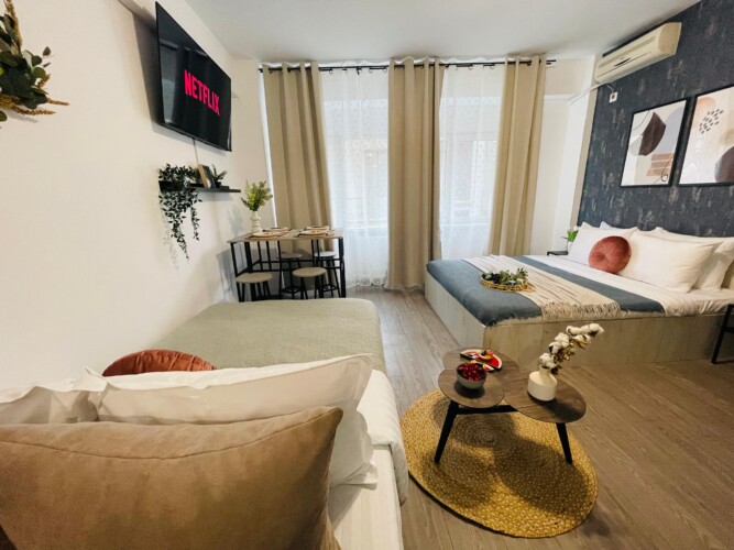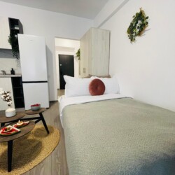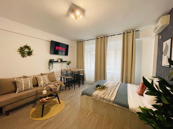 Experience the essence of Bucharest’s Old Town from this cozy studio. Perfectly positioned at the heart of the historic district, you’ll have the Old Town’s charm right at your doorstep. Wander through streets lined with colorful buildings, discover hidden gems around every corner, and immerse yourself in the city’s rich history and culture. With major attractions, cafes, and bustling markets just steps away, this studio offers an ideal blend of convenience and authenticity for your stay. PLEASE NOTE: *The space can only be used for residential purposes. For any other use, such as photoshoots or videoshoots (videoclips, videoblogs etc.), you must have our approval. It is strictly forbidden to record and publish images of the apartment without our approval. The rental amount for photo/videoshoots starts from 100 euros, depending on your needs. For a correct price offer for this purpose, please contact us in advance, before making the reservation. **There is no TV cable (the TV can be used for different apps – Netflix available). ***If you want the extensible sofa to be prepared for sleeping, you must notify us before the check-in time. Any request regarding the sleeping arrangement after the check-in may involve extra costs.