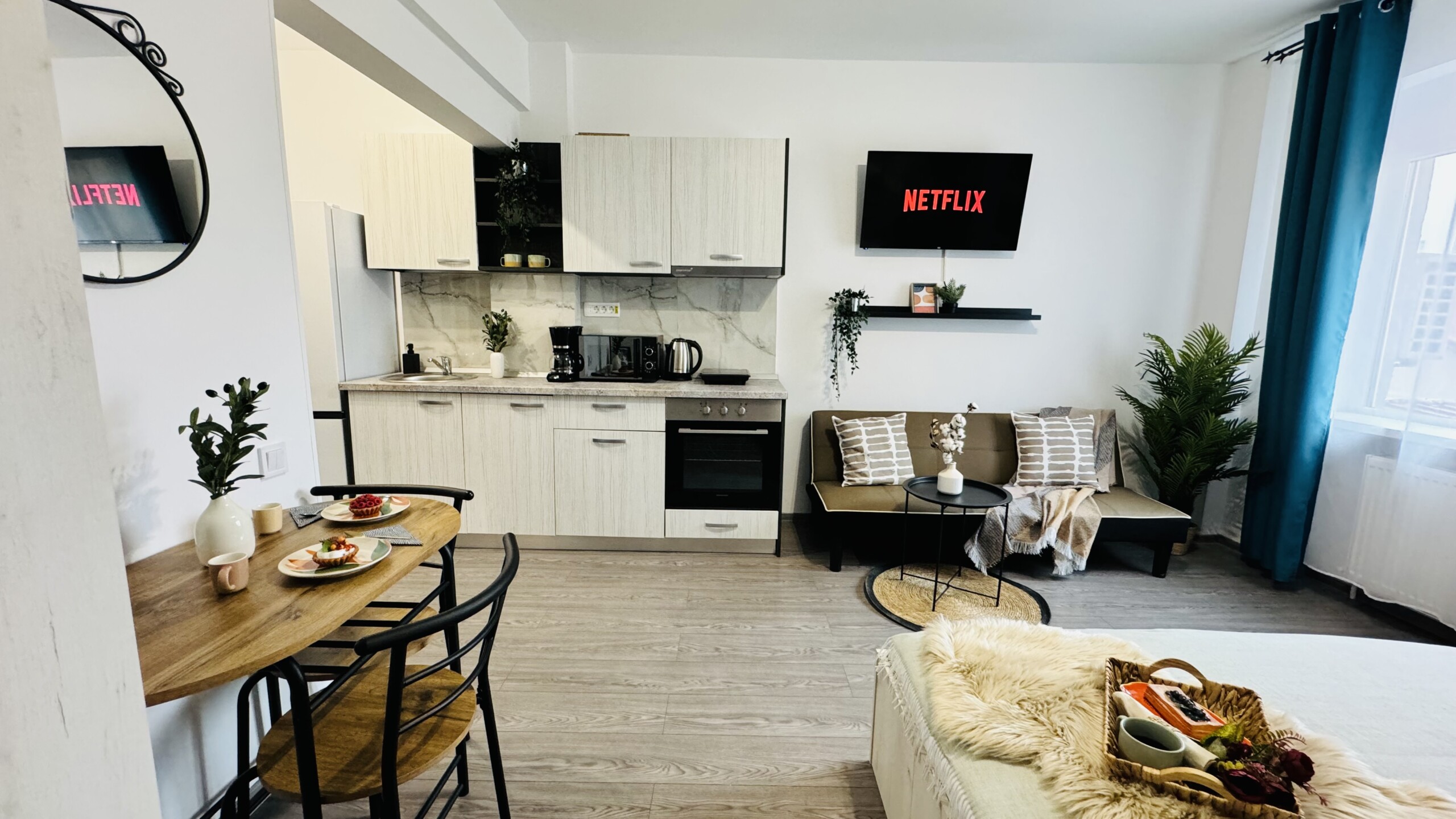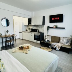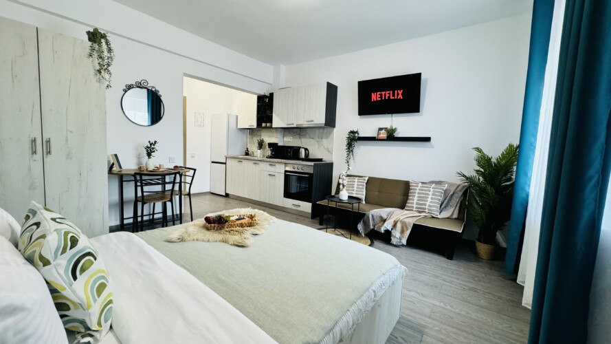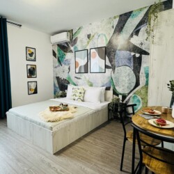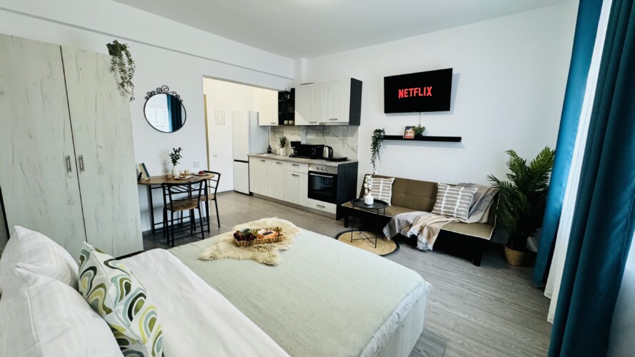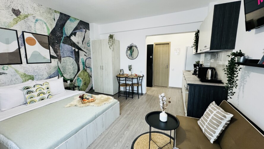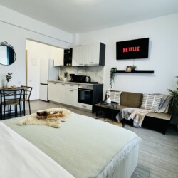 Live at the pulse of Bucharest’s Old Town in this inviting studio. Nestled in the heart of the historic district, you’ll find yourself surrounded by the energy and charm of the city’s most iconic neighborhood. Step outside and be greeted by bustling streets filled with cafes, shops, and cultural treasures waiting to be explored. With easy access to all the must-see sights and sounds of Bucharest, this studio is the perfect launchpad for your urban adventure in the Old Town. PLEASE NOTE: *The space can only be used for residential purposes. For any other use, such as photoshoots or videoshoots (videoclips, videoblogs etc.), you must have our approval. It is strictly forbidden to record and publish images of the apartment without our approval. The rental amount for photo/videoshoots starts from 100 euros, depending on your needs. For a correct price offer for this purpose, please contact us in advance, before making the reservation. **There is no TV cable (the TV can be used for different apps – Netflix available). ***If you want the extensible sofa to be prepared for sleeping, you must notify us before the check-in time. Any request regarding the sleeping arrangement after the check-in may involve extra costs.