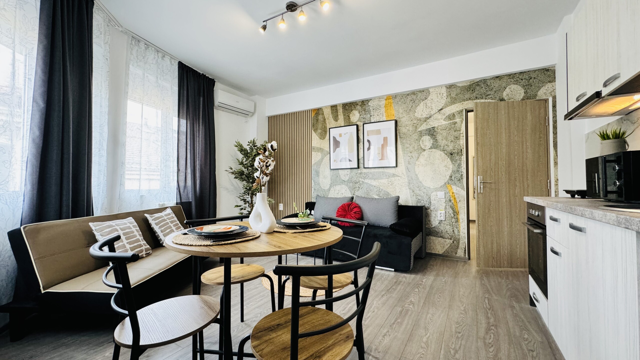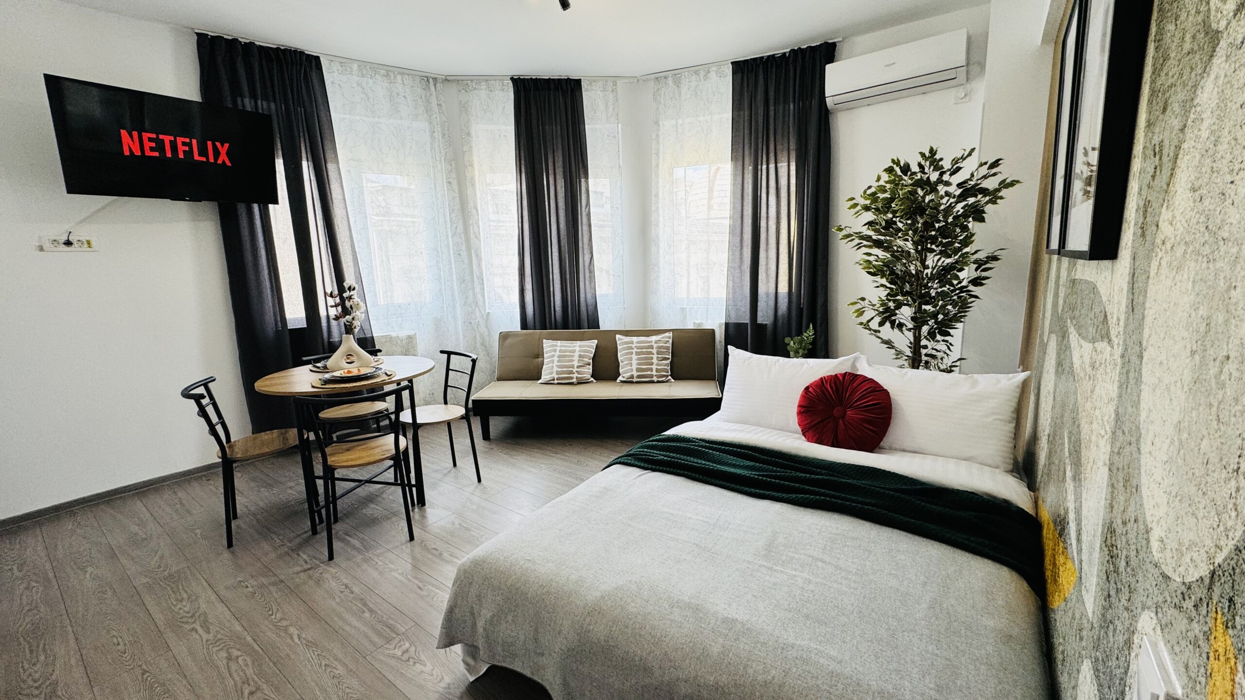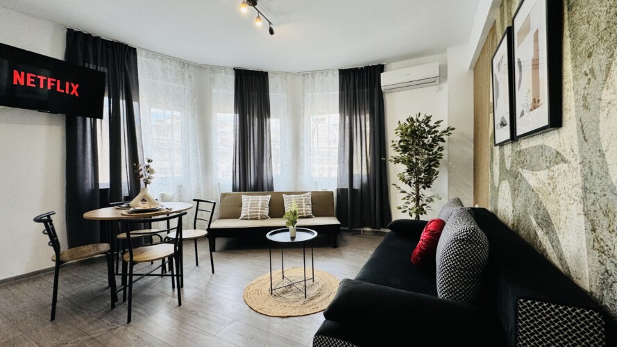 Welcome to your sanctuary in the heart of Bucharest’s Old Town. This delightful apartment provides a perfect mix of comfort and convenience, located just moments from the lively streets and vibrant ambiance of the historic district. Whether you’re savoring a coffee at a nearby cafe or exploring the city’s landmarks, everything you require is right at your fingertips. Discover the distinct charm of Old Town living with this centrally situated apartment as your home base. PLEASE NOTE: *The space can only be used for residential purposes. For any other use, such as photoshoots or videoshoots (videoclips, videoblogs etc.), you must have our approval. It is strictly forbidden to record and publish images of the apartment without our approval. The rental amount for photo/videoshoots starts from 100 euros, depending on your needs. For a correct price offer for this purpose, please contact us in advance, before making the reservation. **There is no TV cable (the TV can be used for different apps – Netflix available). ***If you want the extensible sofa to be prepared for sleeping, you must notify us before the check-in time. Any request regarding the sleeping arrangement after the check-in may involve extra costs.