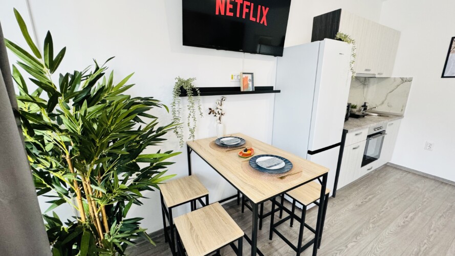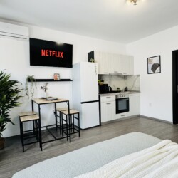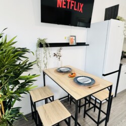 **There is no TV cable (the TV can be used for different apps – Netflix available).