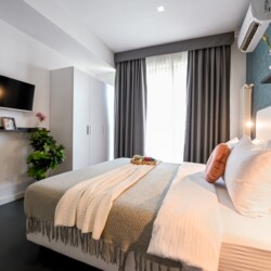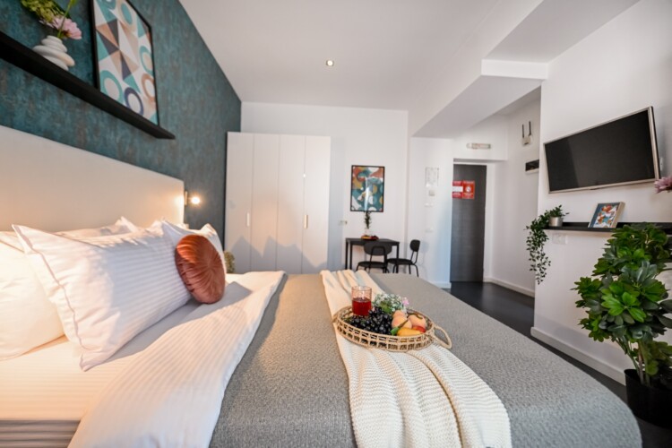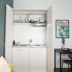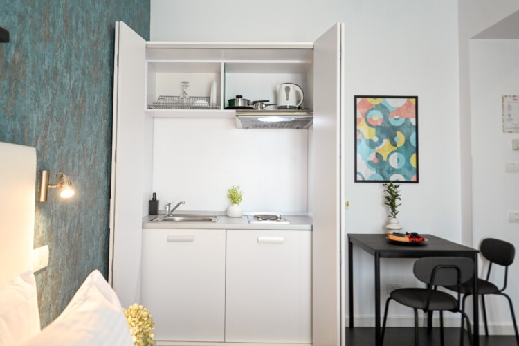This elegant studio features a kitchenette, high-speed Wi-Fi, and a comfortable sleeping area designed for relaxation.
