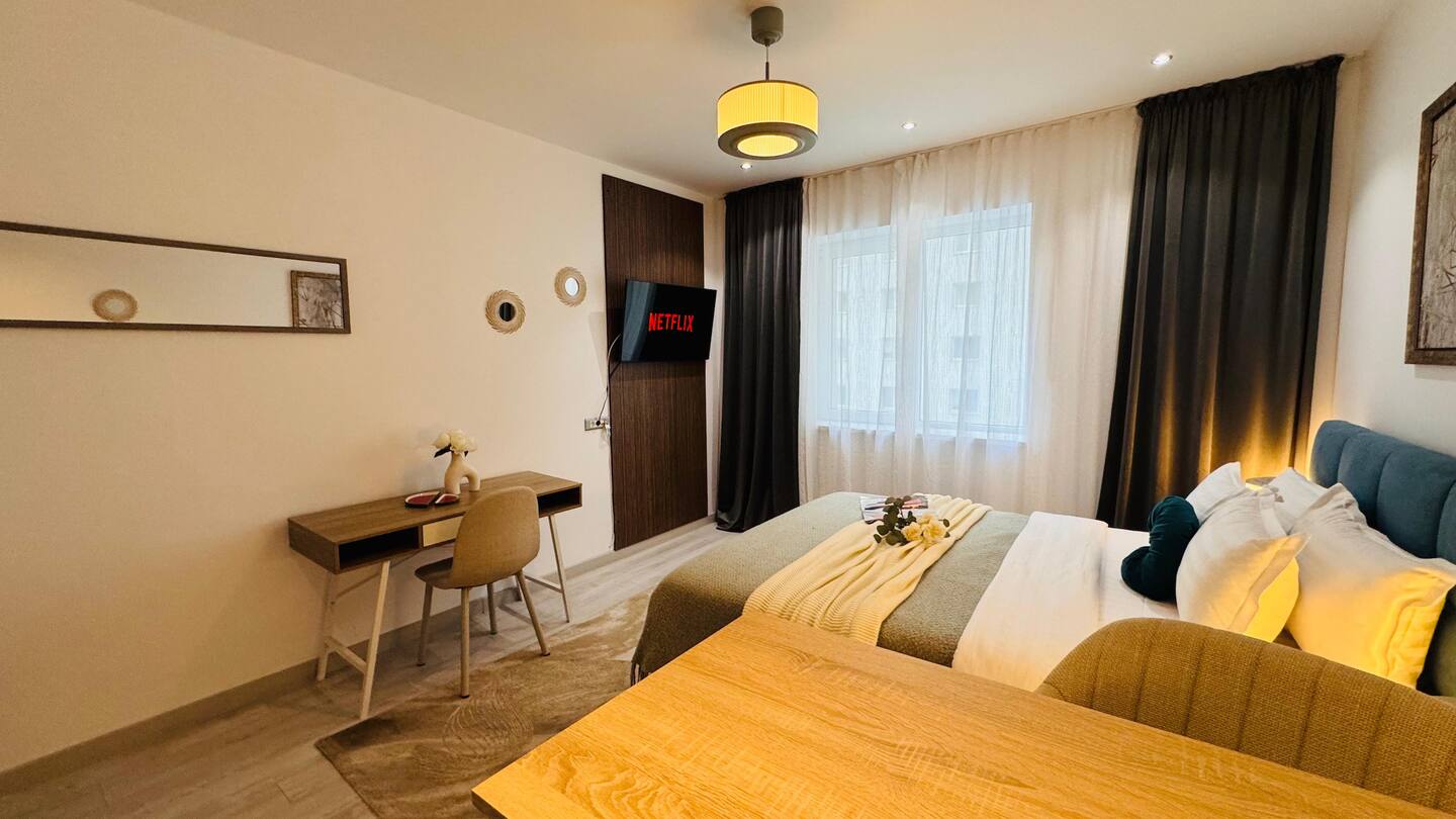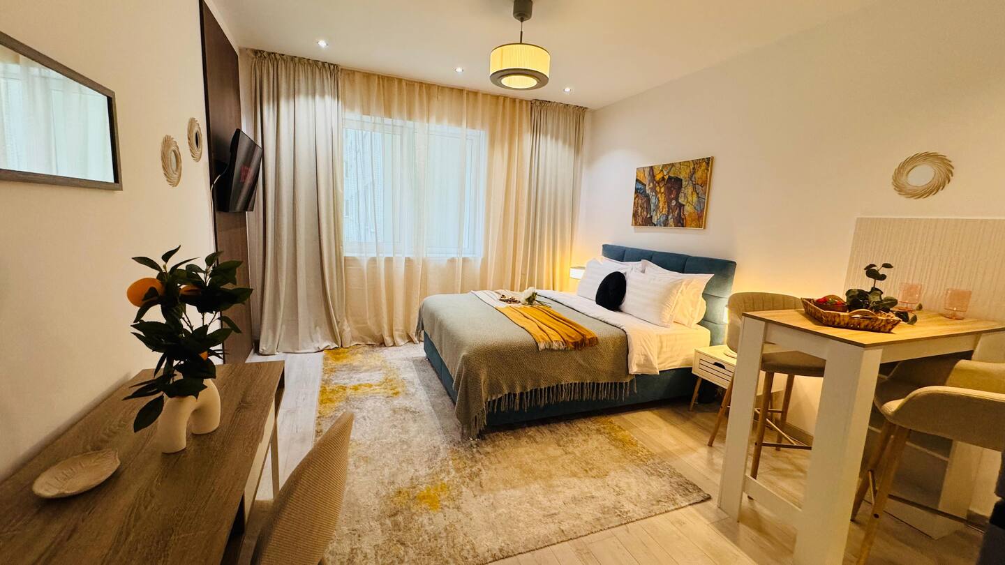 Experience the ideal mix of comfort and style in our deluxe studio, nestled within a modern aparthotel building.