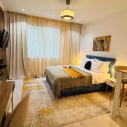 Enjoy a comfortable stay in our deluxe studio, located within a modern aparthotel building that offers both style and convenience.