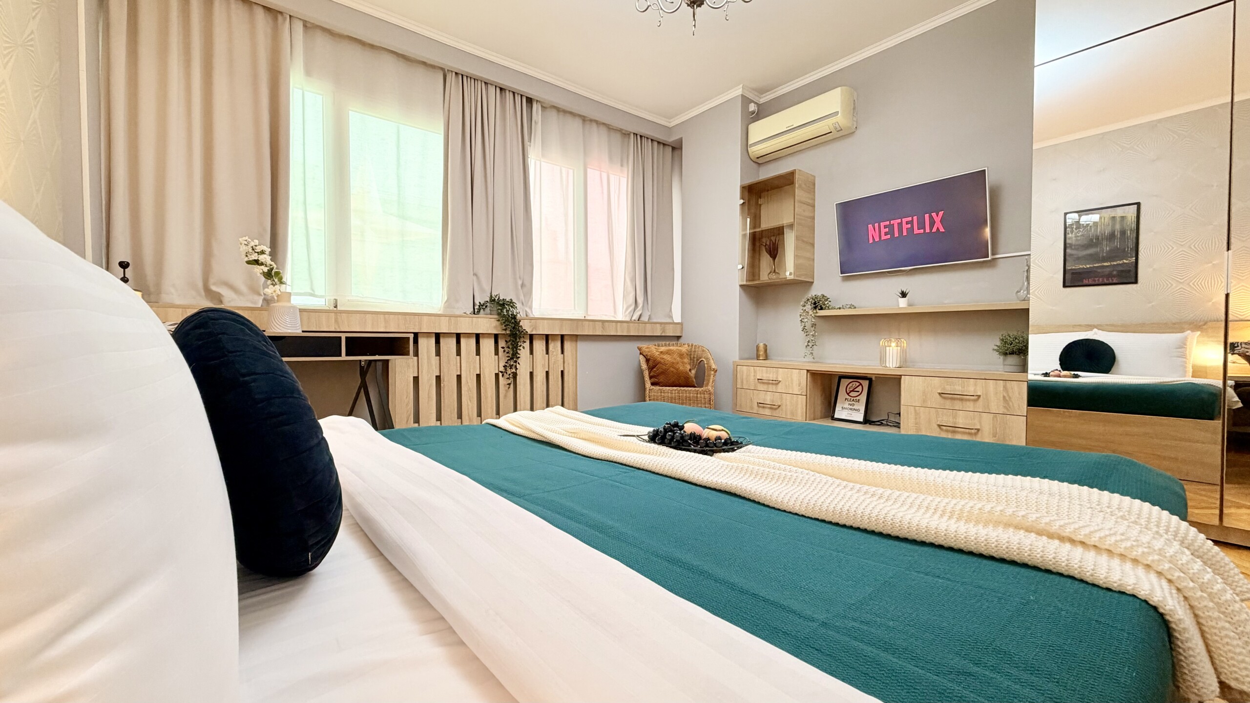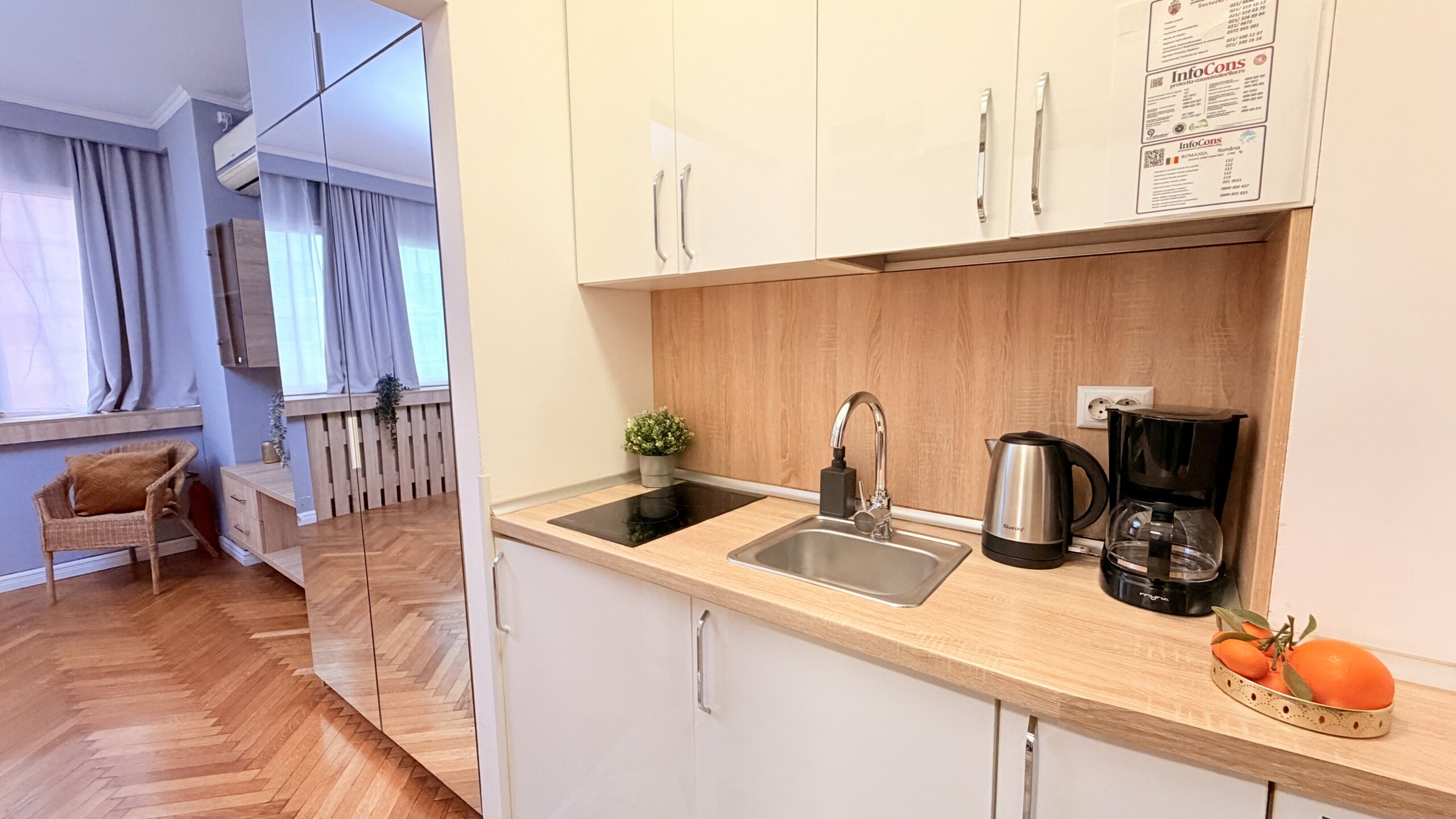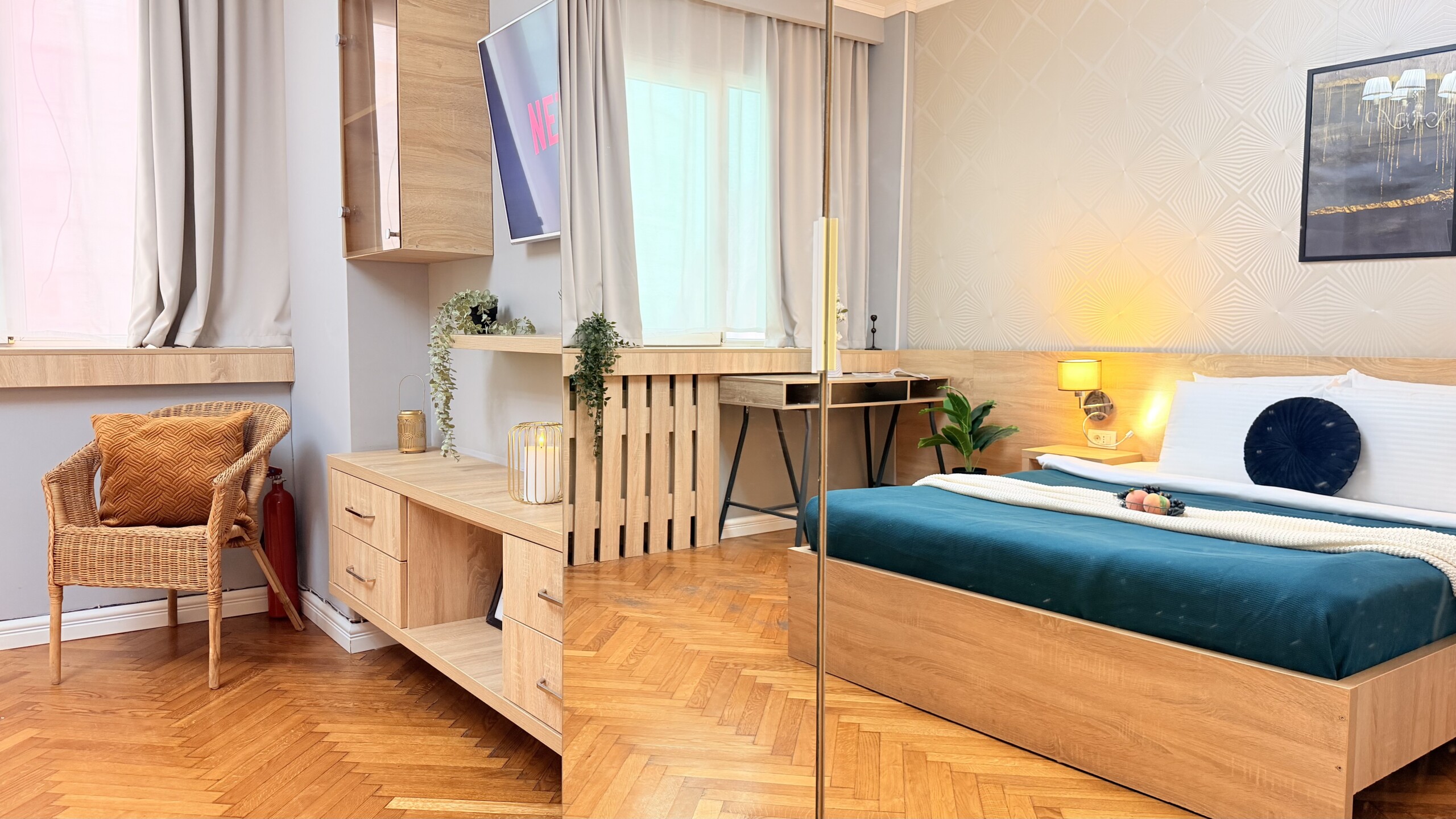 The apartment is perfect for people having a holiday downtown or a business trip. Ideally located right in the heart of the city, you have the old town within walking distance so you can easily enjoy its nightlife and its various offer of bars, restaurants or clubs. The apartment comes with a desk, which is amazing when you have some work to do as well.