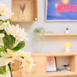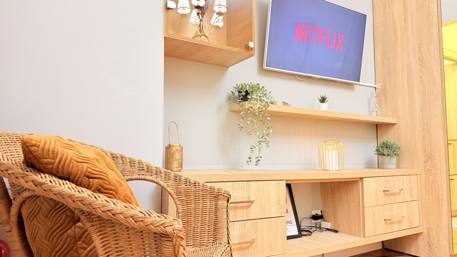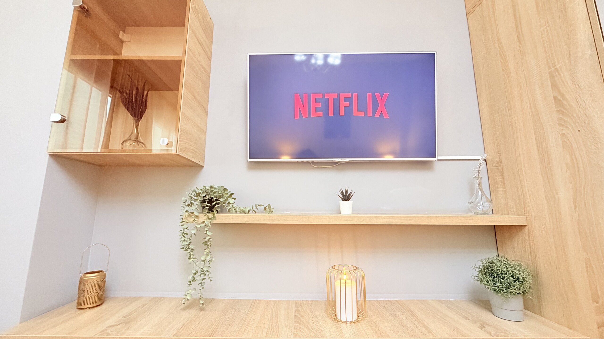 **There is no TV cable (the TV can be used for different apps – Netflix available).