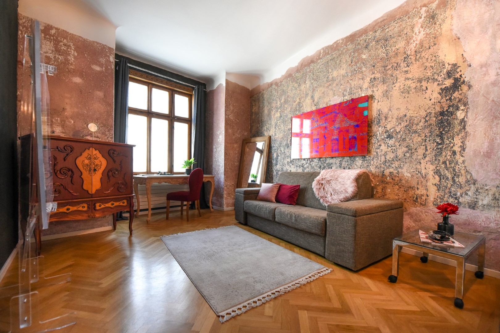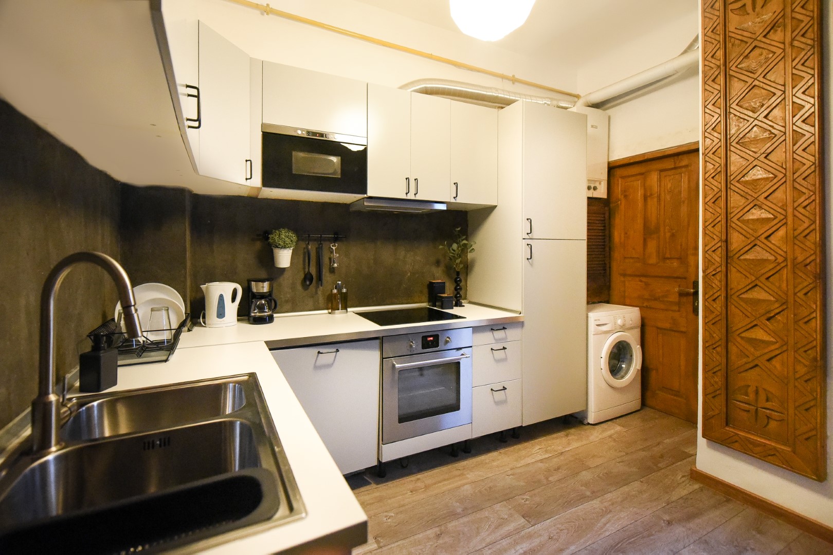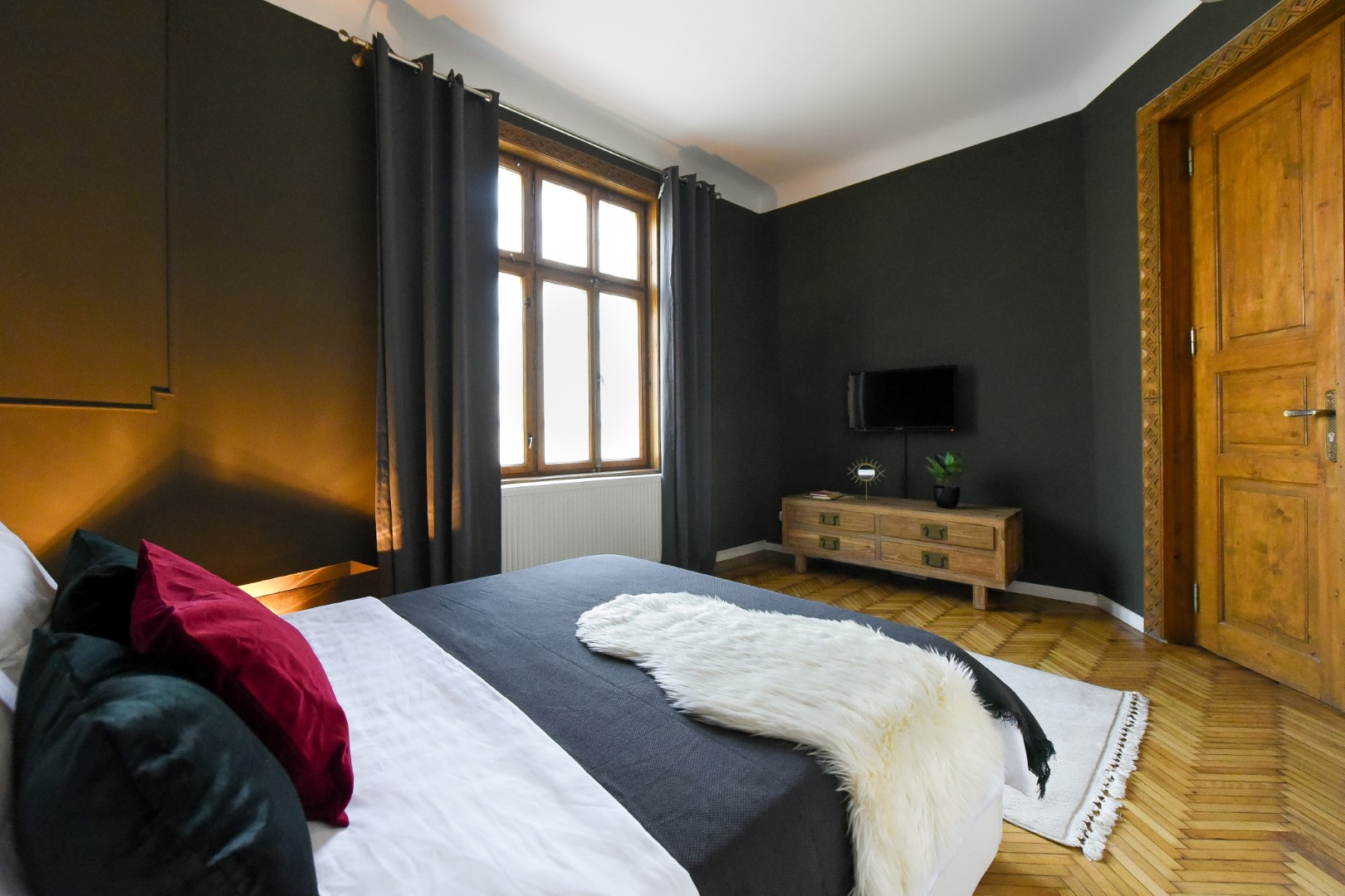 Full of old-world charm with contemporary touches, this apartment is a celebration of traditional features with a modern flare. The beautiful heavy wood detailing creates a comfortable environment away from the bustle of the city. Located close to Cismigiu Park and just a few steps from the very lively Old Town streets, there are plenty of shops, restaurants, and cafés on your doorstep.