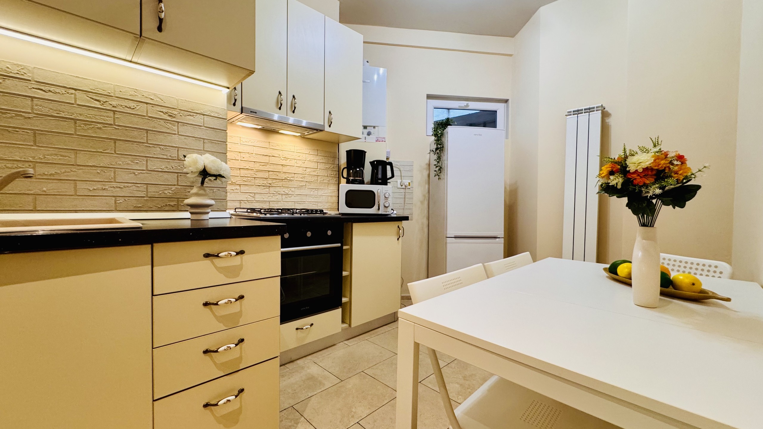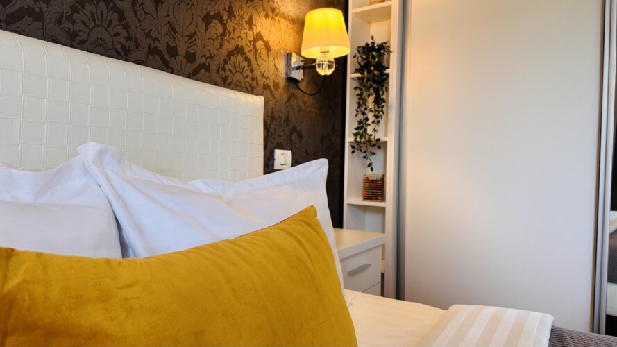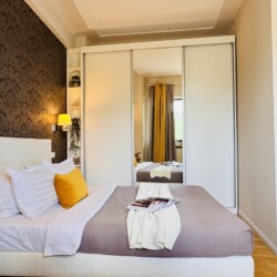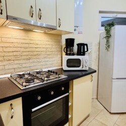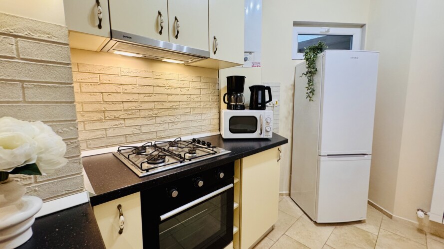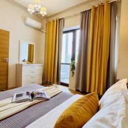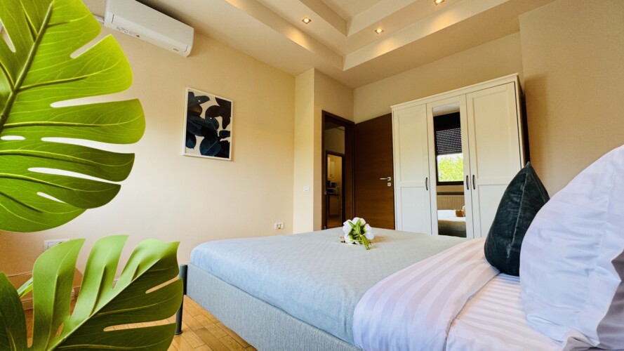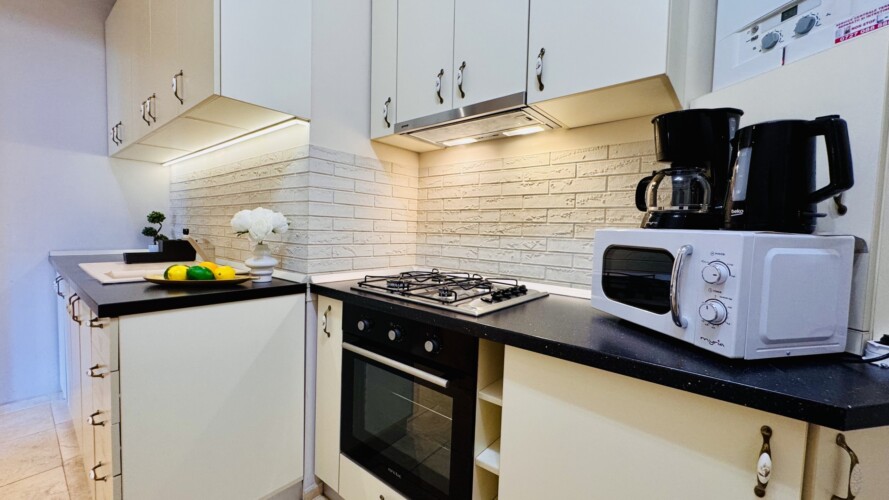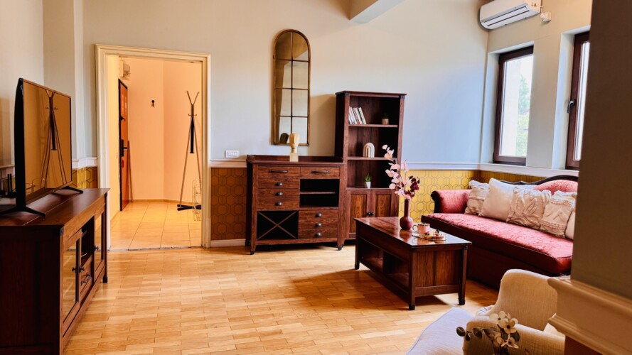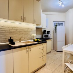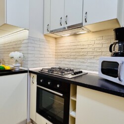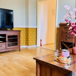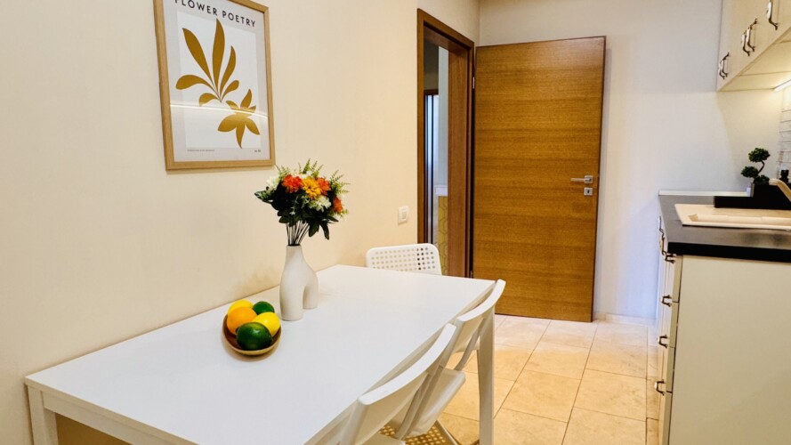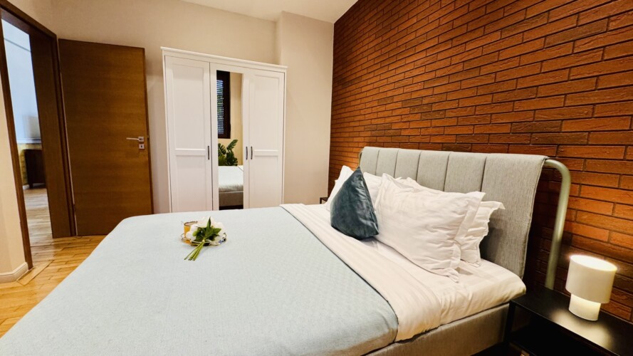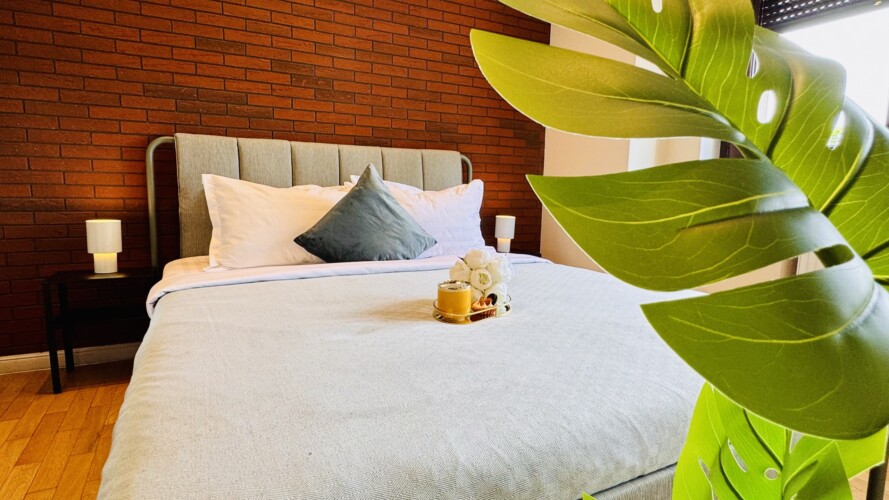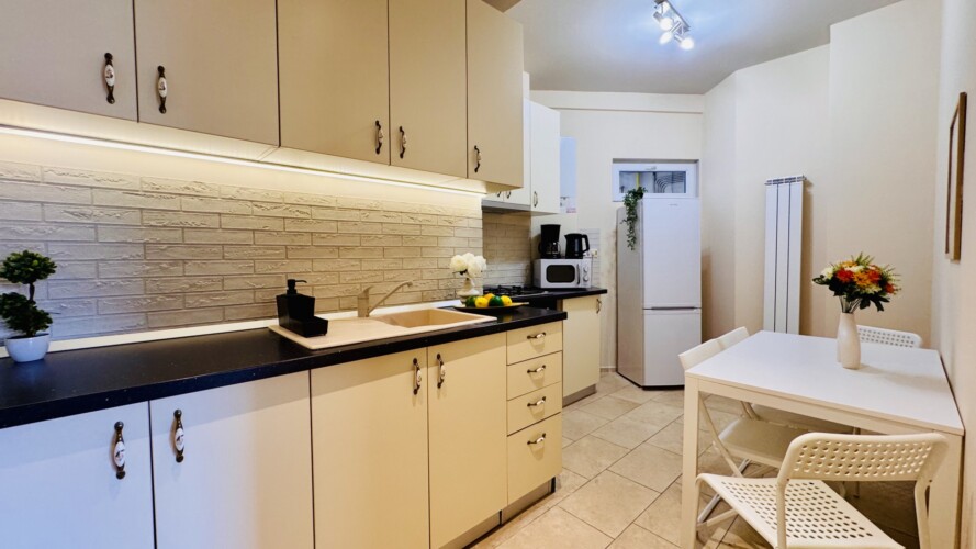 The apartment features 2 cozy bedrooms and thoughtfully curated décor that combines clean lines with warm touches. Enjoy a fully equipped kitchen, high-speed Wi-Fi, and everything you need to feel right at home.