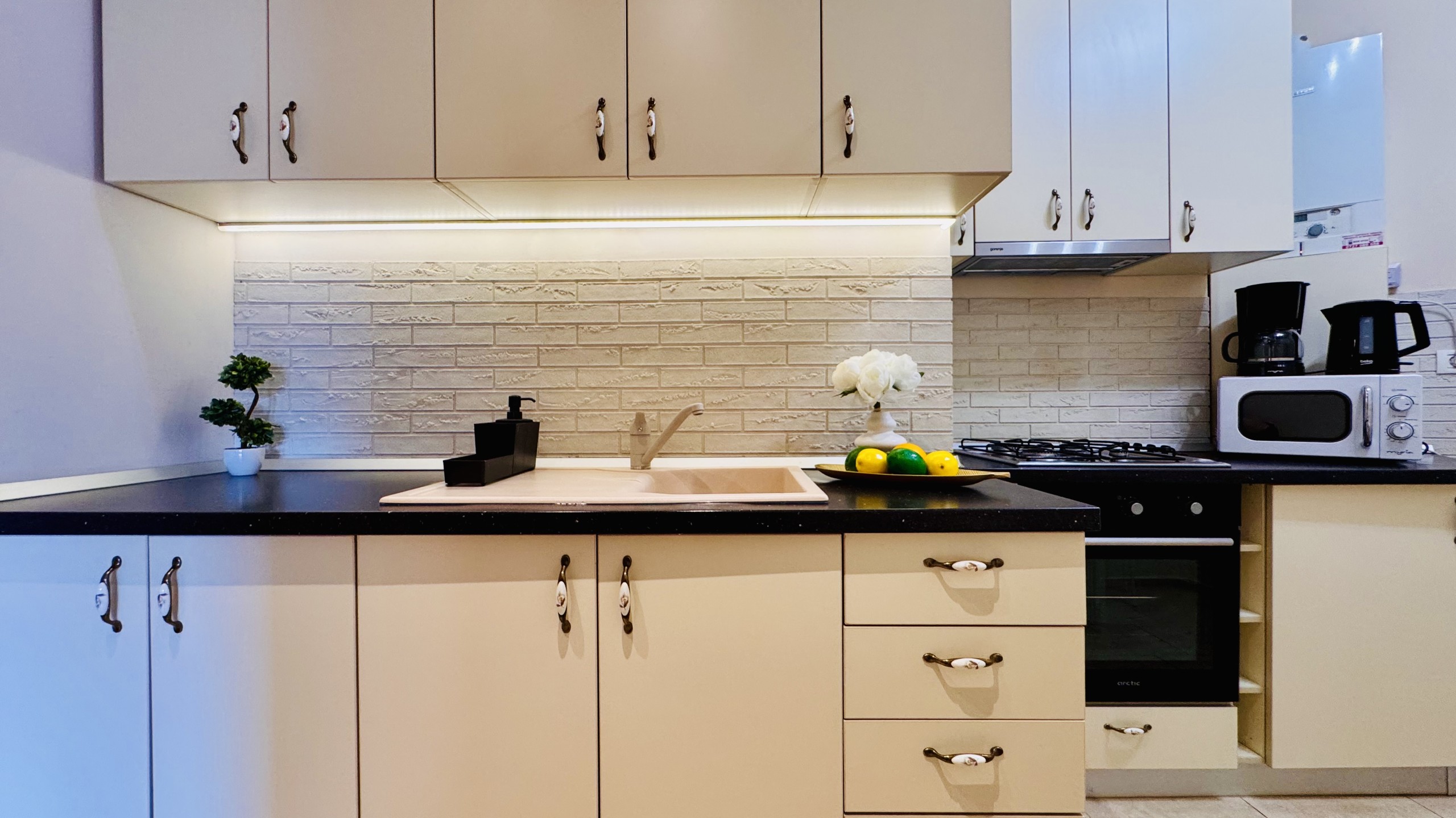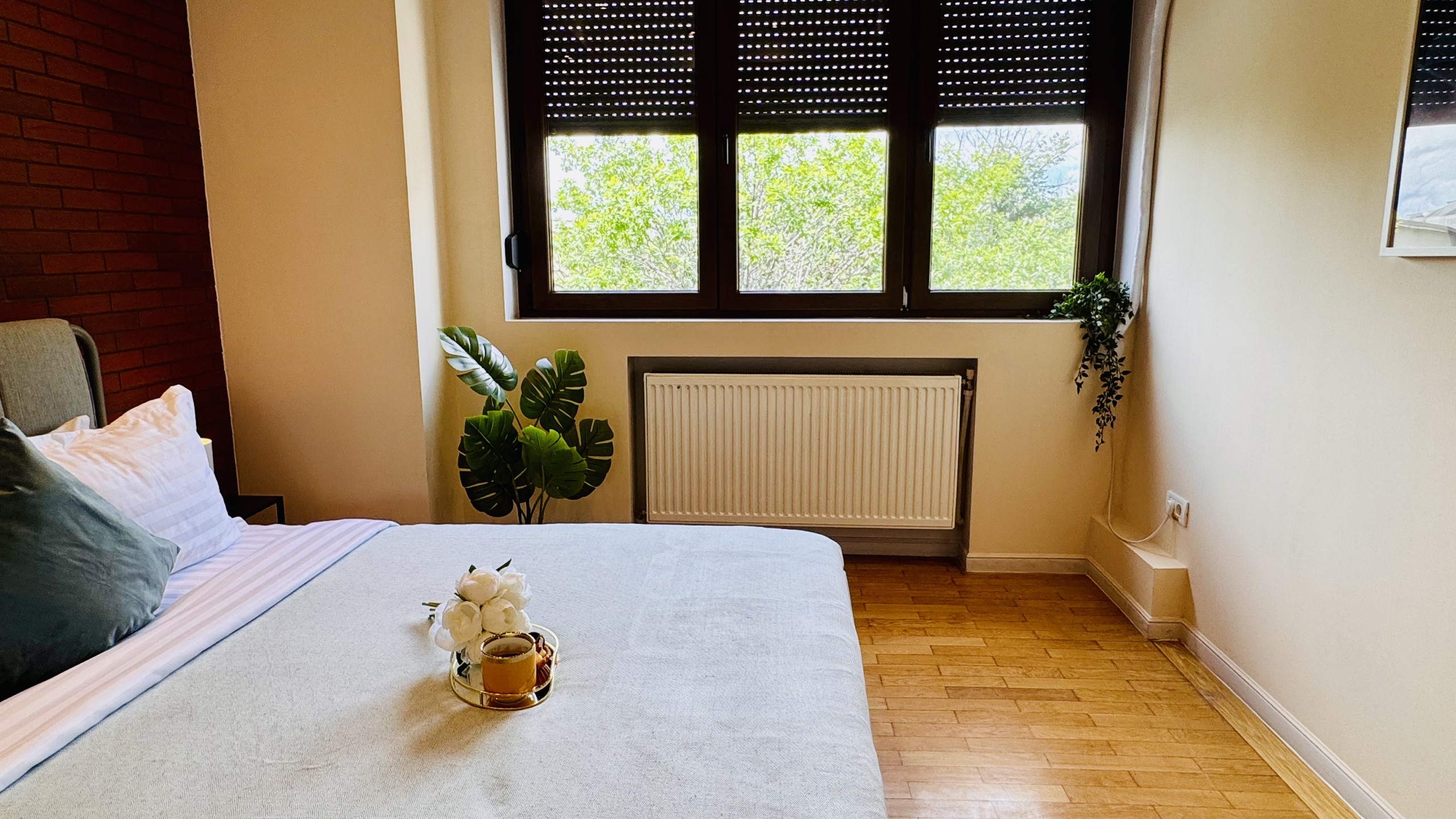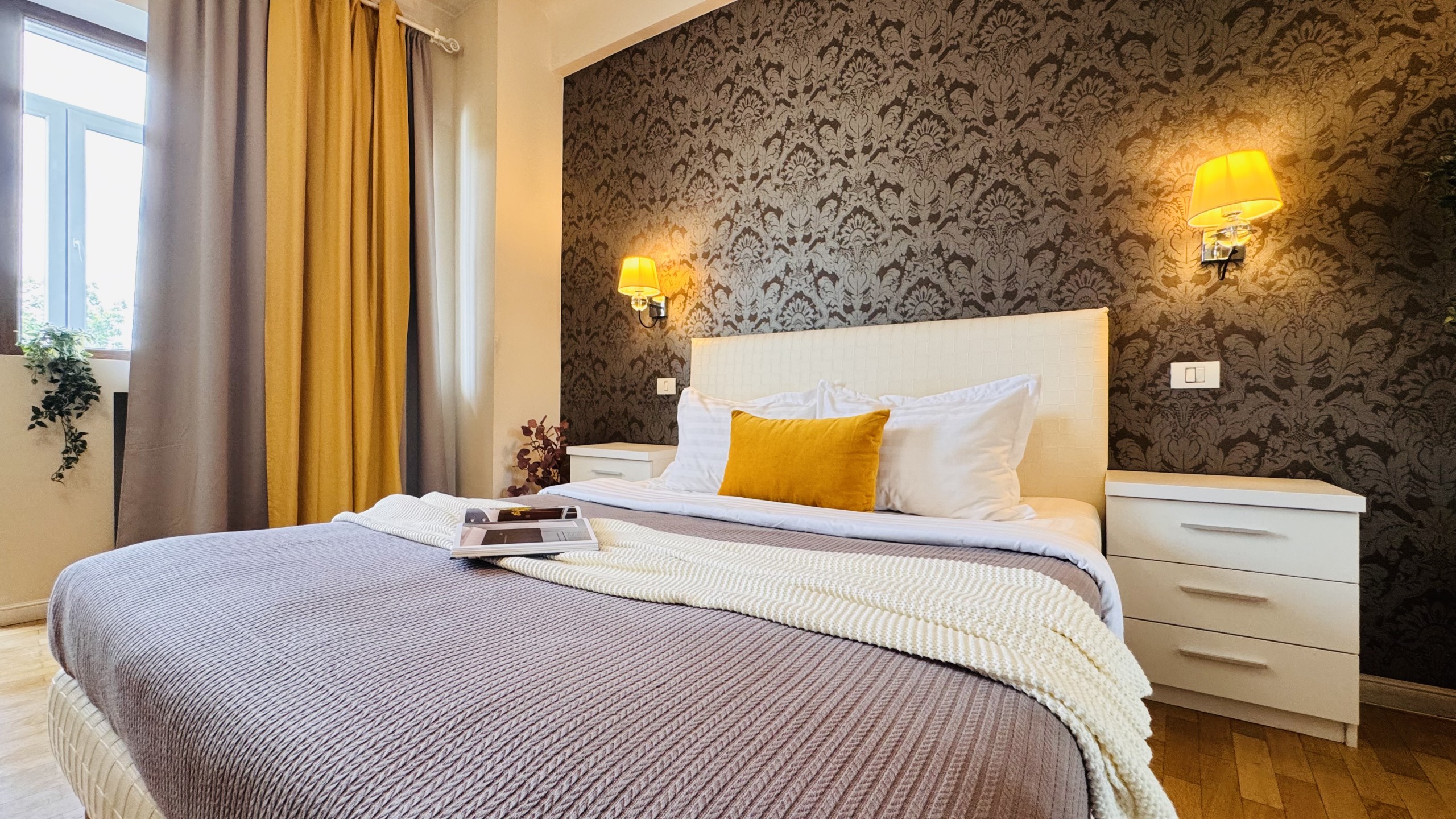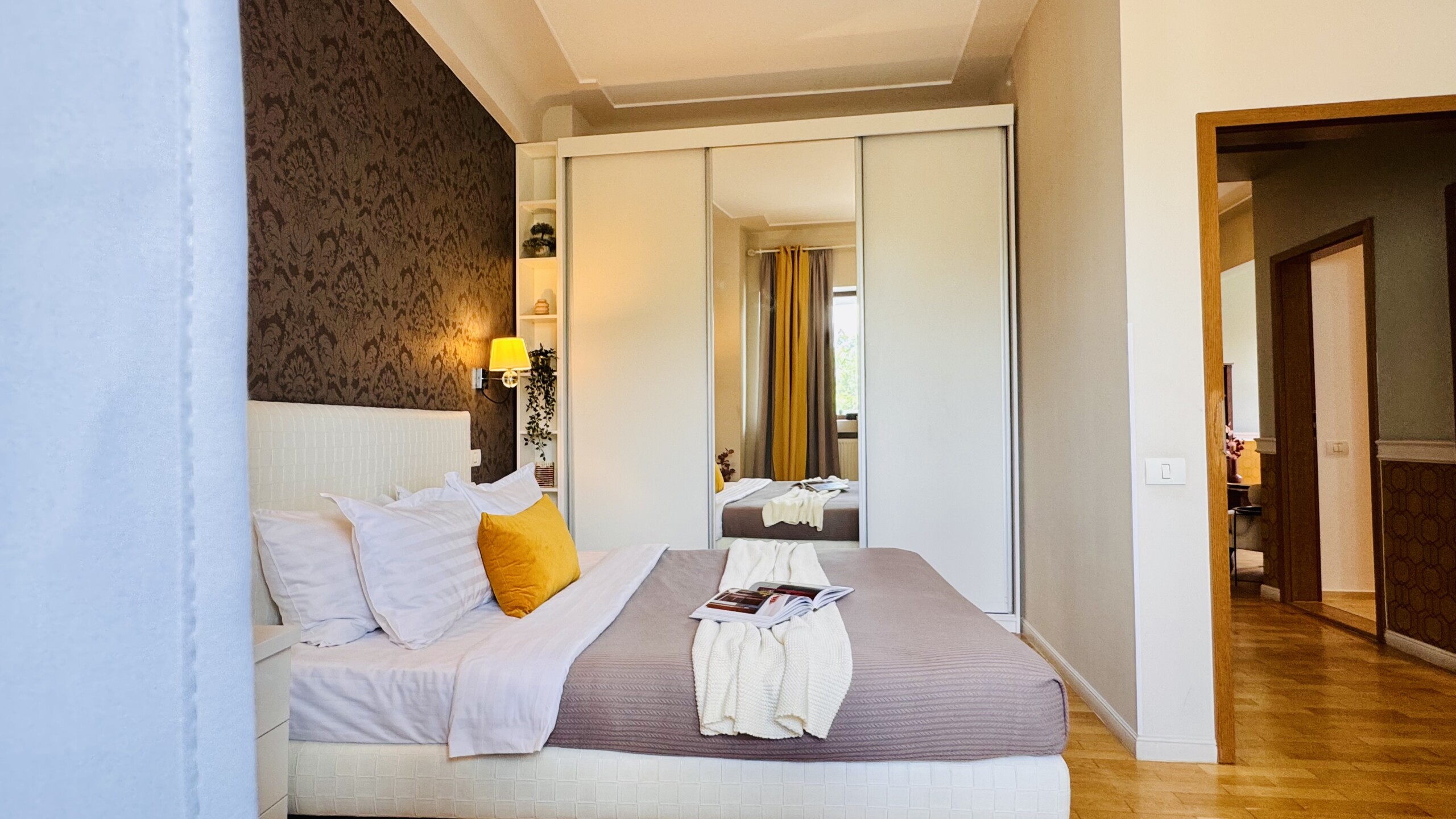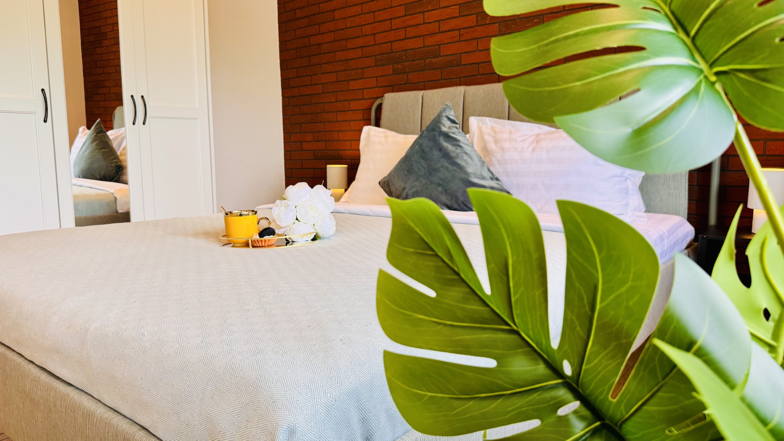 The apartment features 2 cozy bedrooms and thoughtfully curated décor that combines clean lines with warm touches. Enjoy a fully equipped kitchen, high-speed Wi-Fi, and everything you need to feel right at home.
