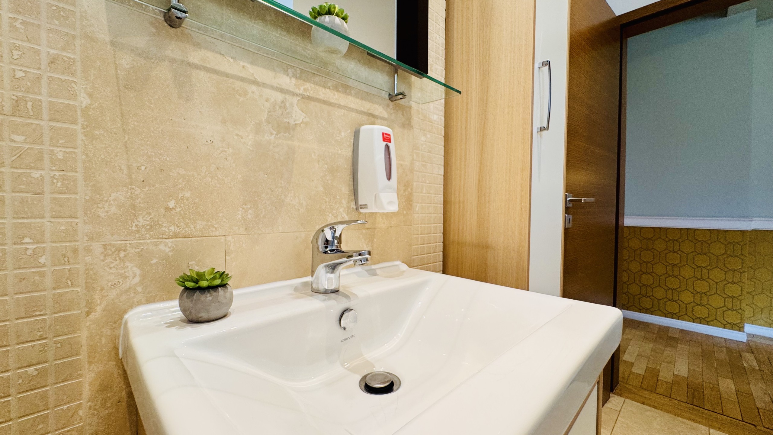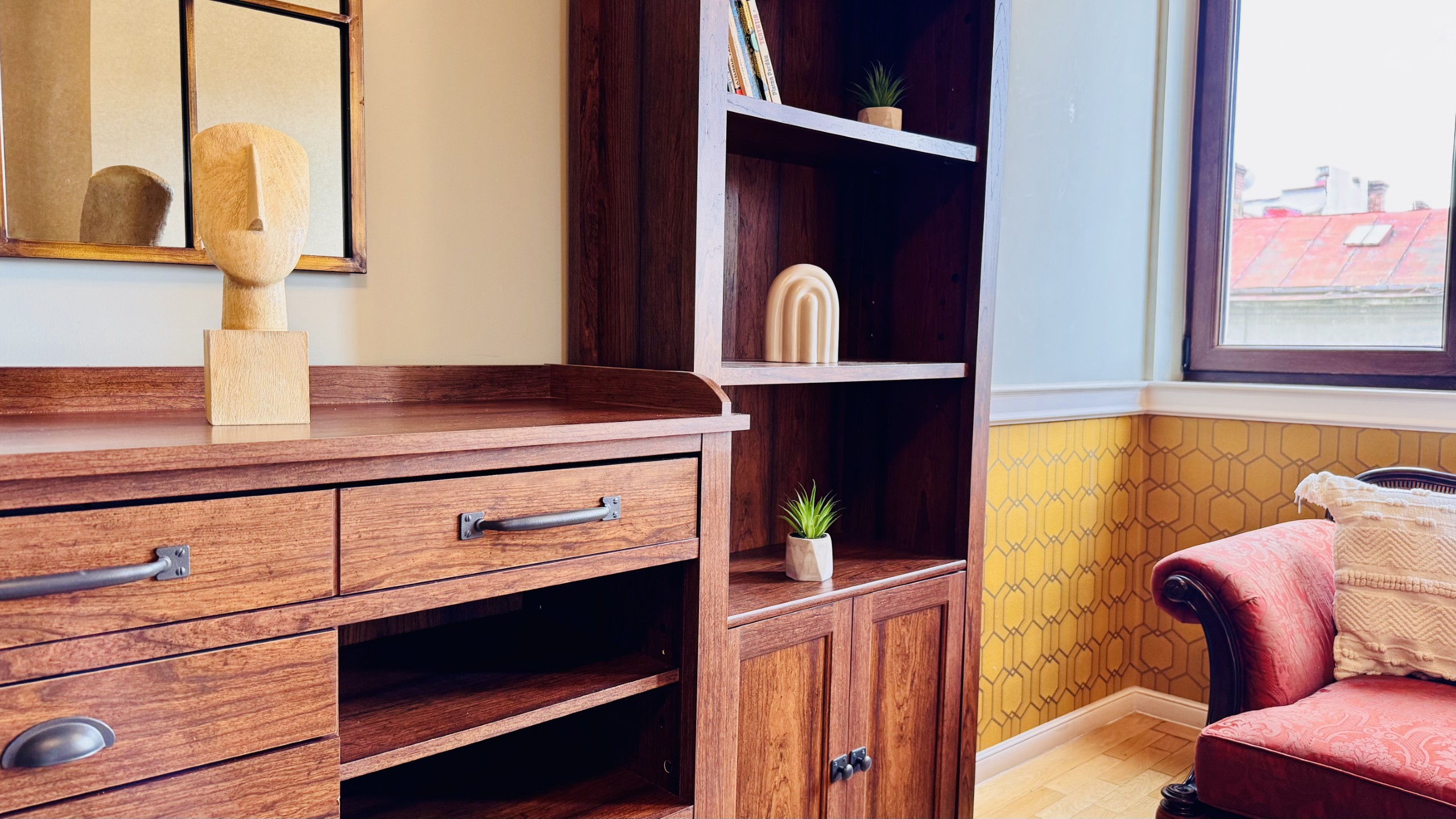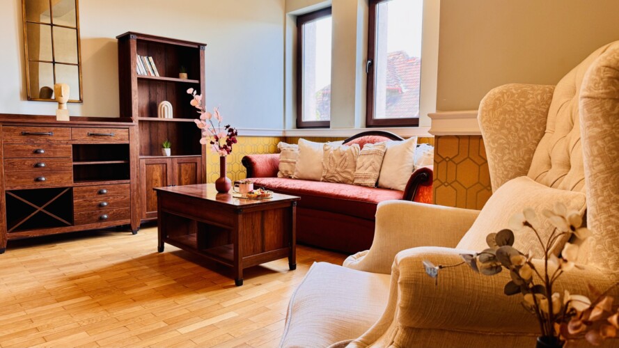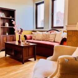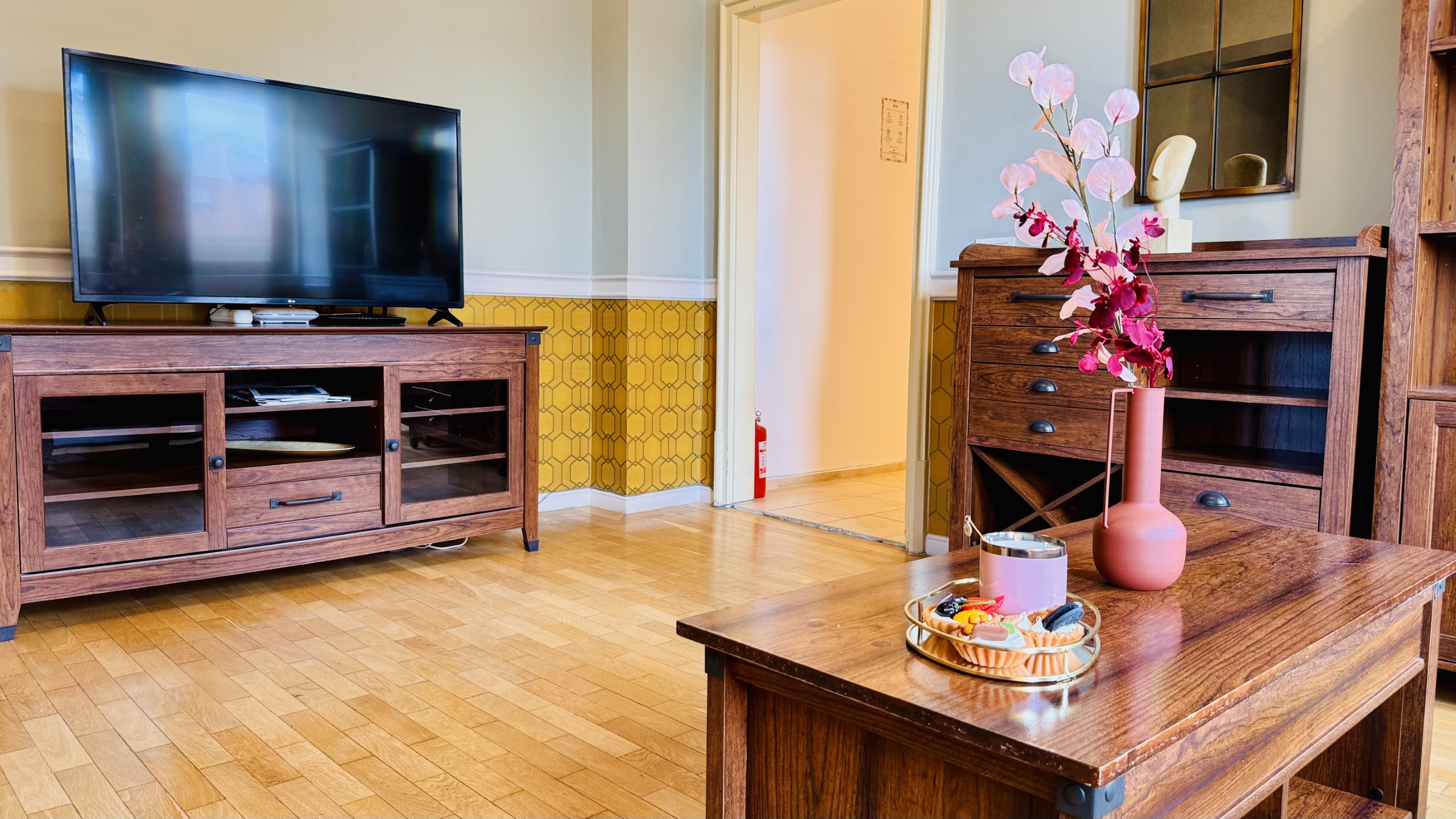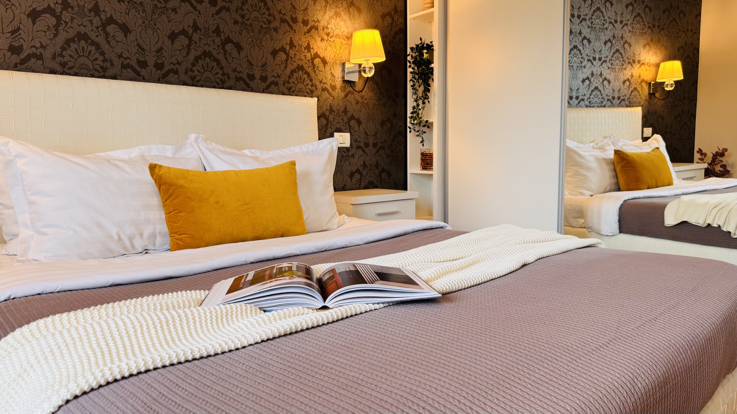 The apartment features 2 cozy bedrooms and thoughtfully curated décor that combines clean lines with warm touches. Enjoy a fully equipped kitchen, high-speed Wi-Fi, and everything you need to feel right at home.