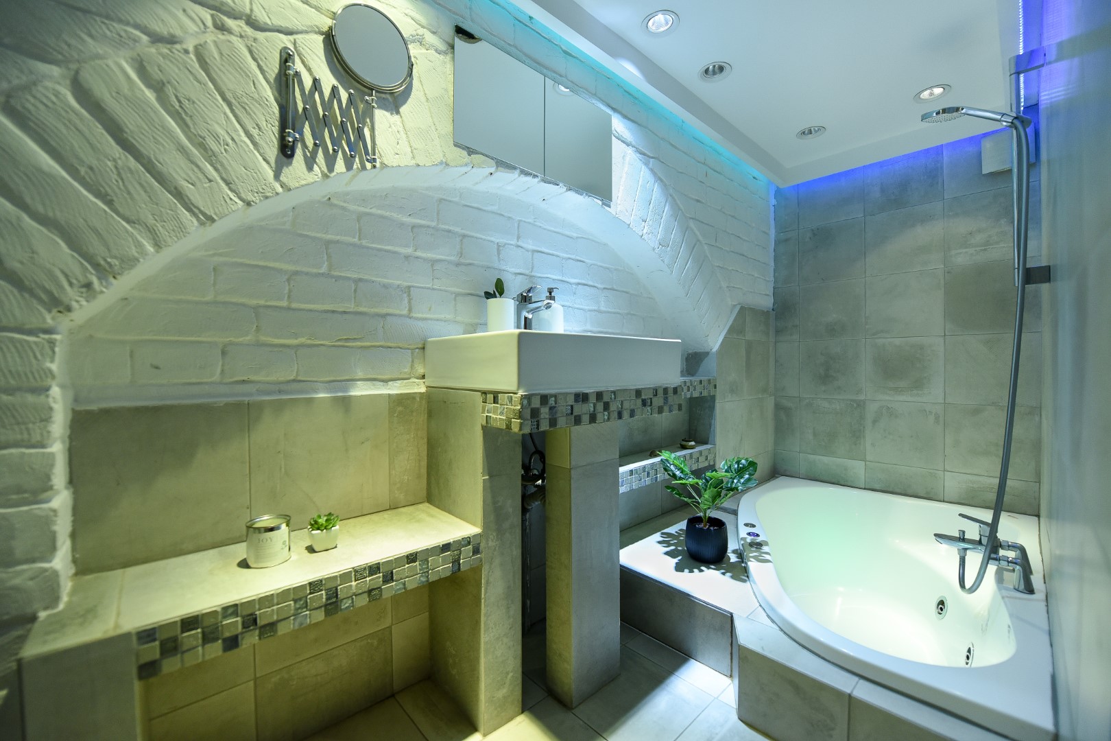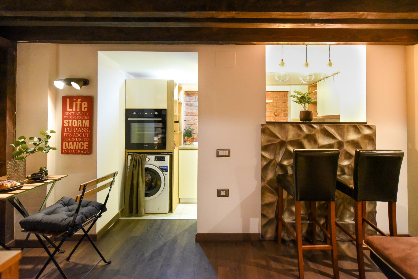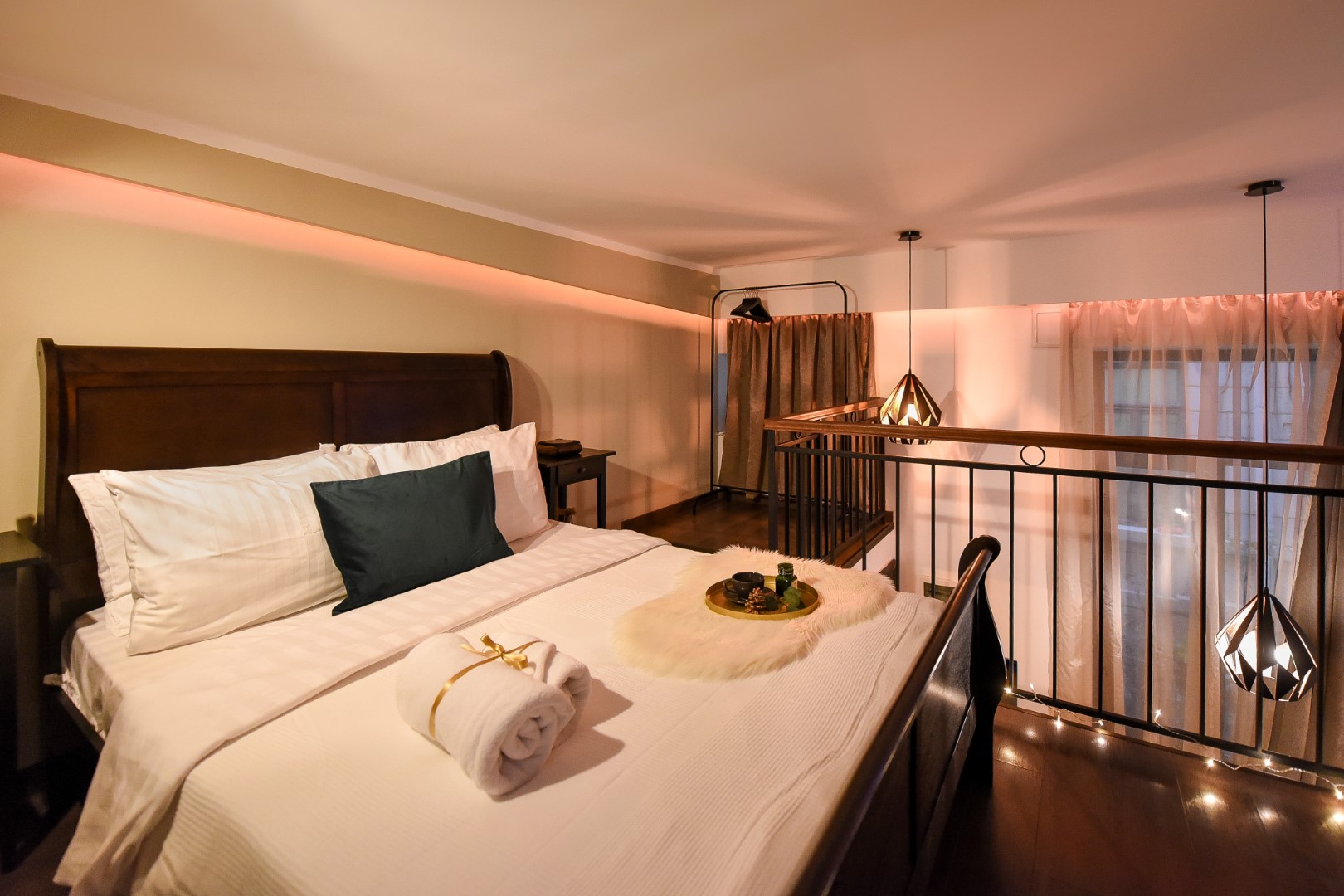 Fabulously located on one of the most popular streets, Queen Elisabeth, within easy walking distance of many of Bucharest’s key sights, with a beautiful living space full of lovely details and a cozy kitchen you’ll love. Upstairs you will have a comfy bedroom area with an amazing relaxing bathroom. This home is a delight. The apartment itself is pretty small, but it’s still a nice and cozy home.
