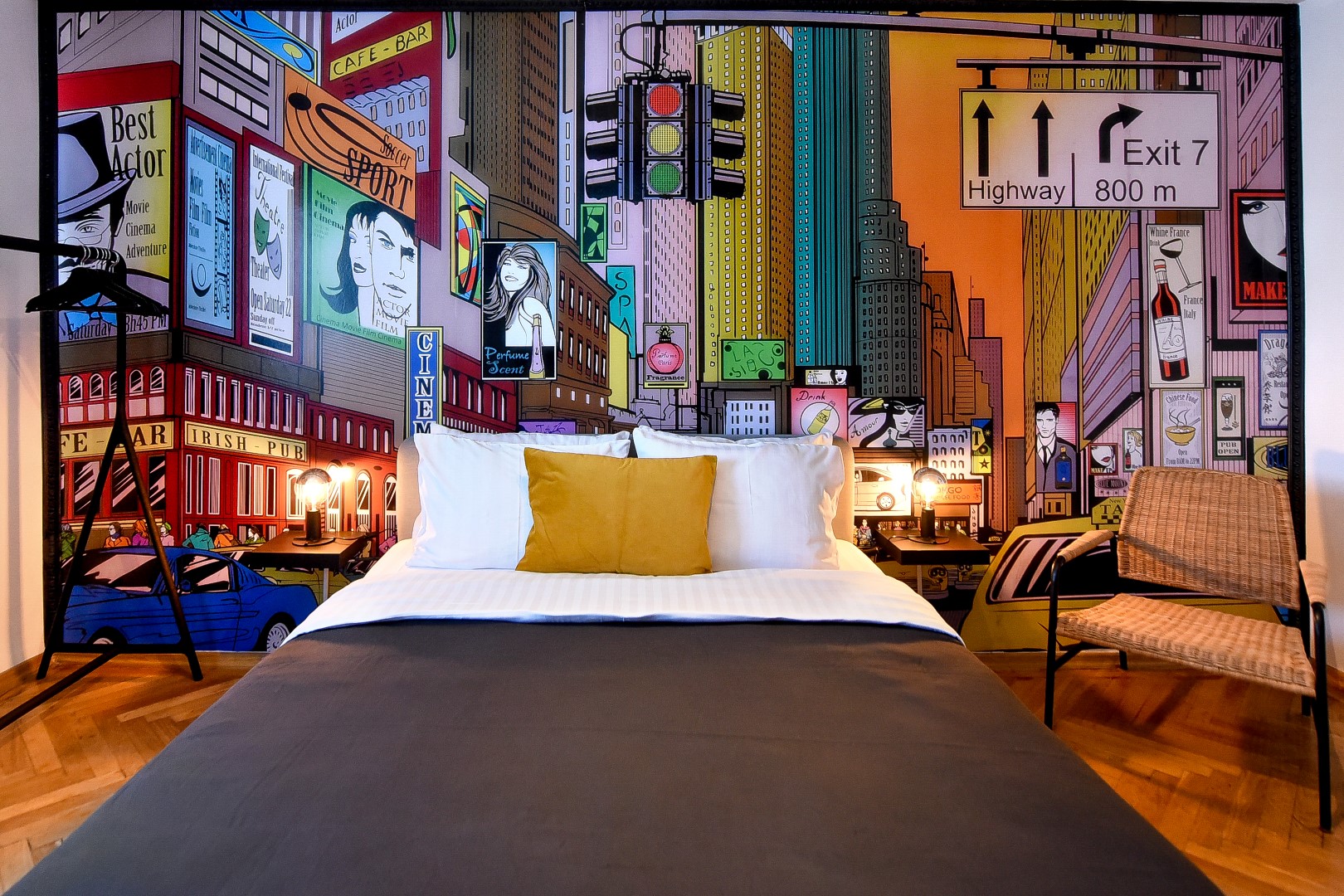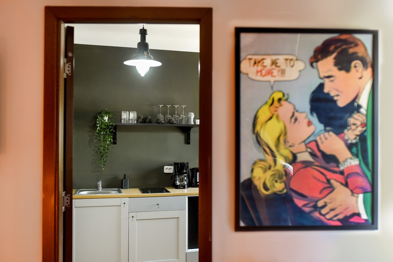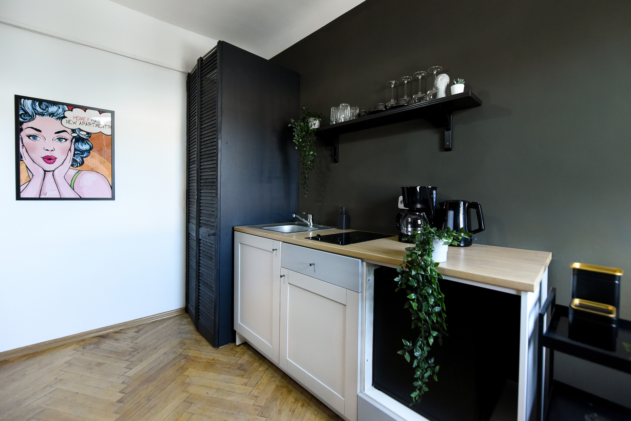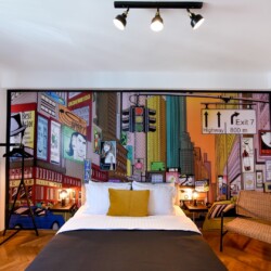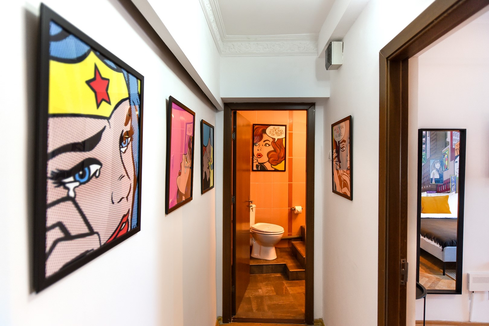 Steps away from the famous Old Town streets and located in the heart of Bucharest. This home is all about color contrasts with its white walls, eye-catching wall art, and vibrant furniture. This homey apartment is the ideal choice for those looking to explore all that the city has to offer.