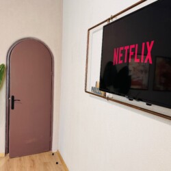 **There is no TV cable (the TV can be used for different apps – Netflix available).