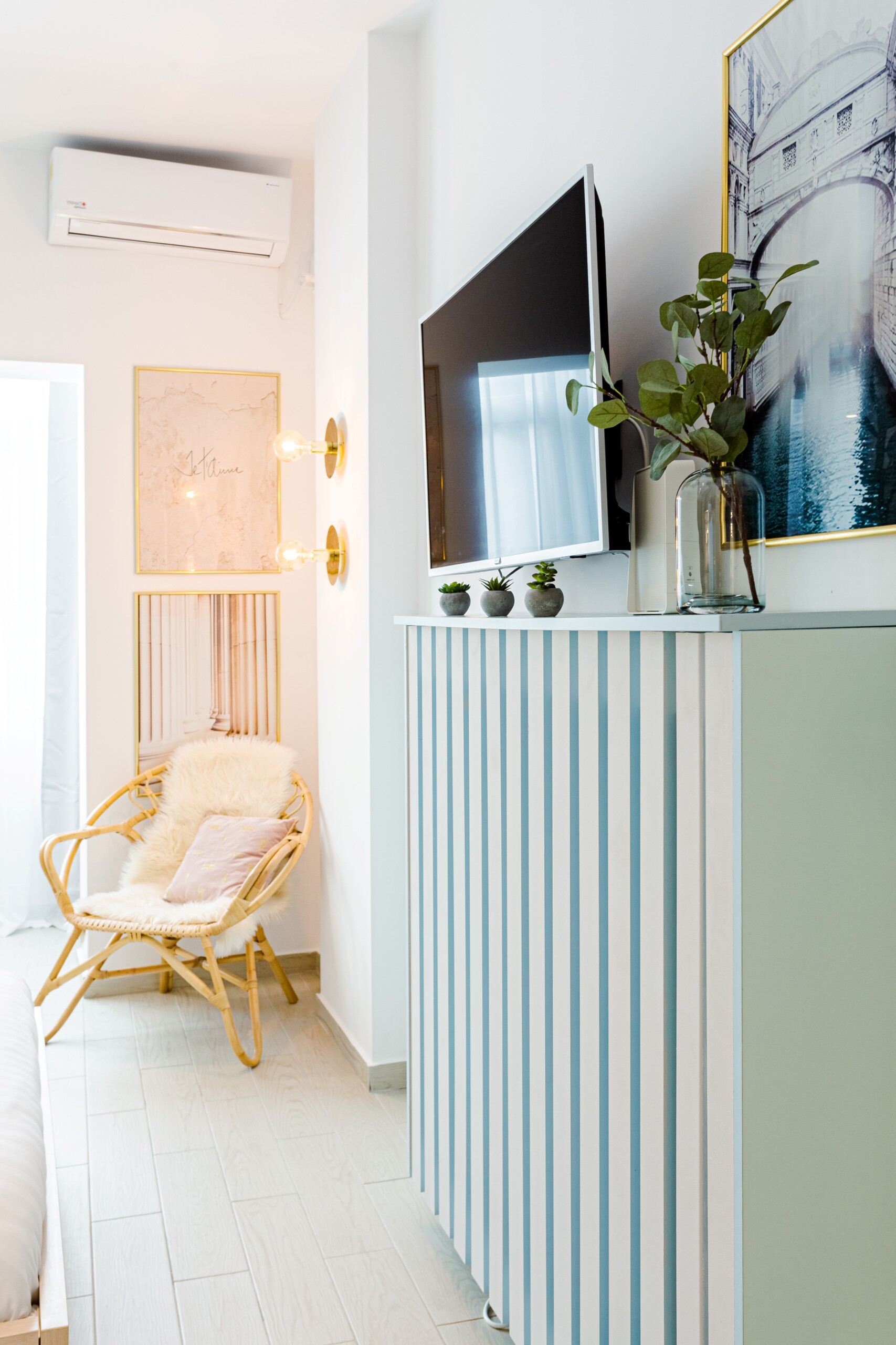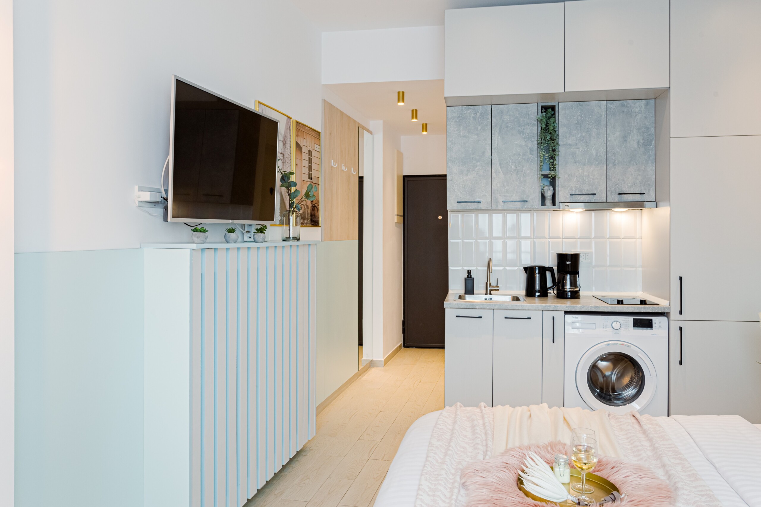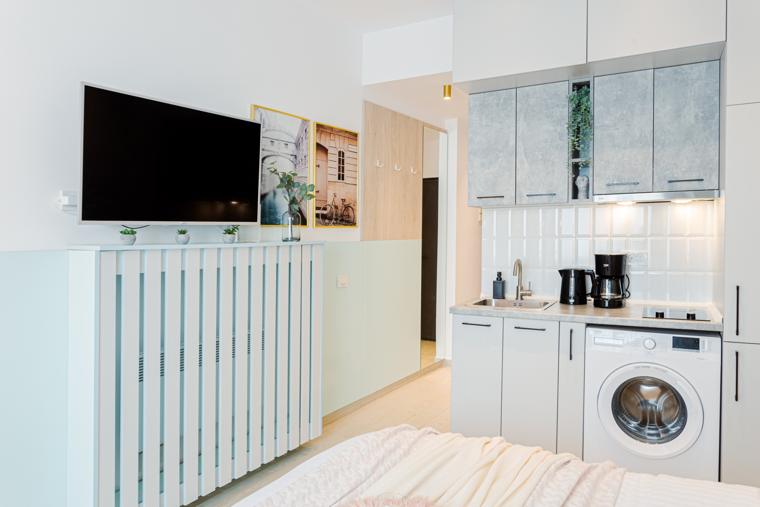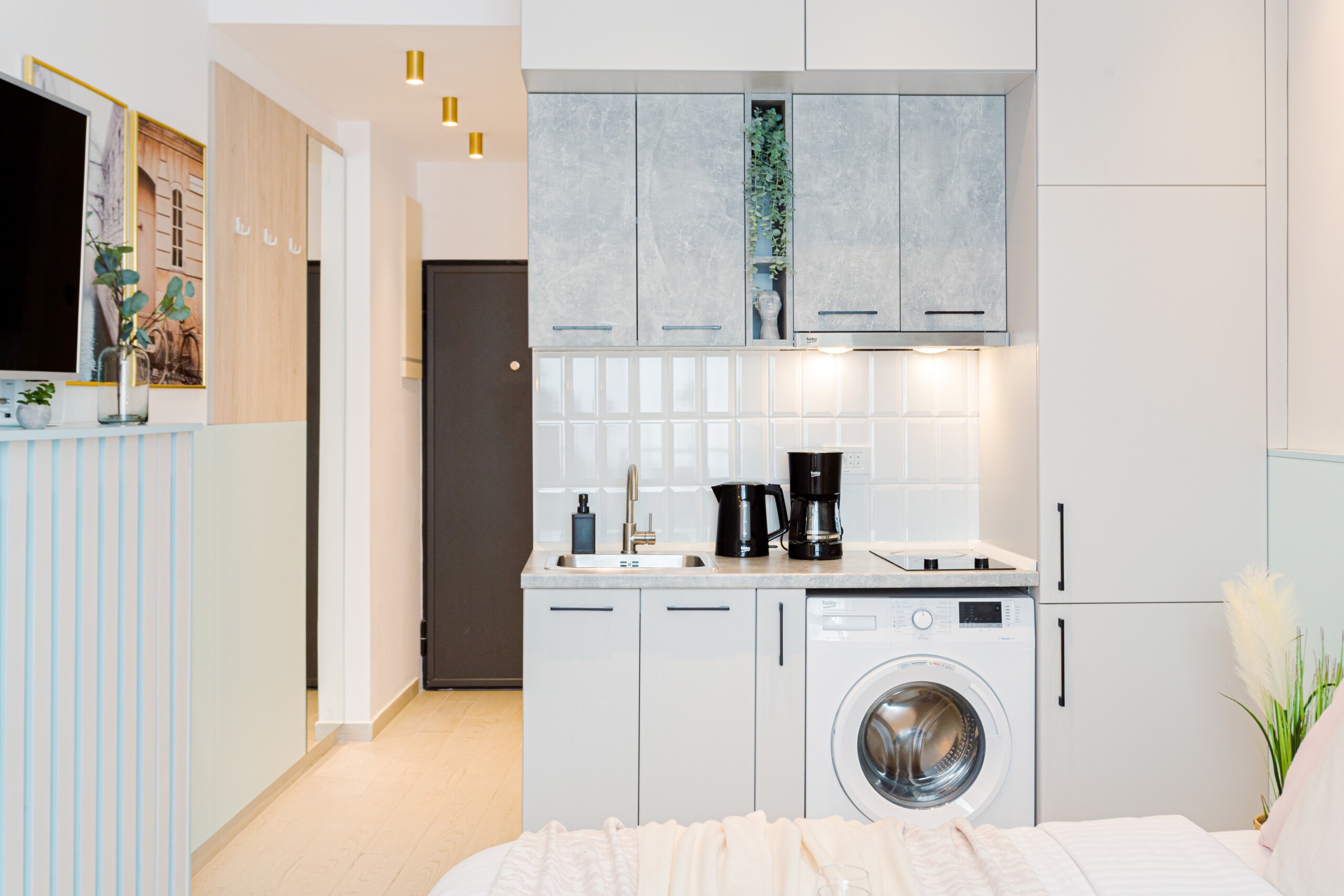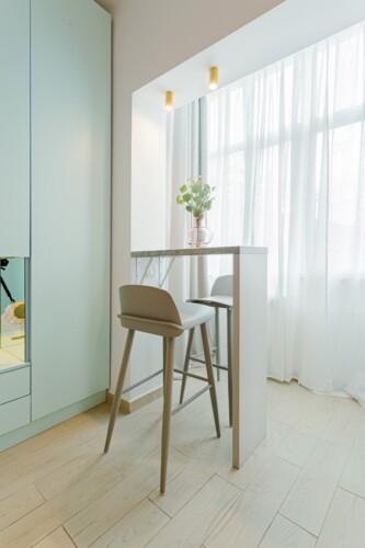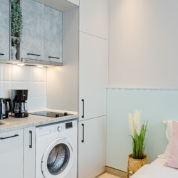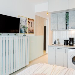 The studio is modern but comfortable. It is not the usual cold and plain hotel-like studios that you can sometimes find for short-term stays. With an intimate and cozy atmosphere, it offers the home-feeling to anyone.