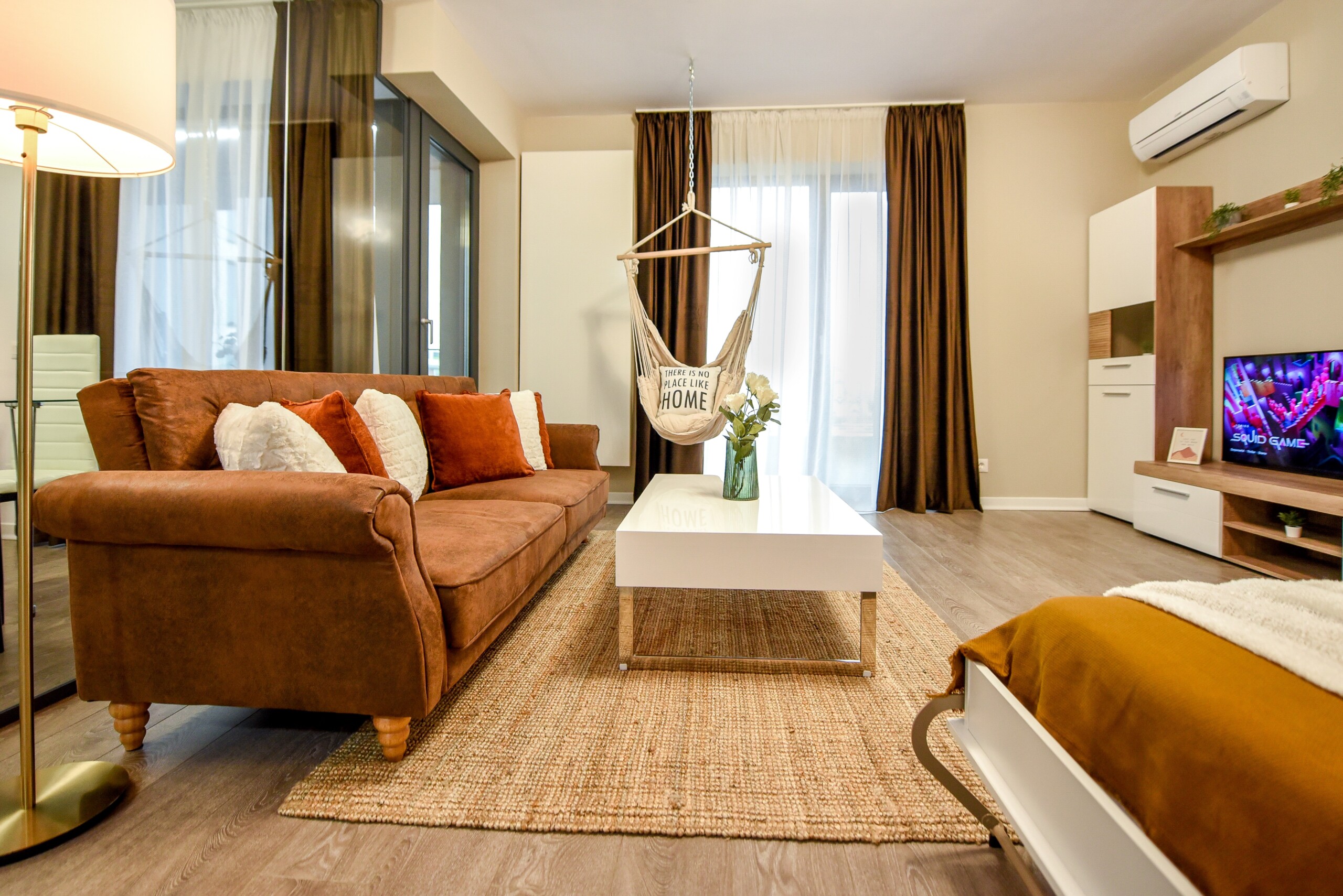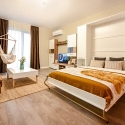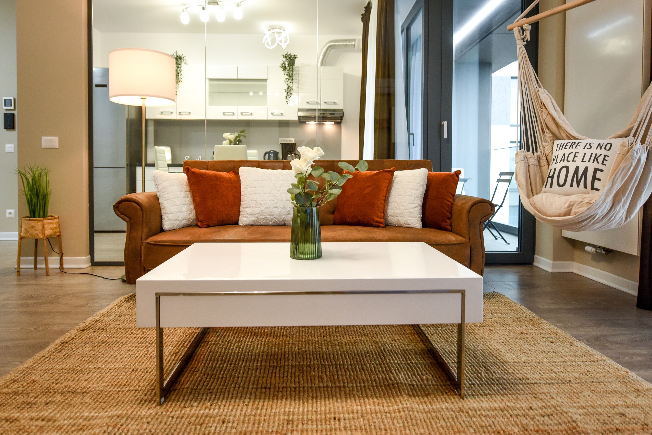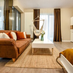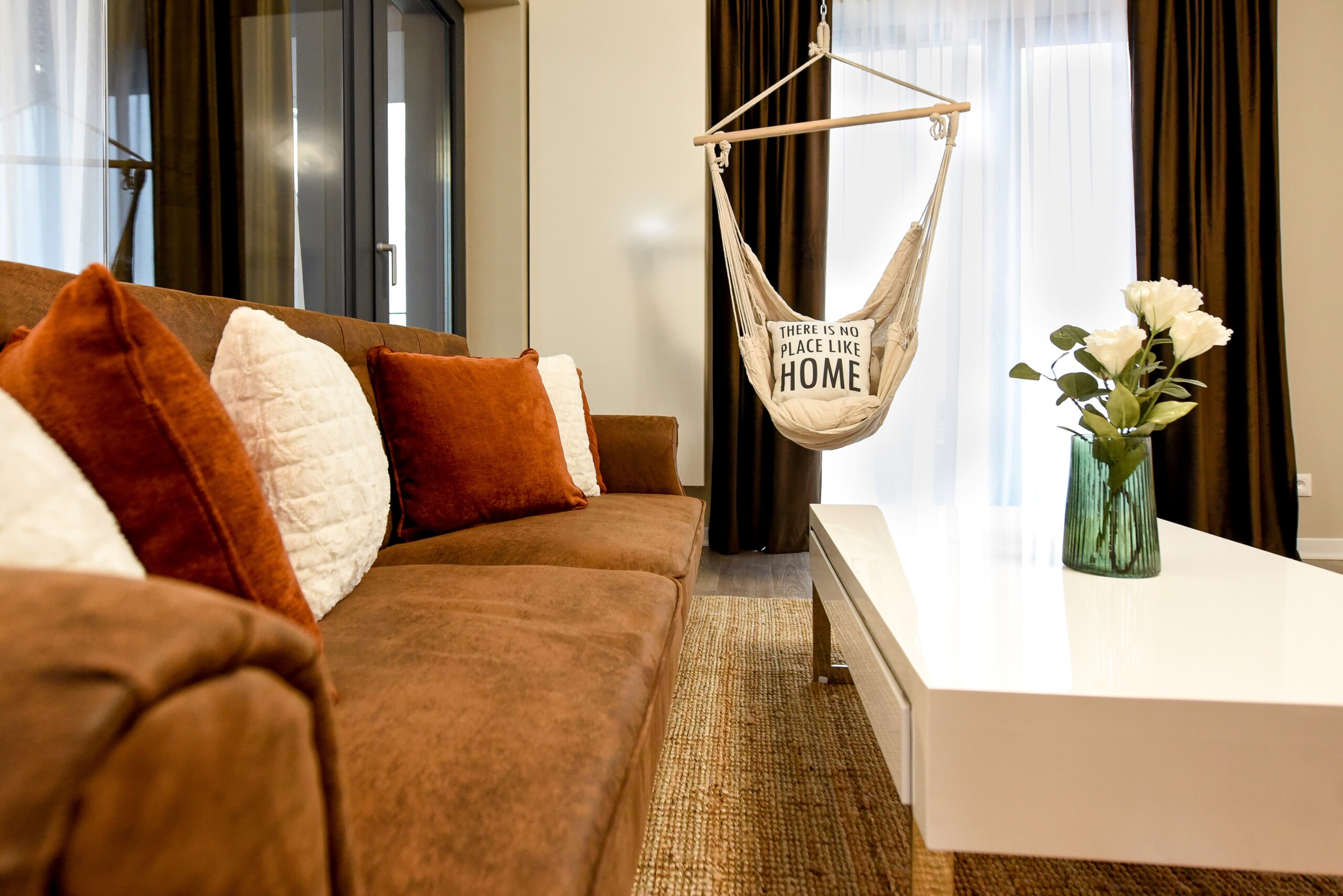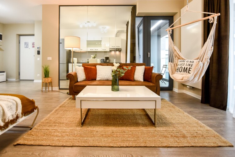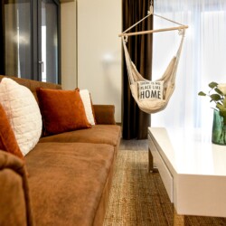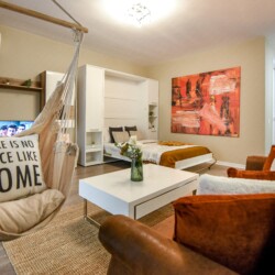 The coziness level is increased by a comfortable swing surprisingly integrated into the living area, from where you can enjoy the sunlight coming from the balcony.