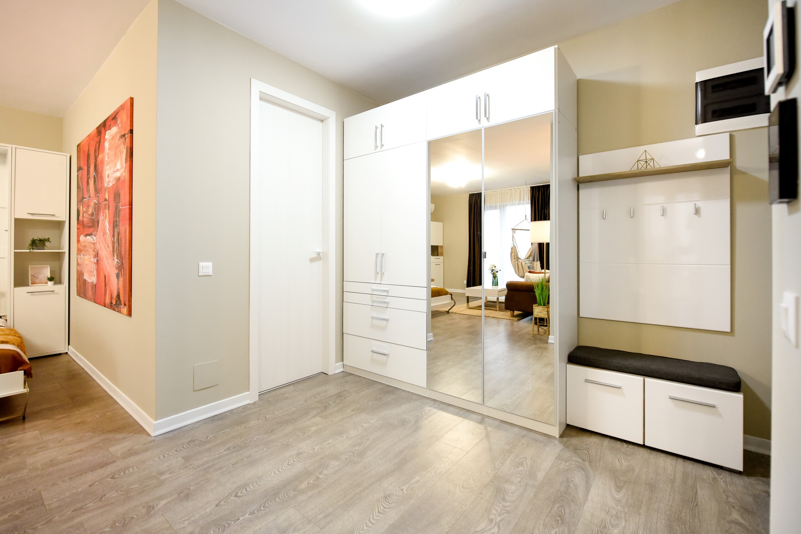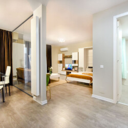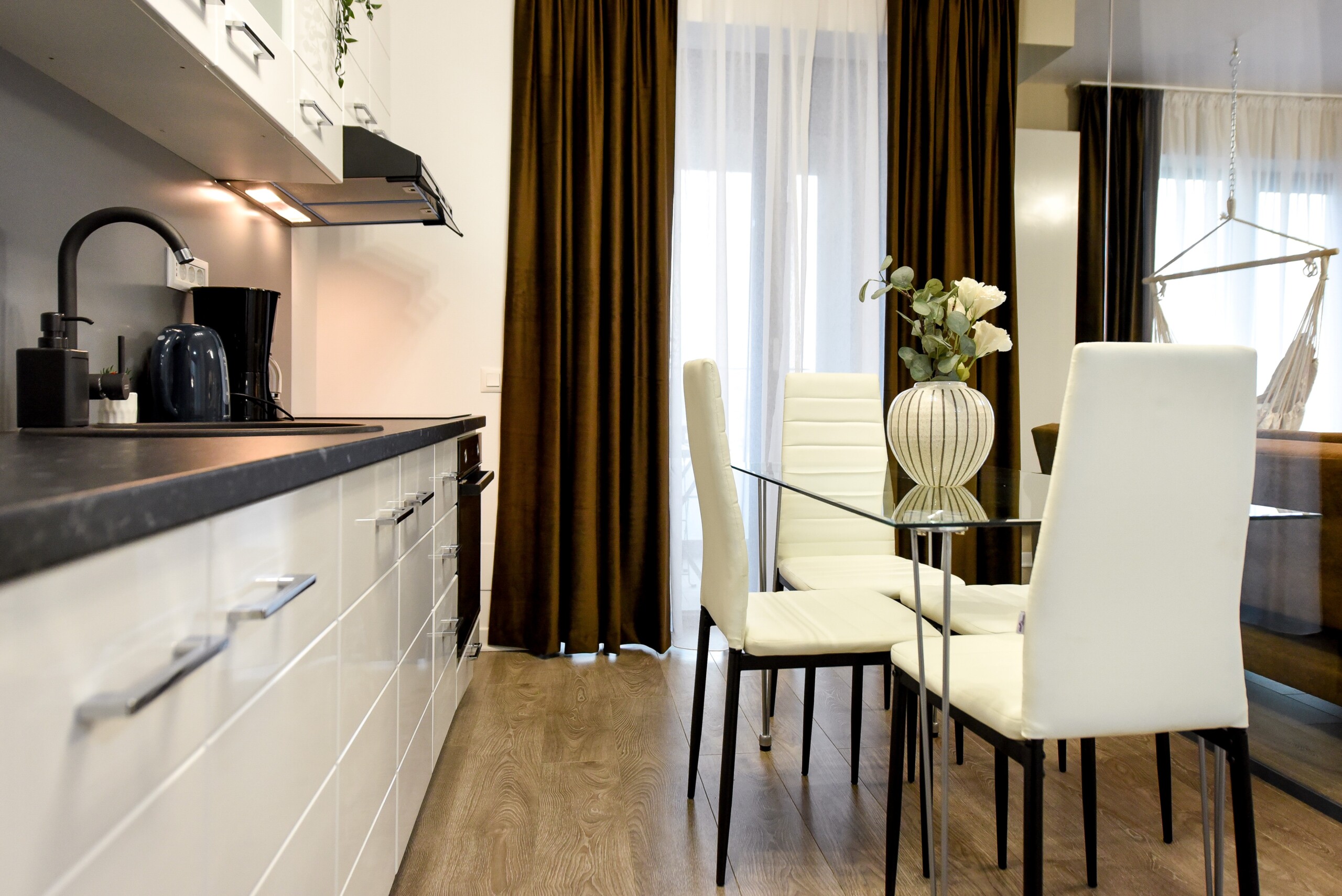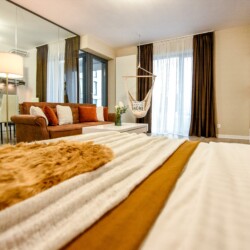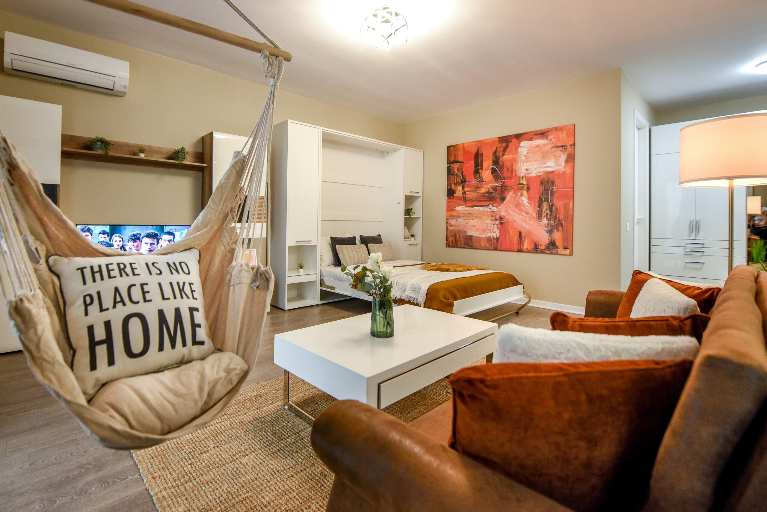 The coziness level is increased by a comfortable swing surprisingly integrated into the living area, from where you can enjoy the sunlight coming from the balcony.