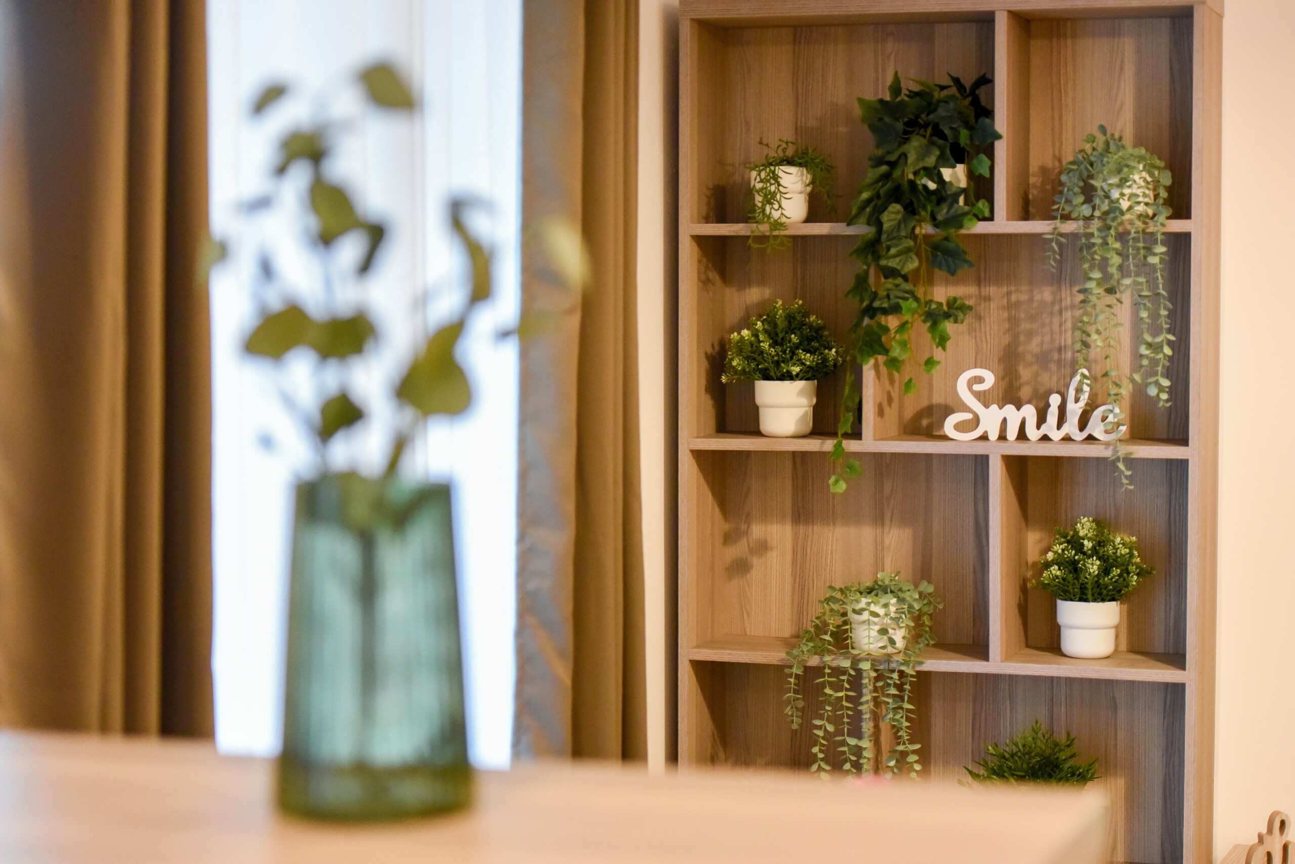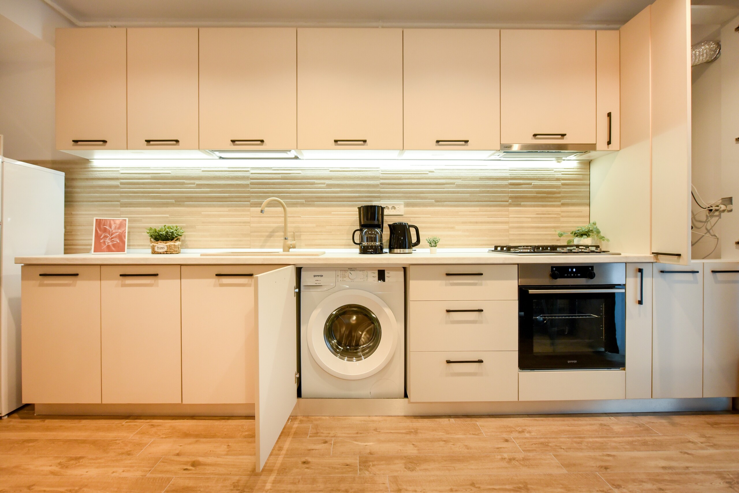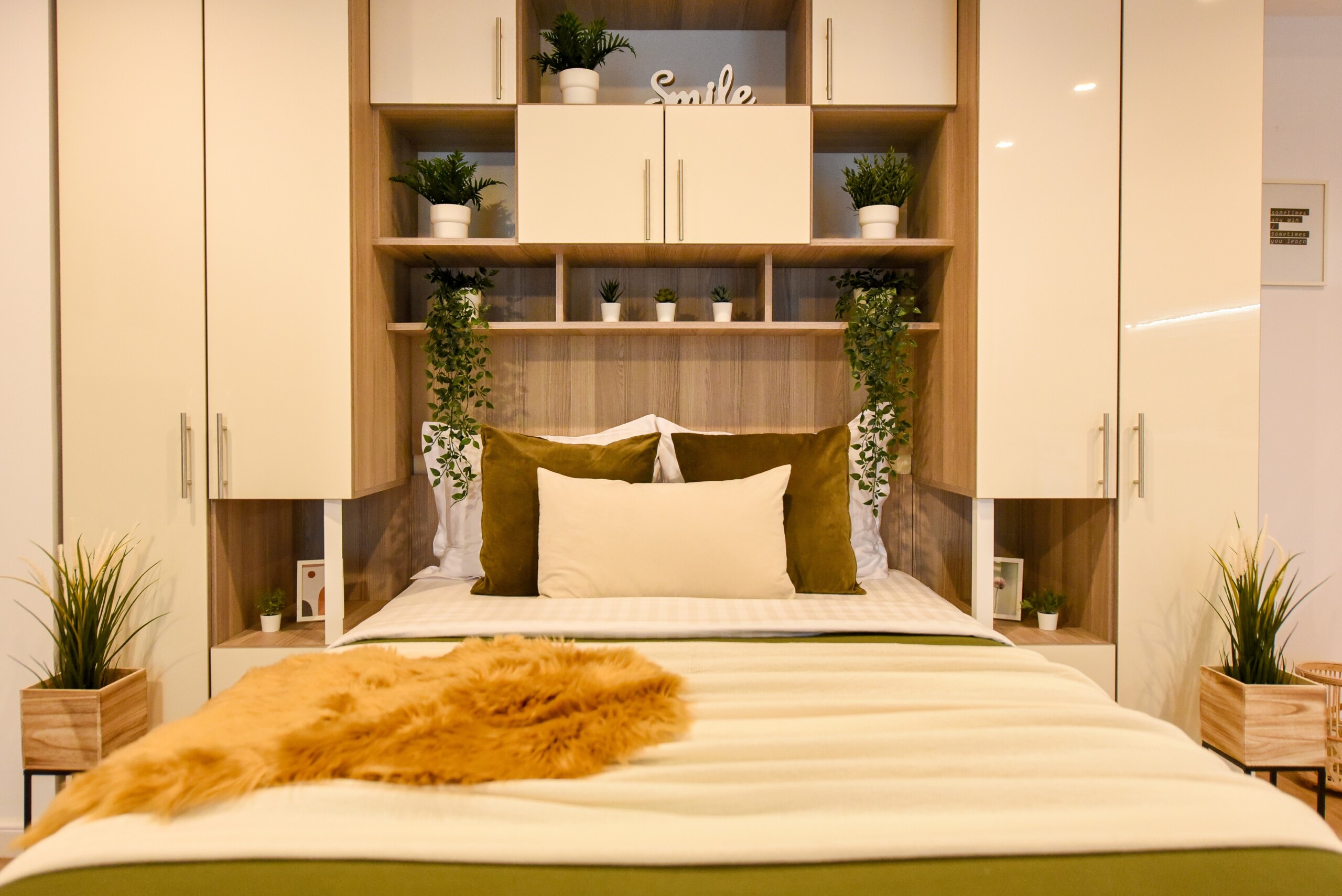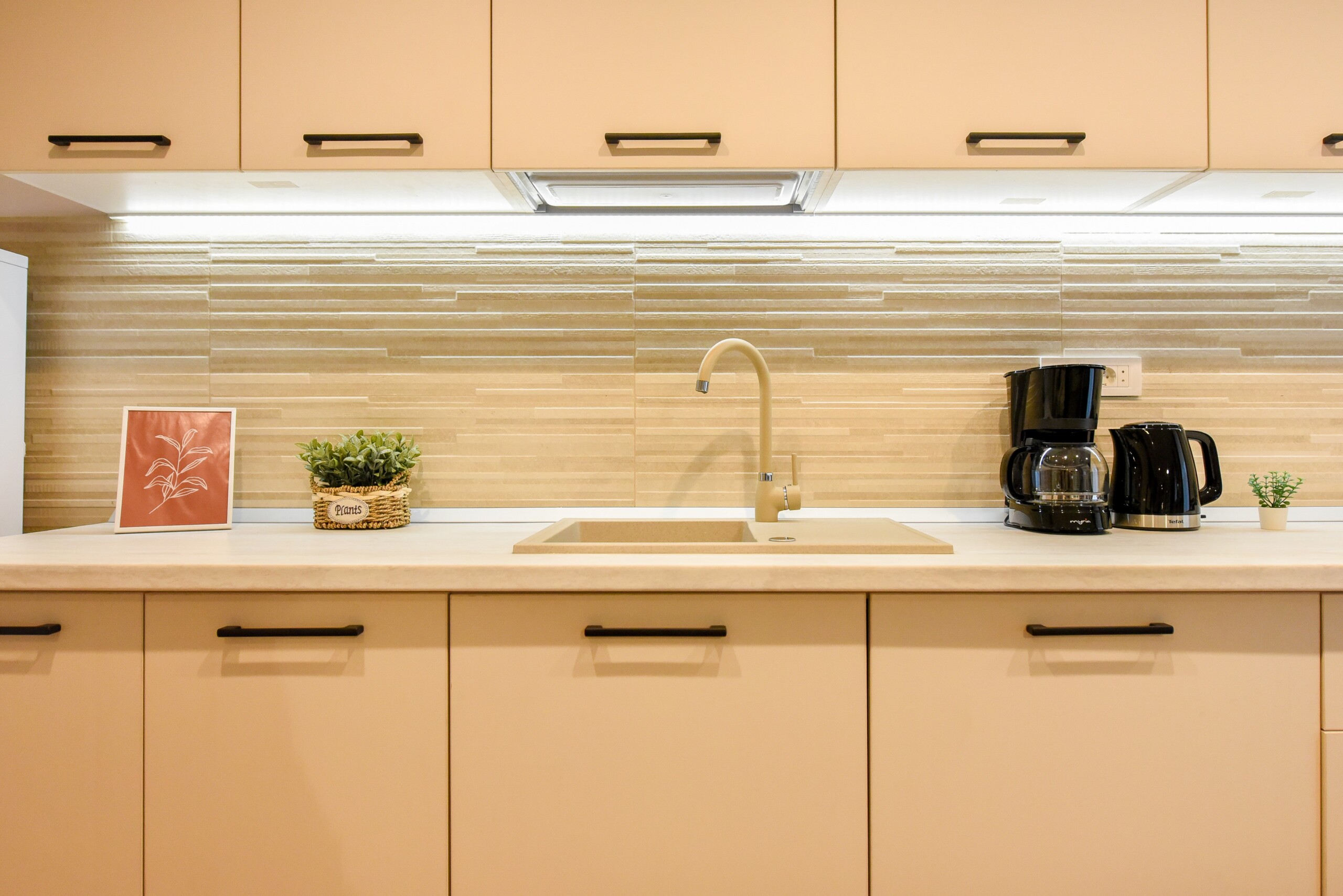 The beautiful design, based on earth and bright tones, creates a perfect merge between elements of natural inspiration and modern decoration. The wide windows allow the sunlight to compliment the space and extend it into a beautiful balcony.