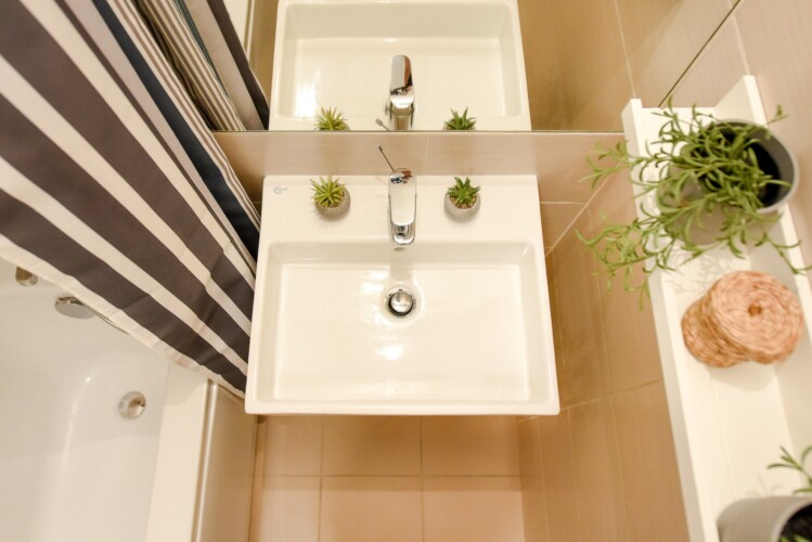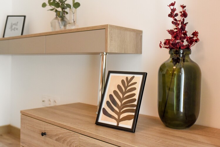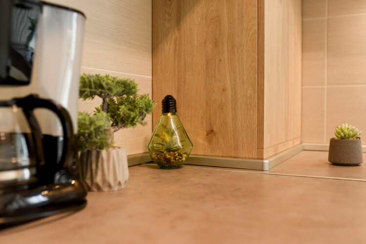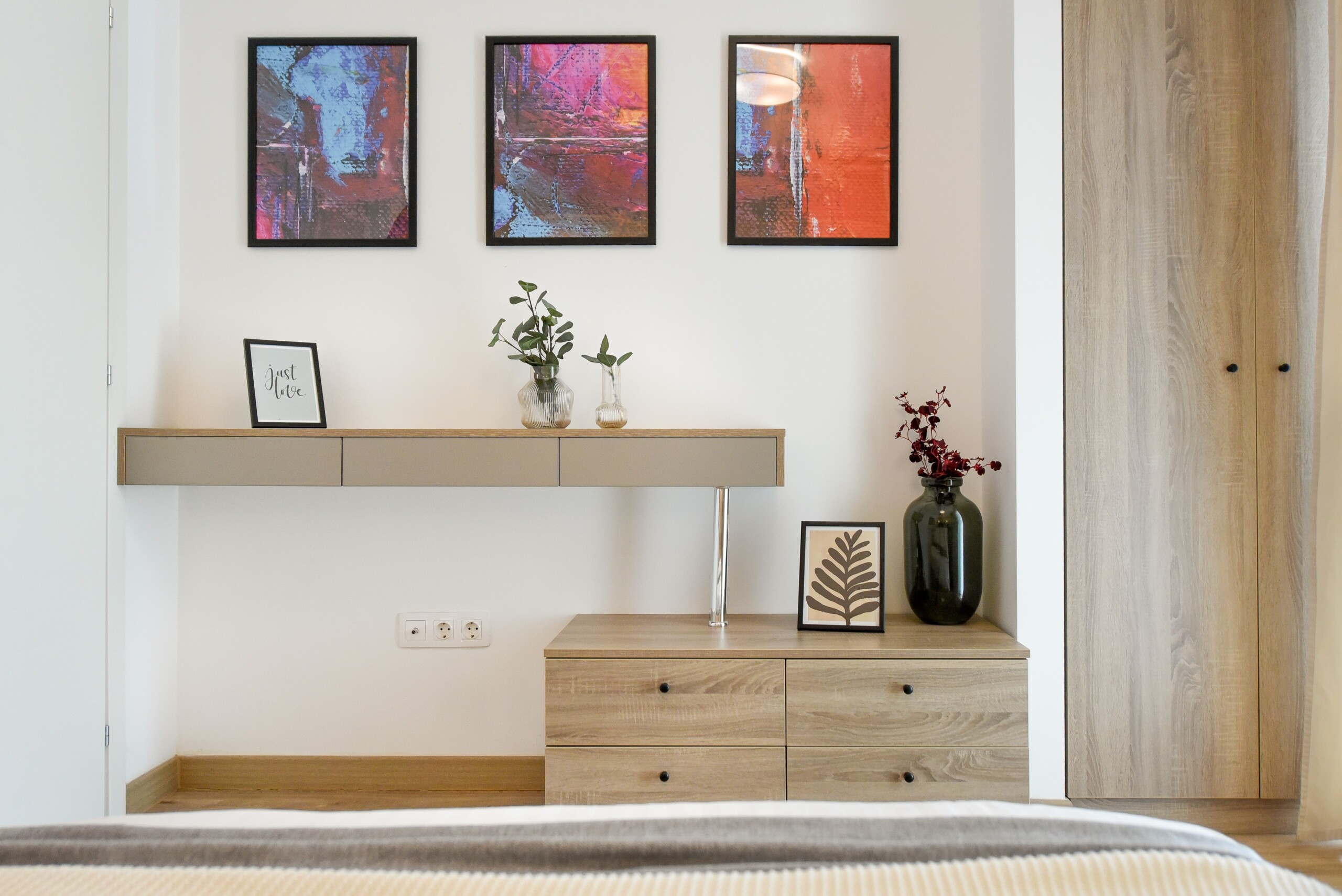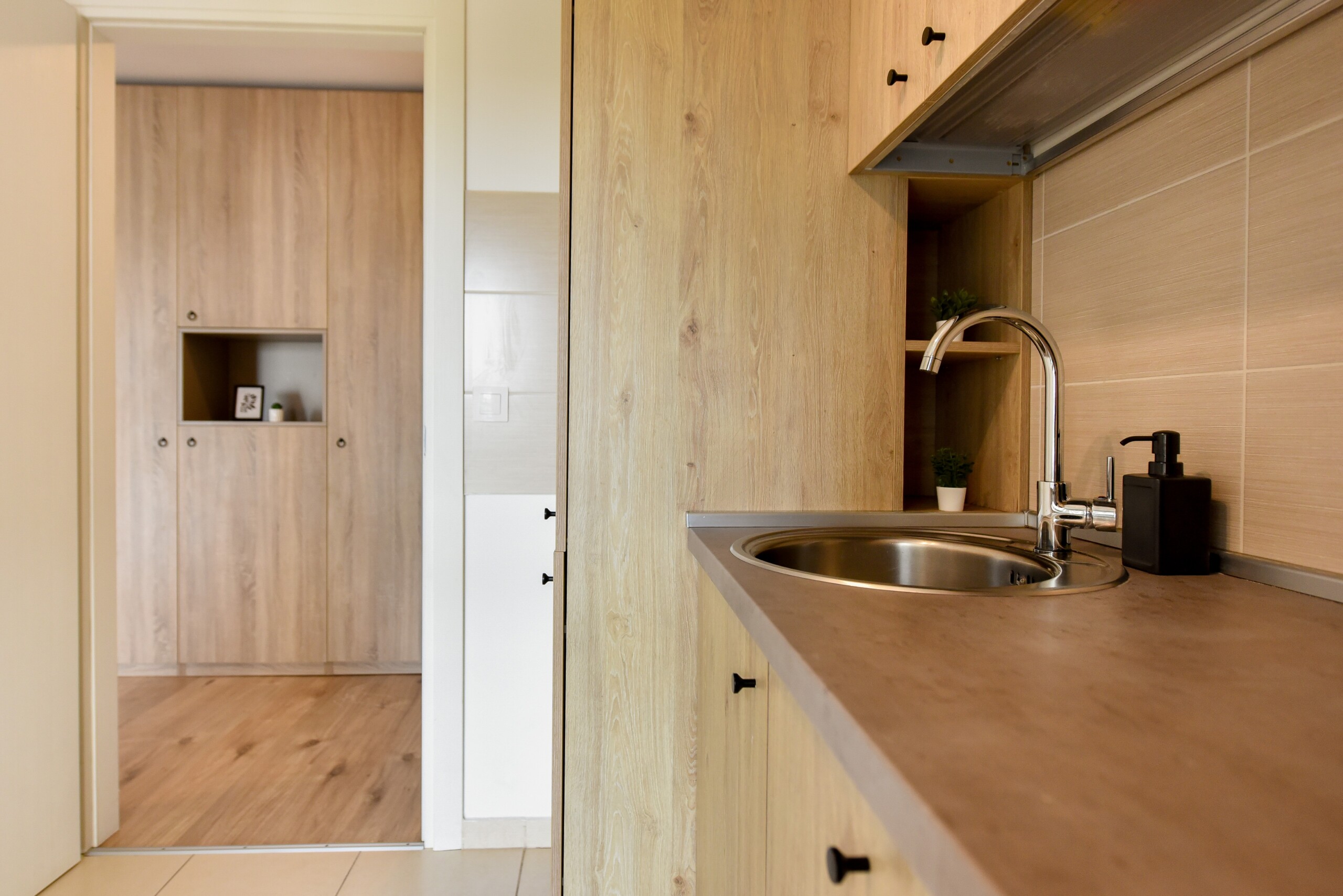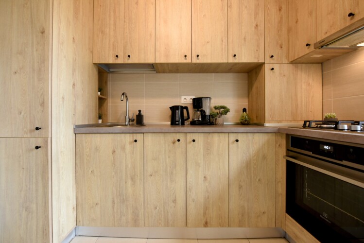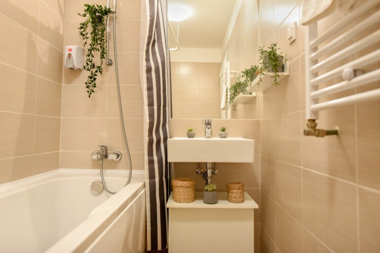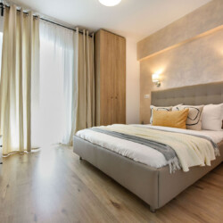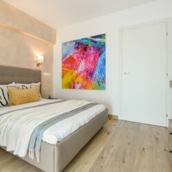 With a modern design, based on simple lines and neutral colors, this home complies all the needed requests for a comfortable stay. The color spots ingeniously created by the decoration elements and by the sofa break the simplicity and offer personality to this space. With a minimalist style and colorful touches, you will enjoy the best of both worlds.