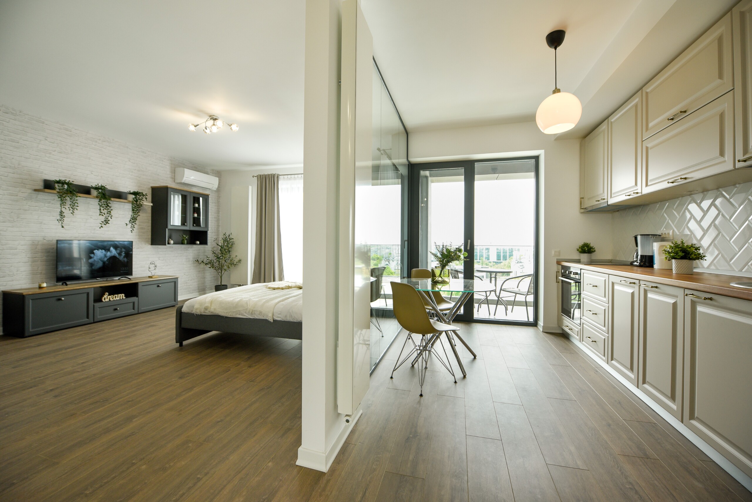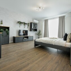 The unique personality of this space is offered by the combination of elegance and refined finishes with a space of exquisite design with exposed bricks that reach a perfect harmony with furniture and colors.