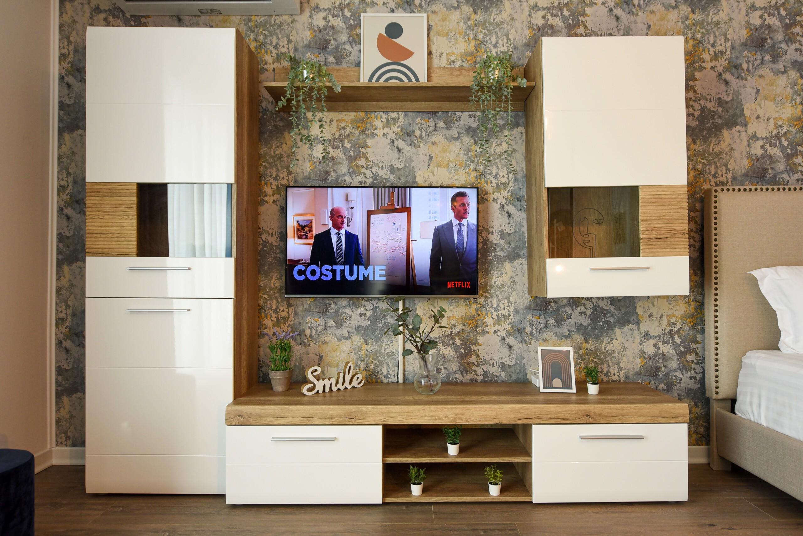 **There is no TV cable (the TV can be used for different apps – Netflix available).