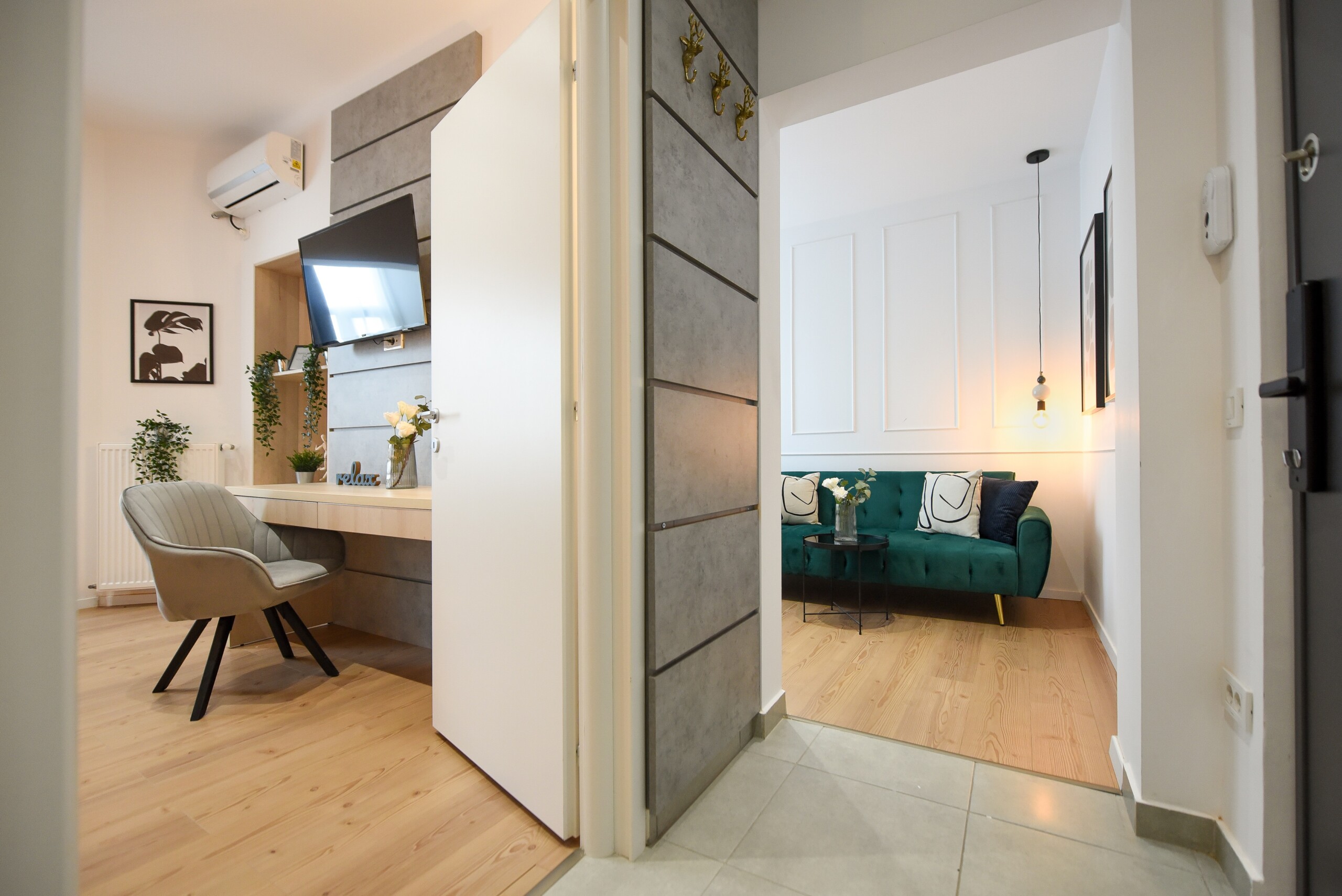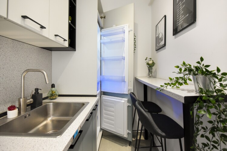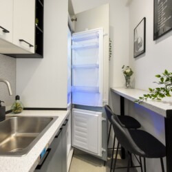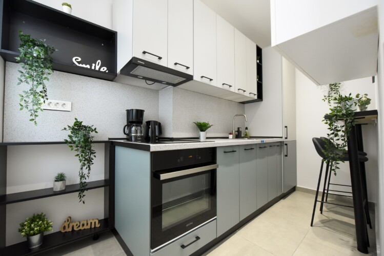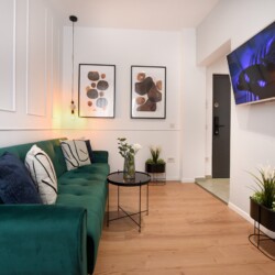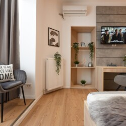 The location couldn’t be more representative of the central old part of the city, contrasting surprisingly with the interior of this home. The apartment is modern but comfortable. It is not the regular cold and insipid hotel-like flat that you might occasionally find for short-term stays, but a welcoming and home-like place, completed with high tech amenities.