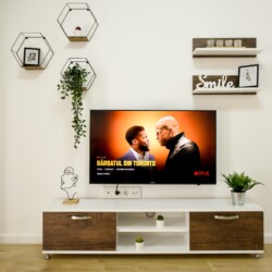 **There is no TV cable (the TV can be used for different apps – Netflix available).