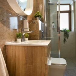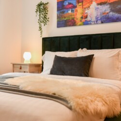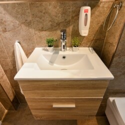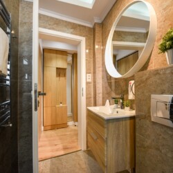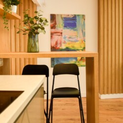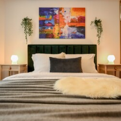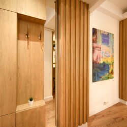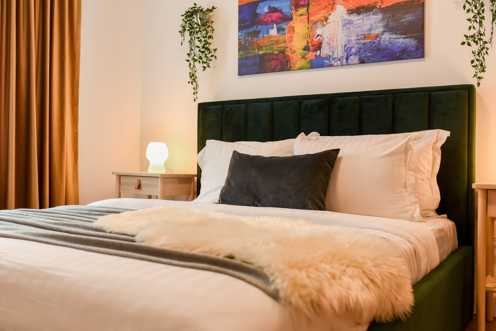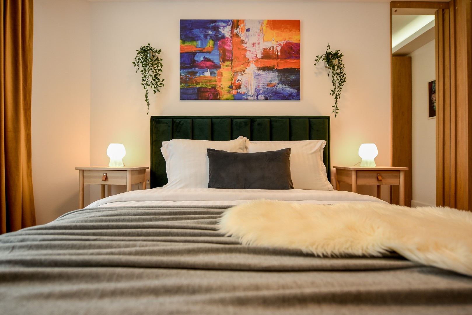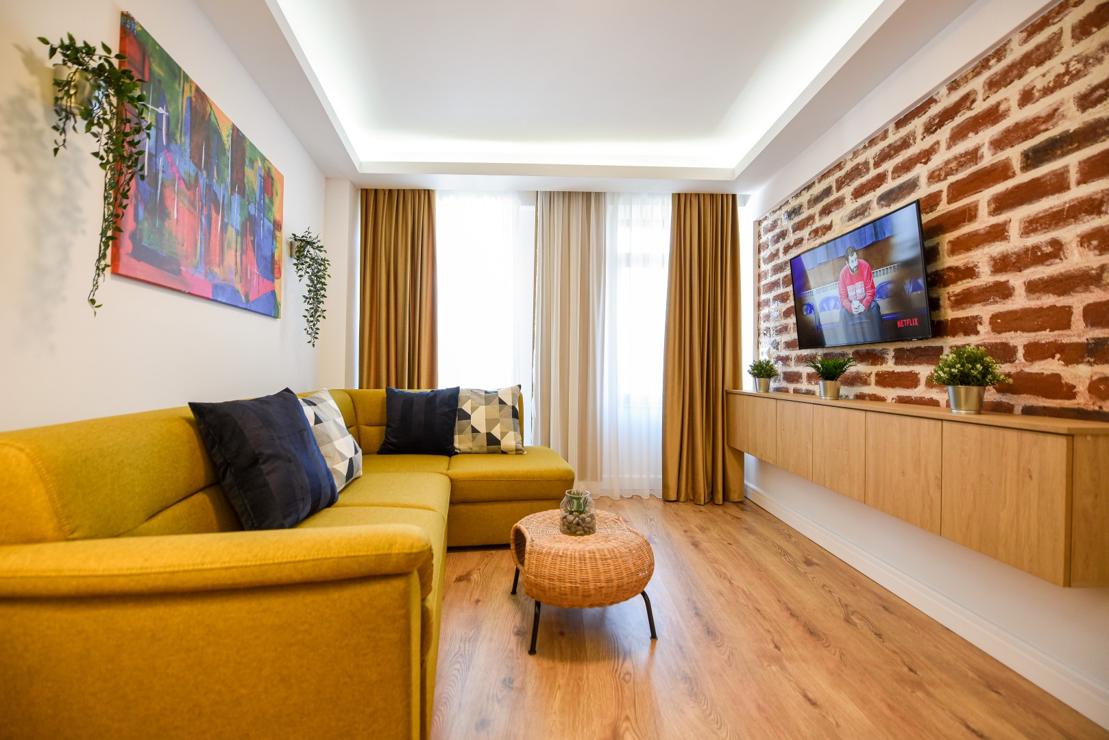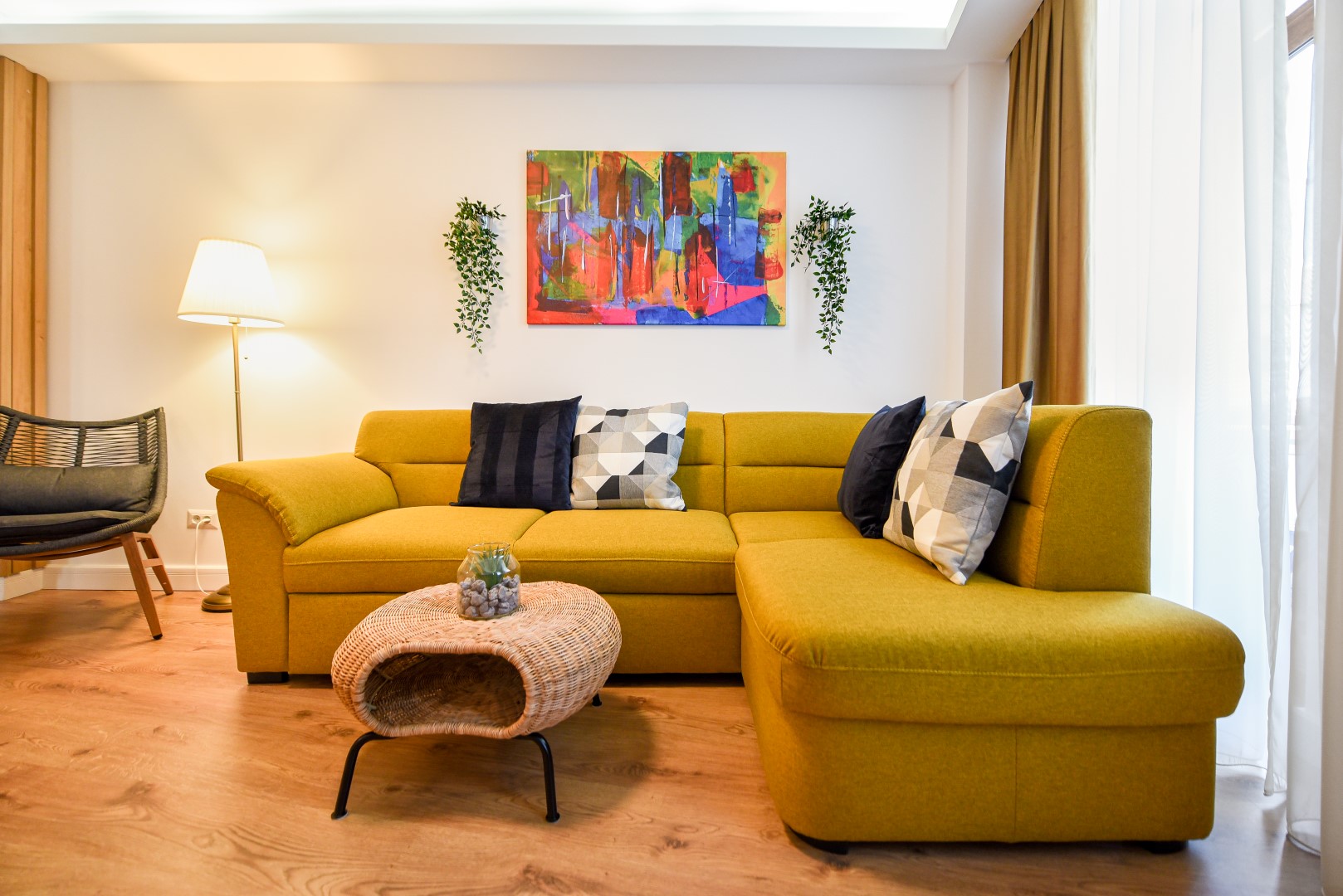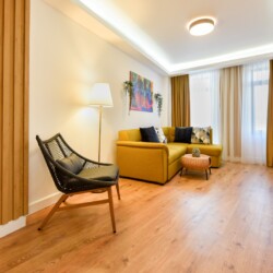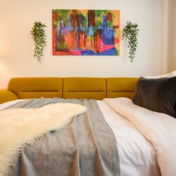 Even if the design is minimalist, following a contemporary style, the warm tones create a cozy feeling. The home is fully equipped and comfortable. The living room is an open space shared with a modern kitchen, ready for guests to use. The bedroom has a wardrobe and a double sized bed for a perfect sleep.