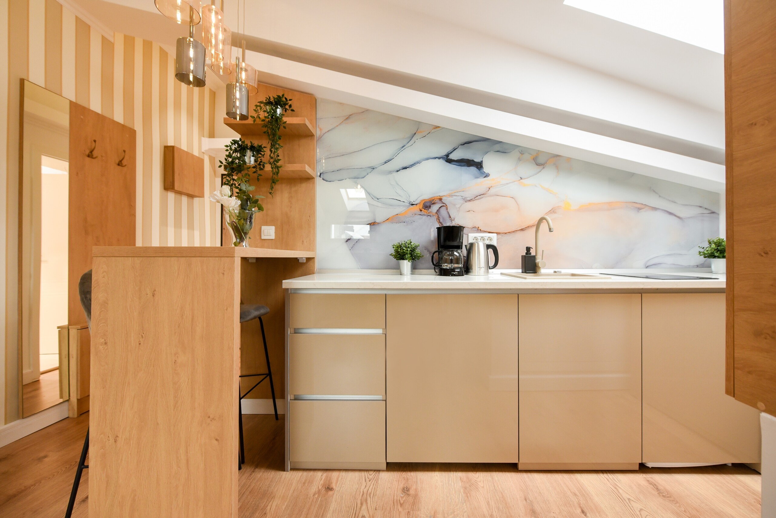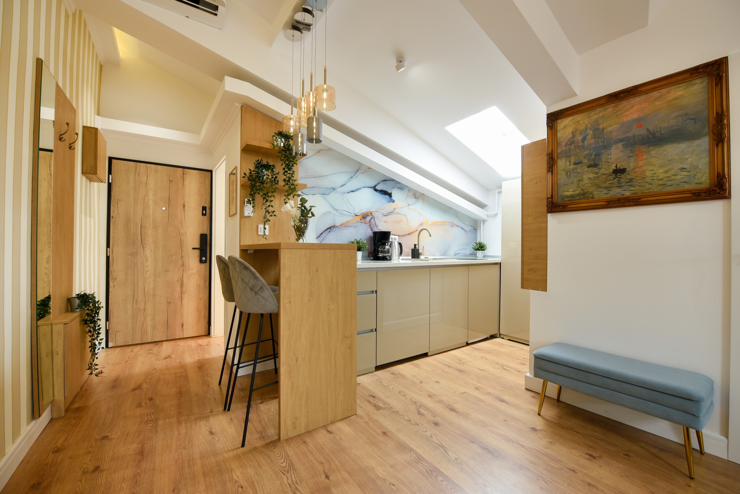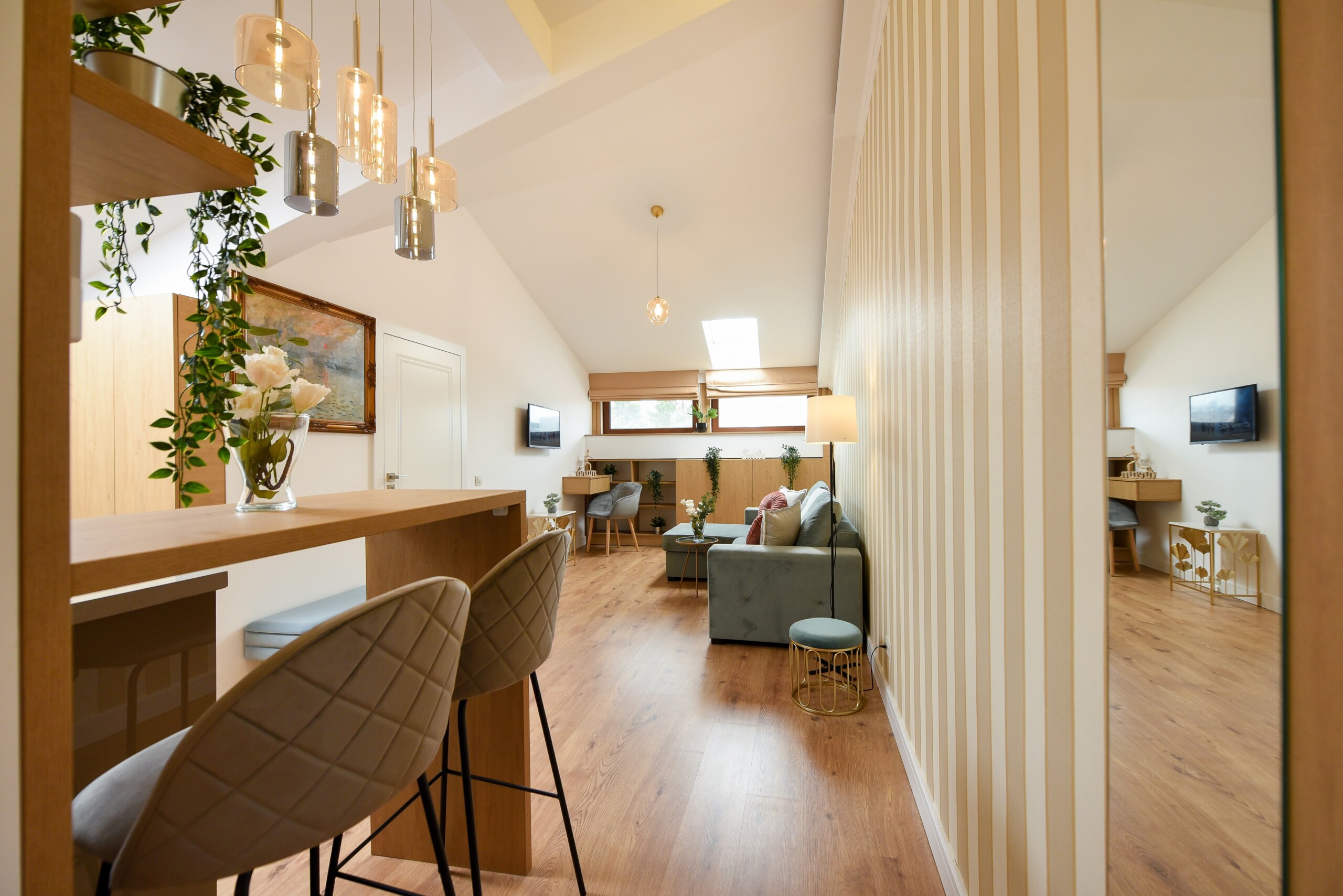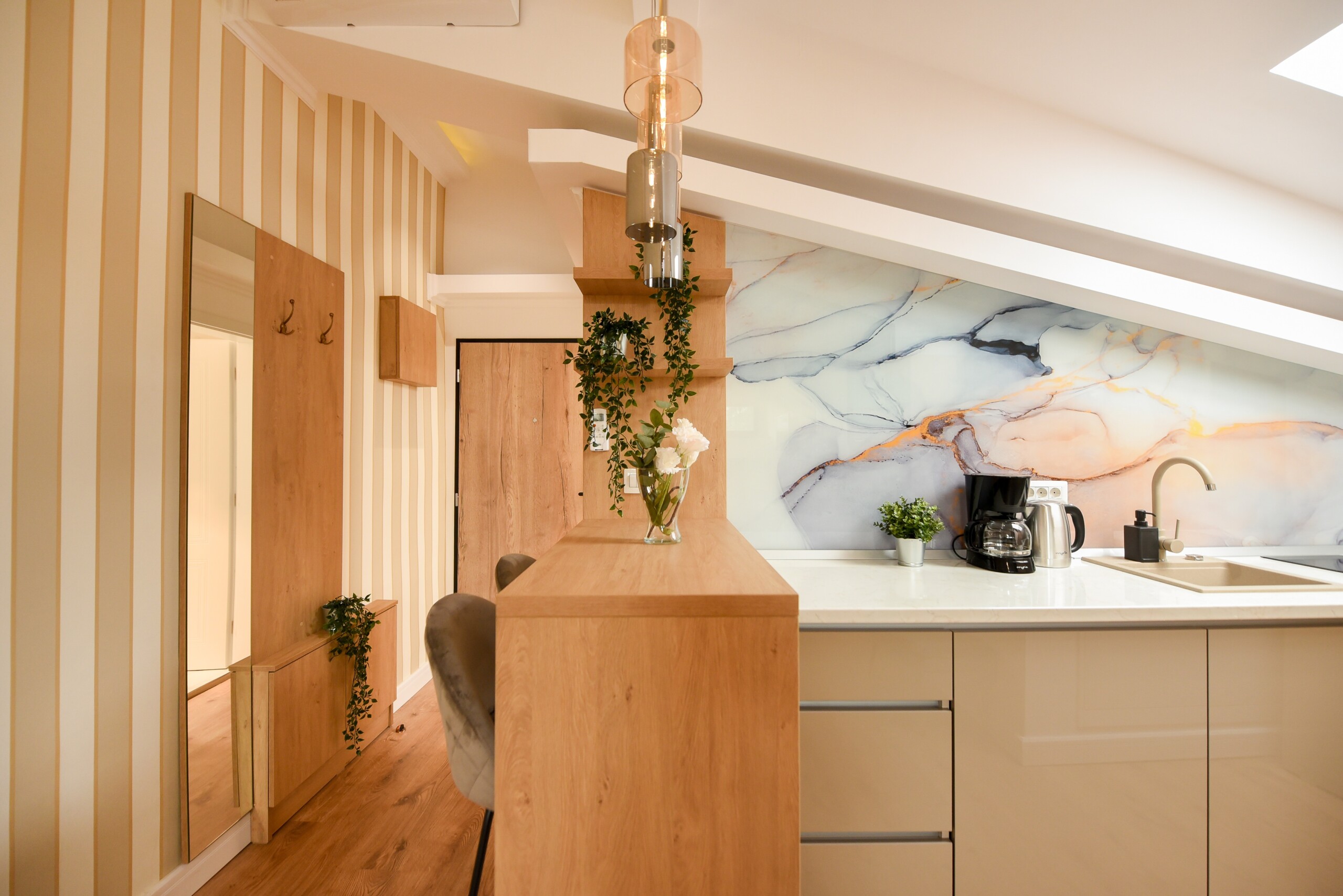 This home is stylish, modern, and in immaculate condition. It’s ideal for anyone looking for the benefits of hotel-style services, with the increased comfort of your own personal space, modern amenities, and cozy atmosphere. The design will amaze you with an eclectic style between lineal and brick patterns which makes it unique and special.