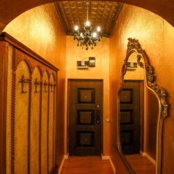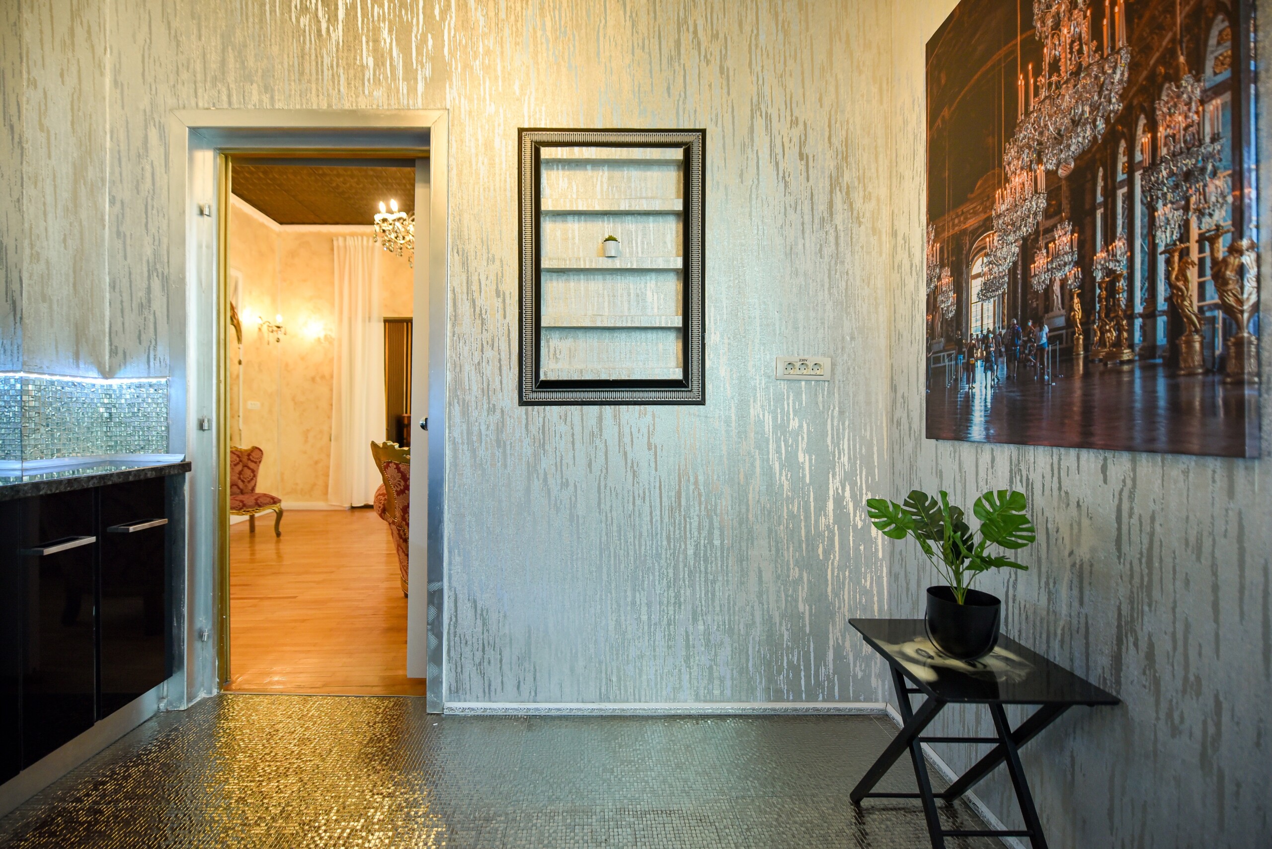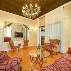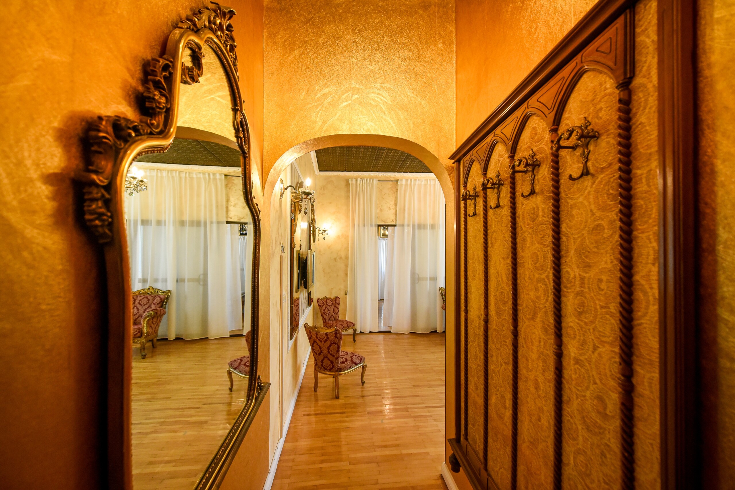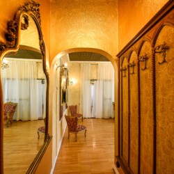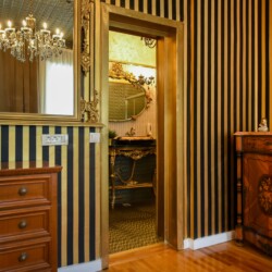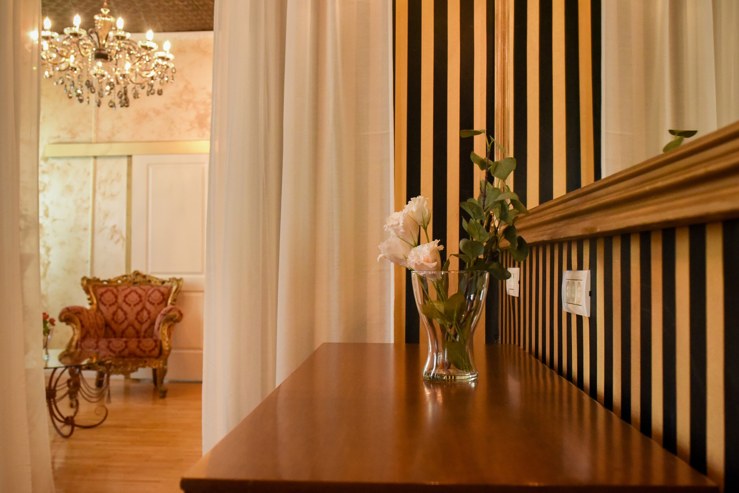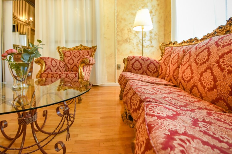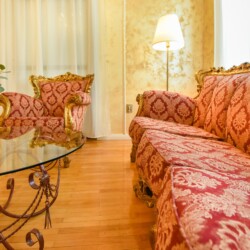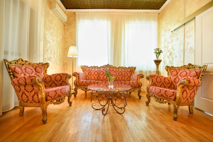 The fascinating incorporation of the baroque furnishings and decorations in a modern functional space creates an amazing home that is an absolute pleasure to be in. The cozy balcony with vintage furniture is a delight.