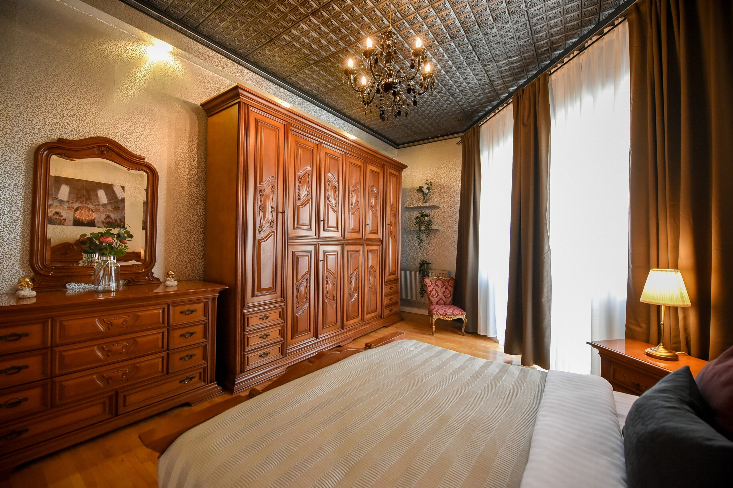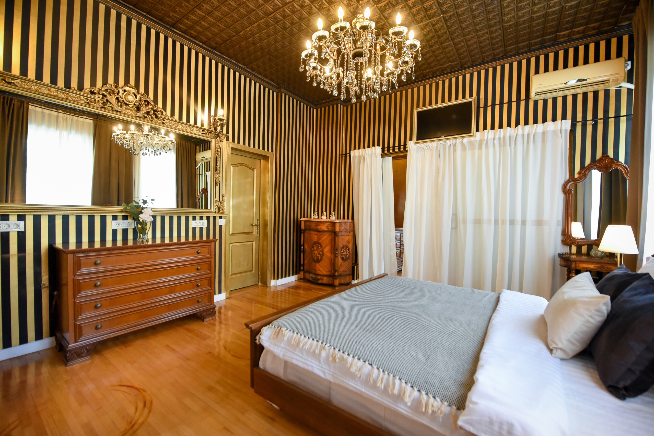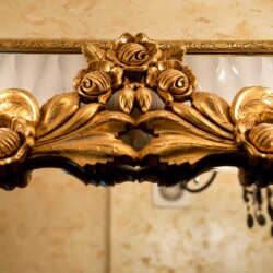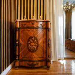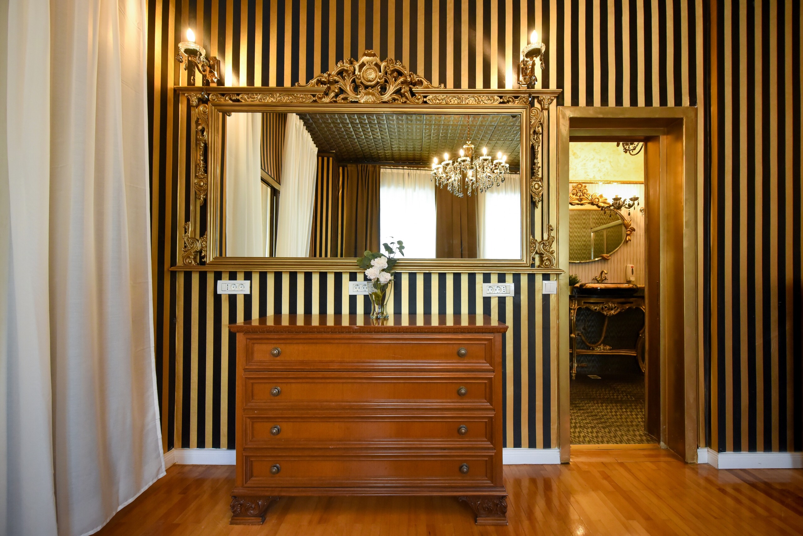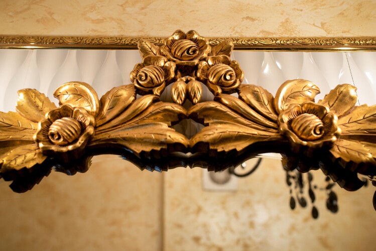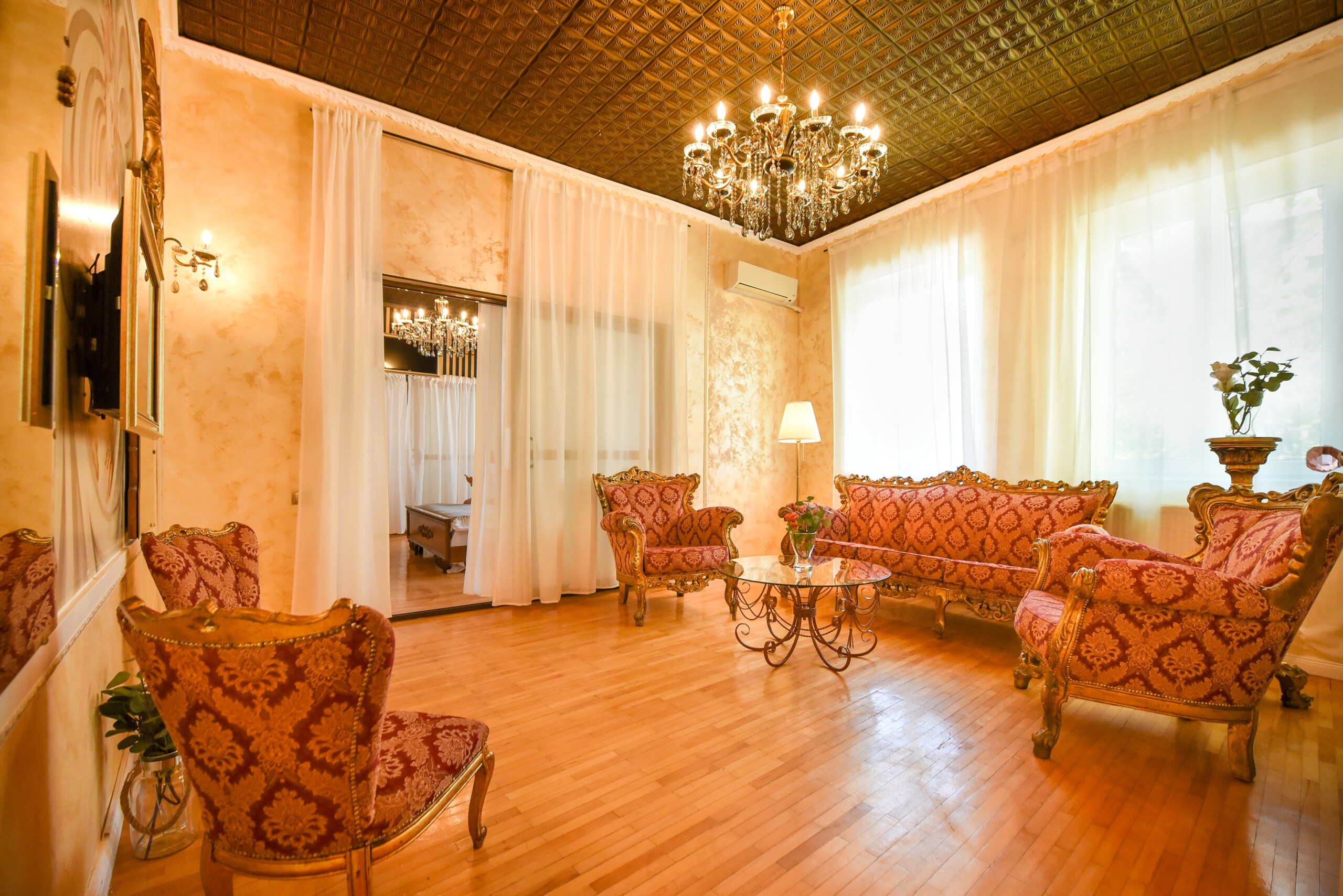 The fascinating incorporation of the baroque furnishings and decorations in a modern functional space creates an amazing home that is an absolute pleasure to be in. The cozy balcony with vintage furniture is a delight.