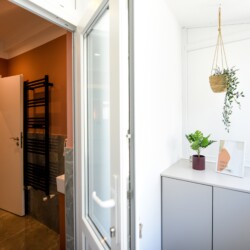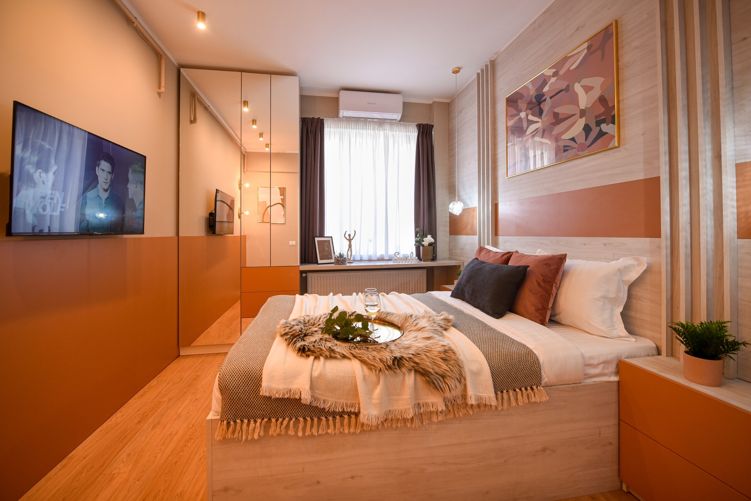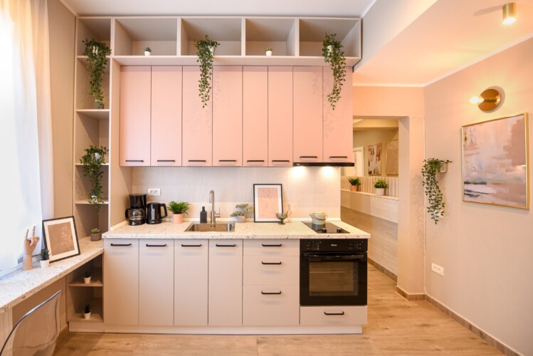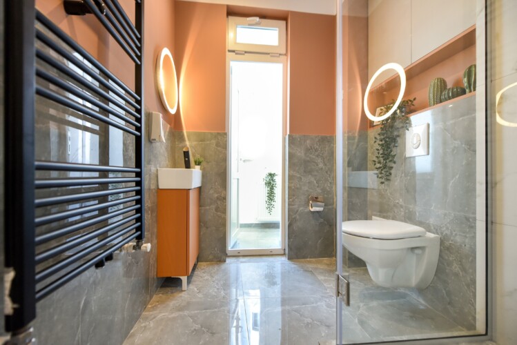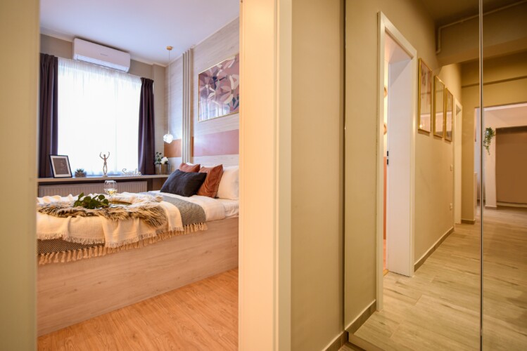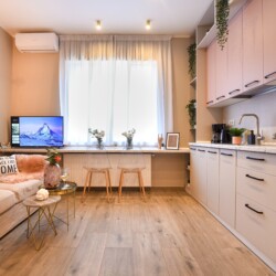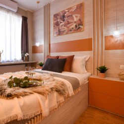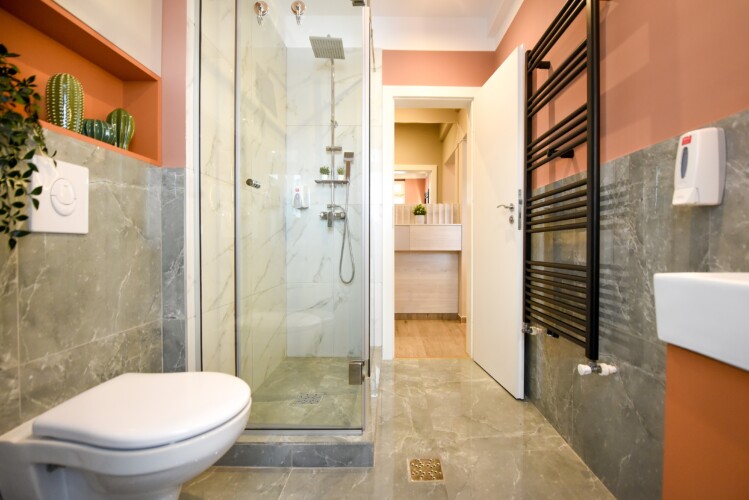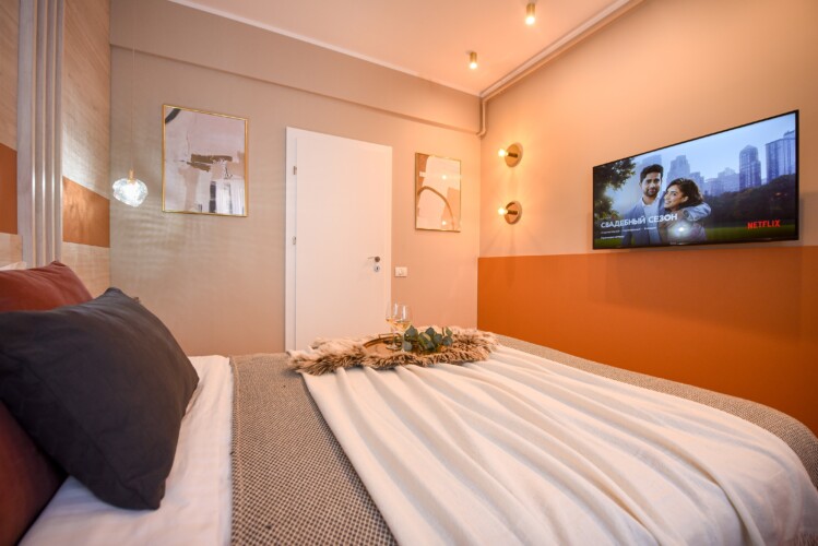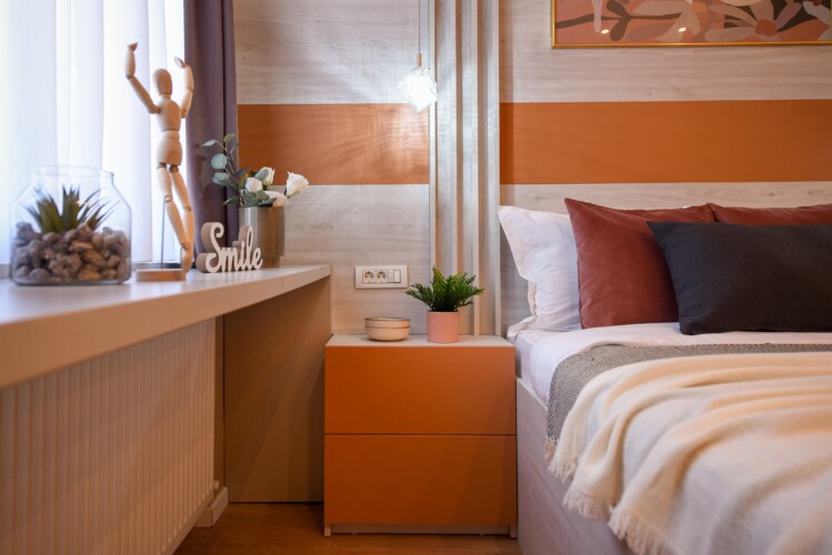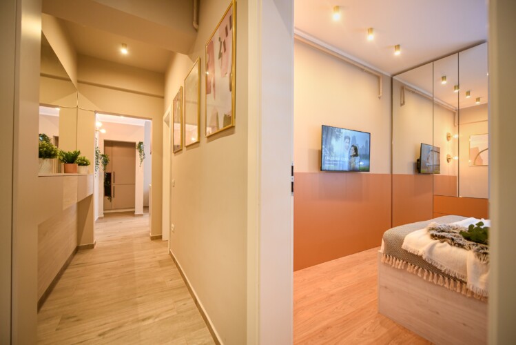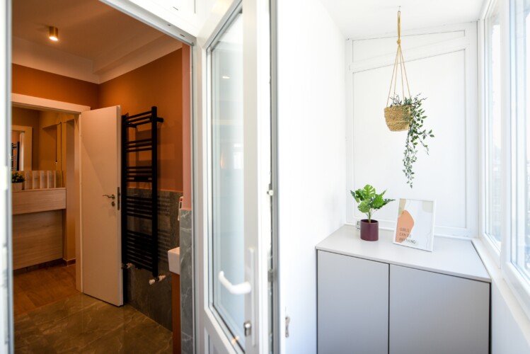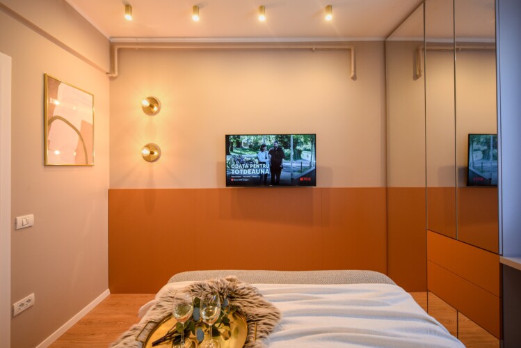 With its bright design completed with marks of energic colors, natural light, and a cozy atmosphere, this home will offer you the needed boost to start a wonderful day in Bucharest and be ready to discover the city.