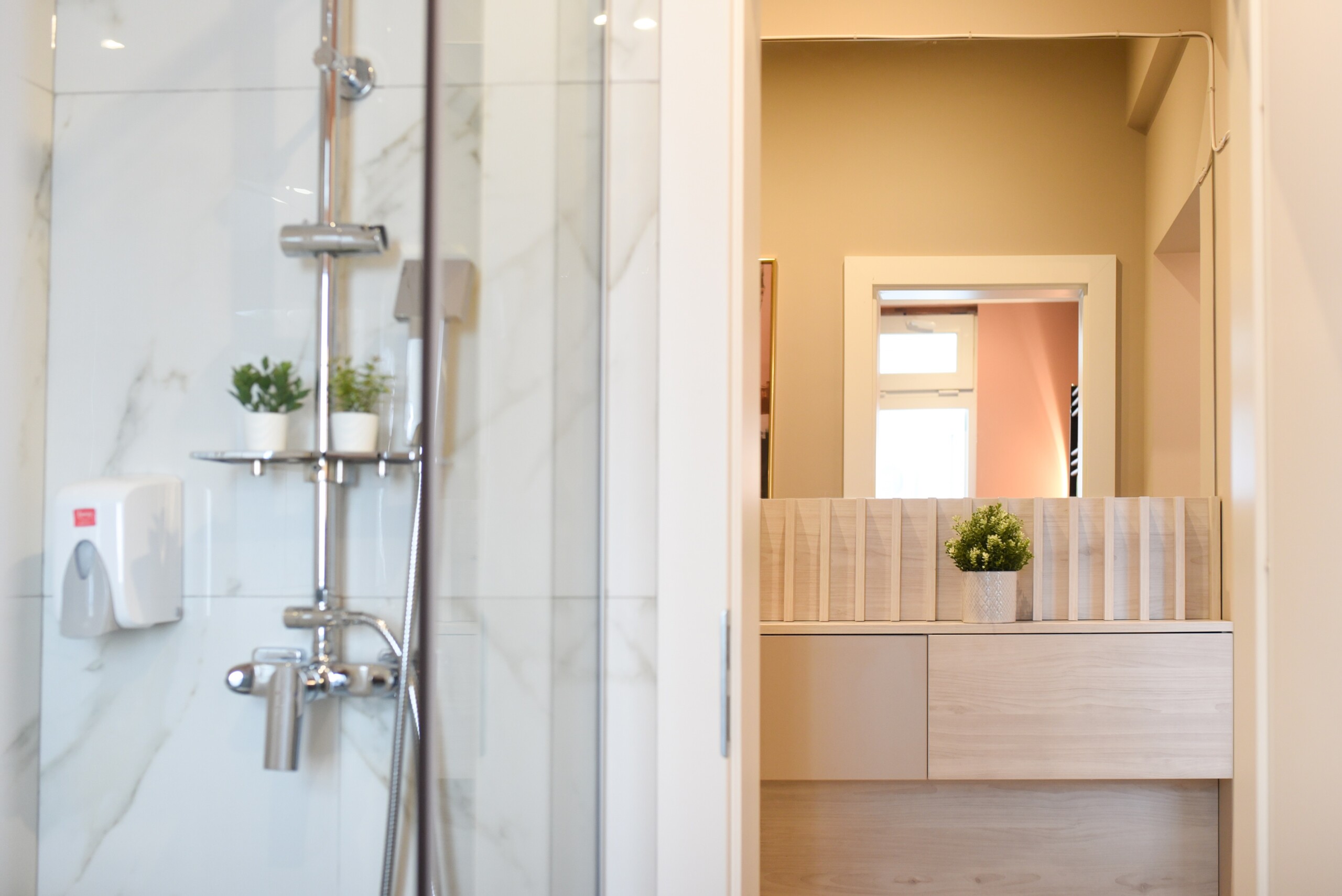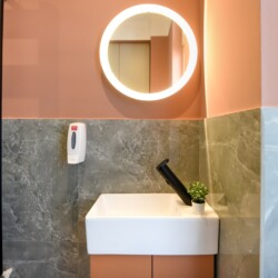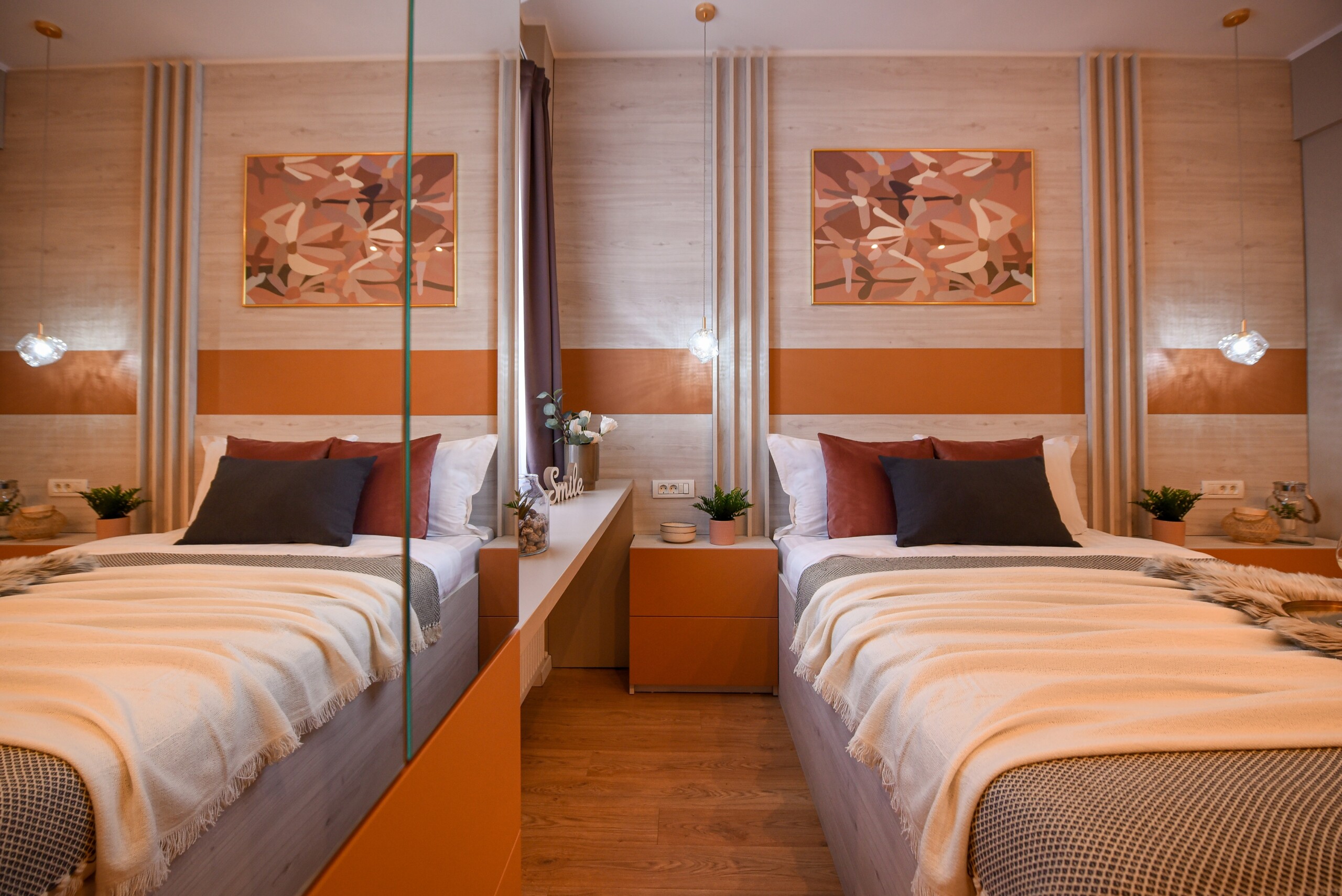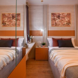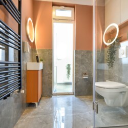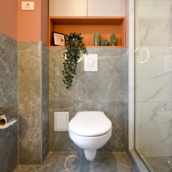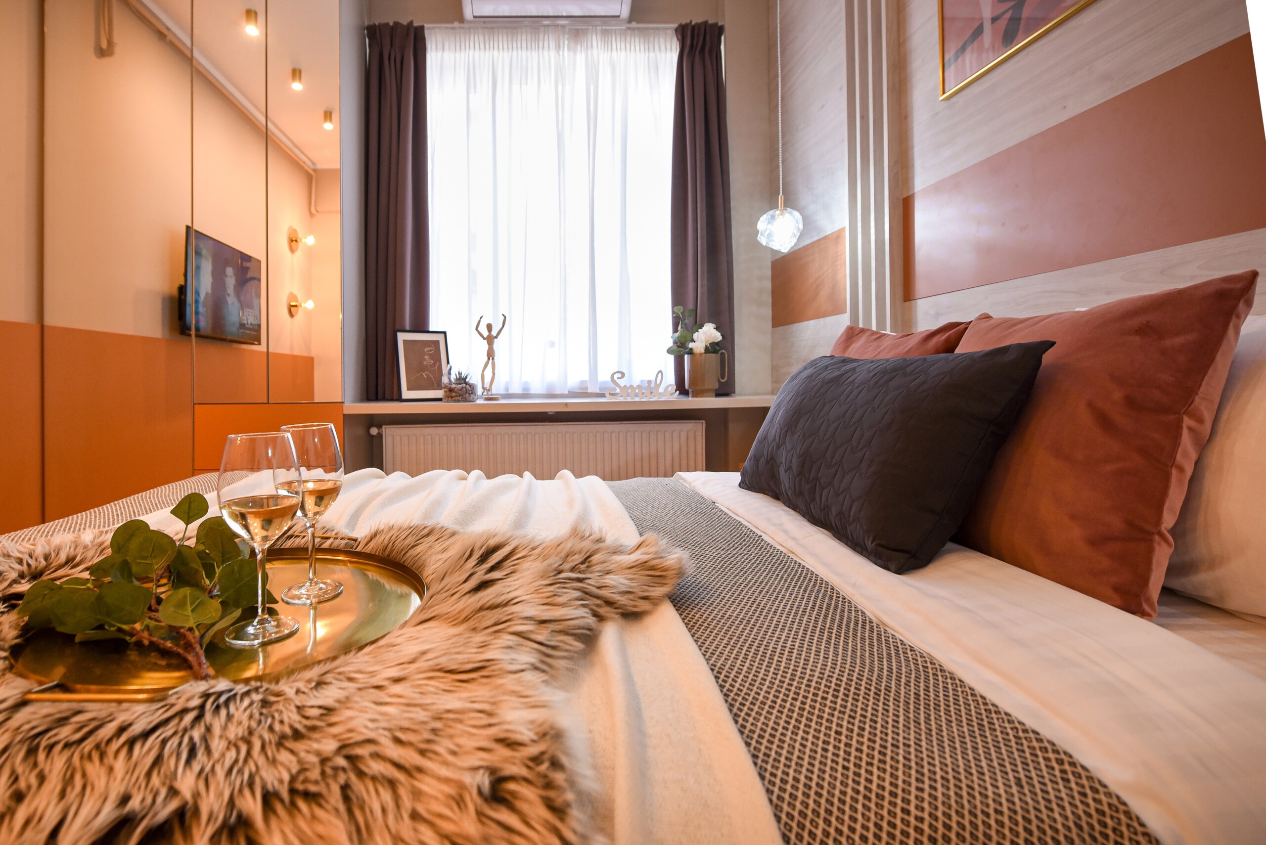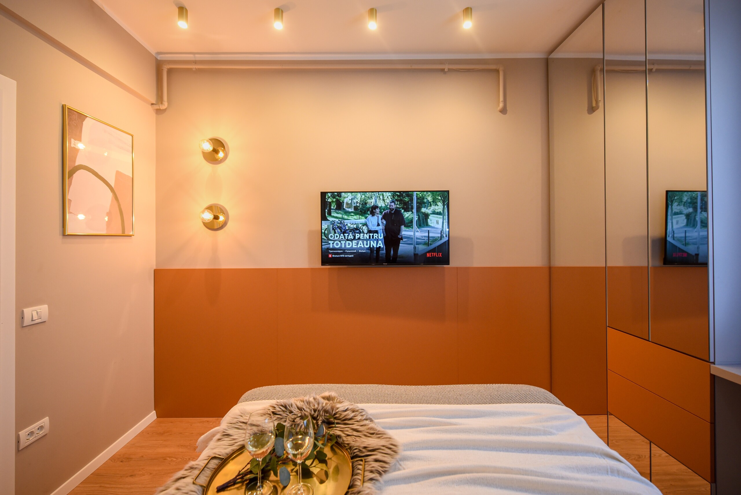 With its bright design completed with marks of energic colors, natural light, and a cozy atmosphere, this home will offer you the needed boost to start a wonderful day in Bucharest and be ready to discover the city.