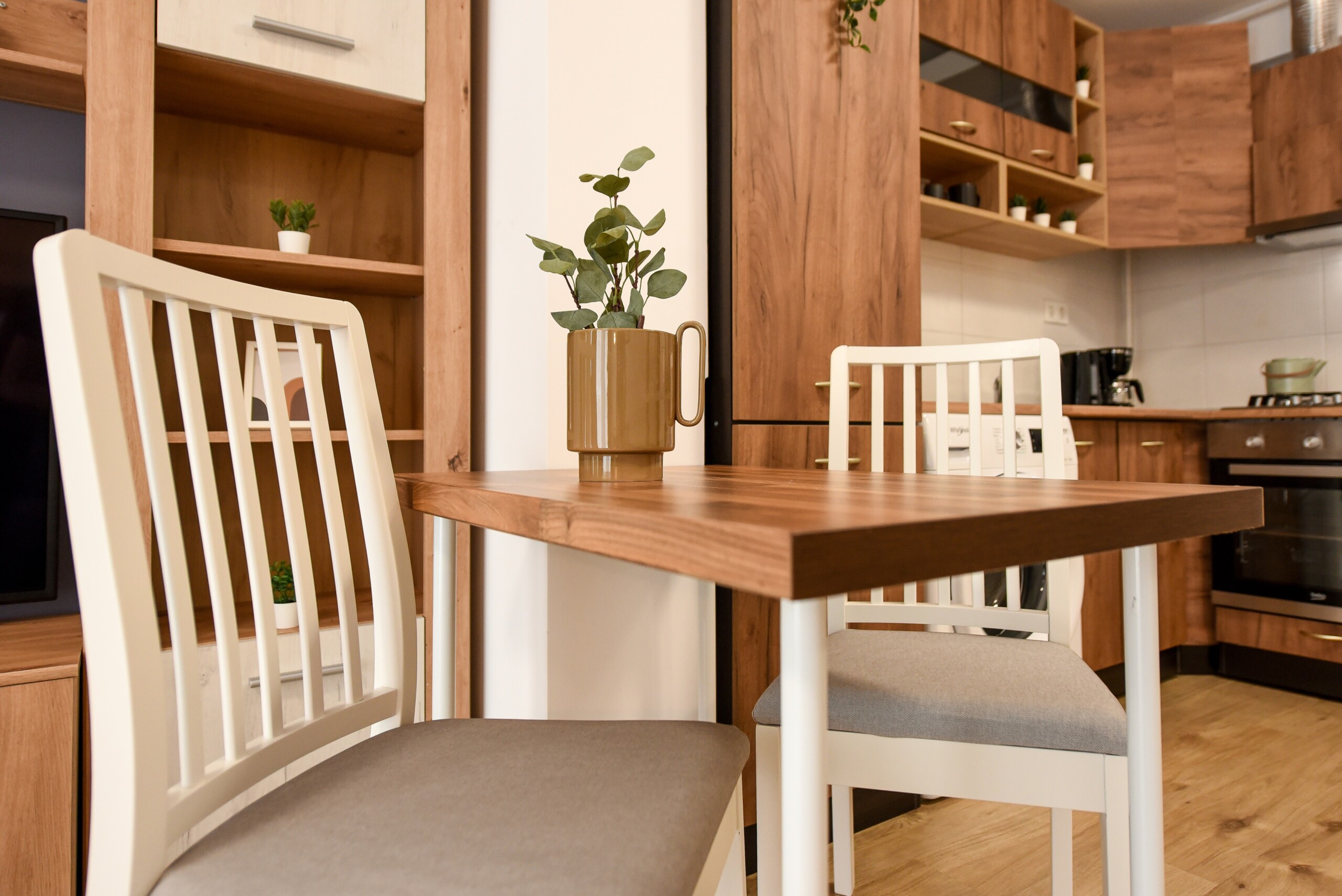 The home has been recently renovated, therefore the finishes are high quality, the amenities extensive, and the overall interior design extremely tasteful. The wooden details combined with refined tones of grey, offer an elegant touch, and the pleny natural ligth completes with the cozyness.
