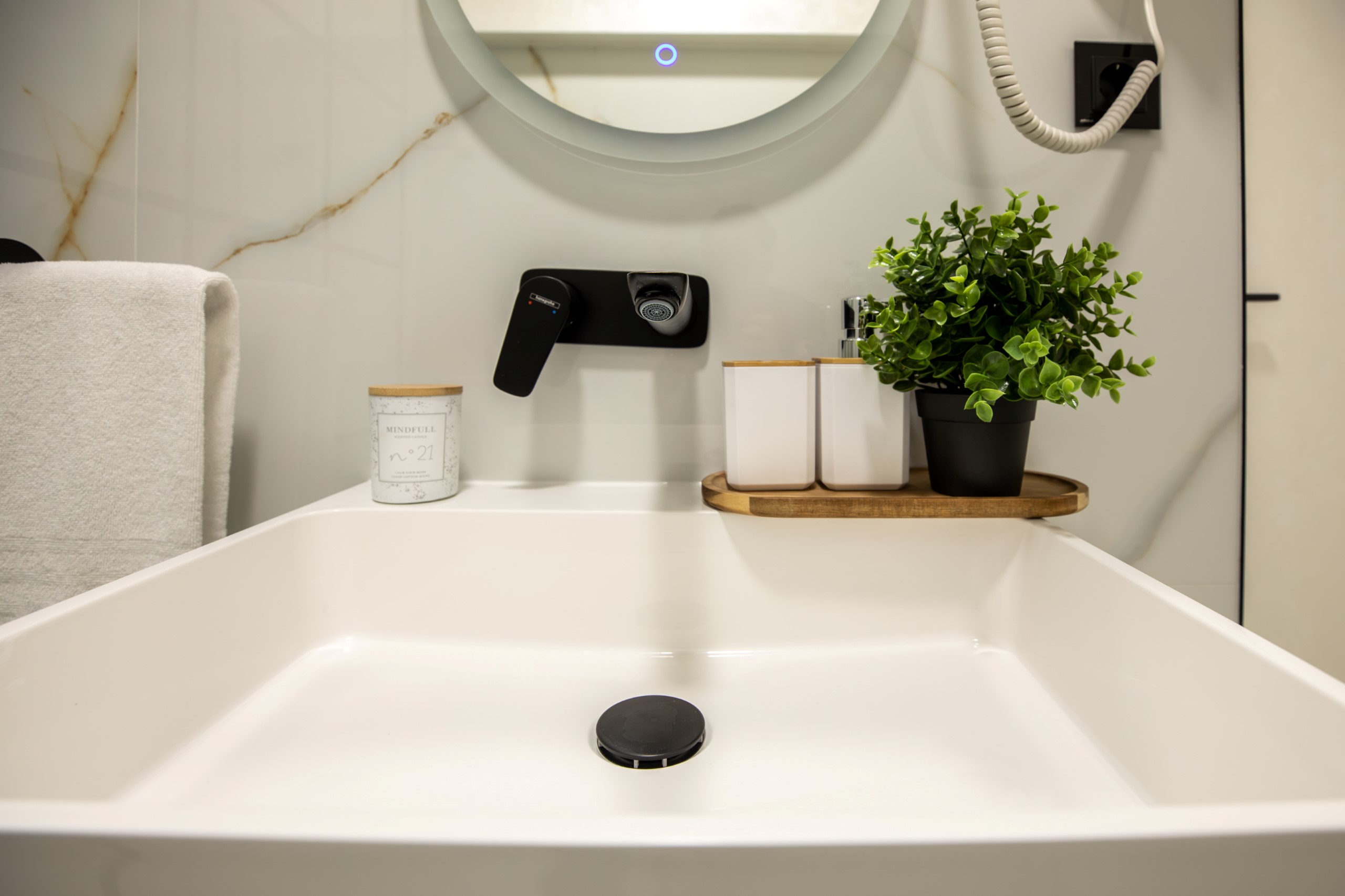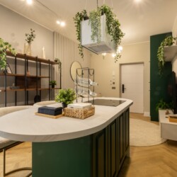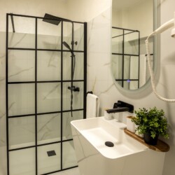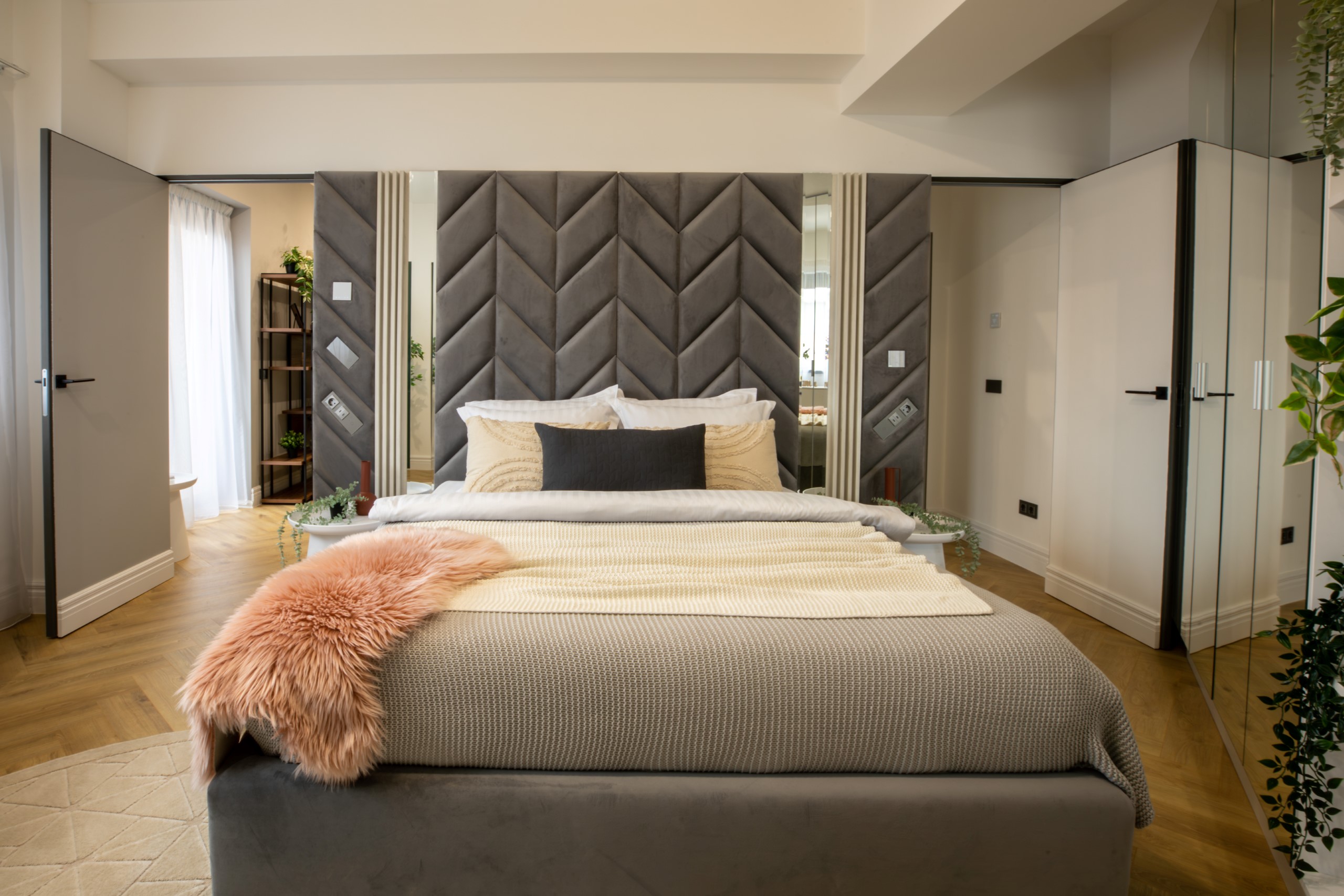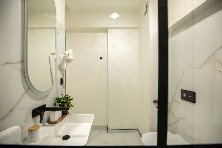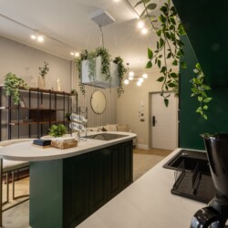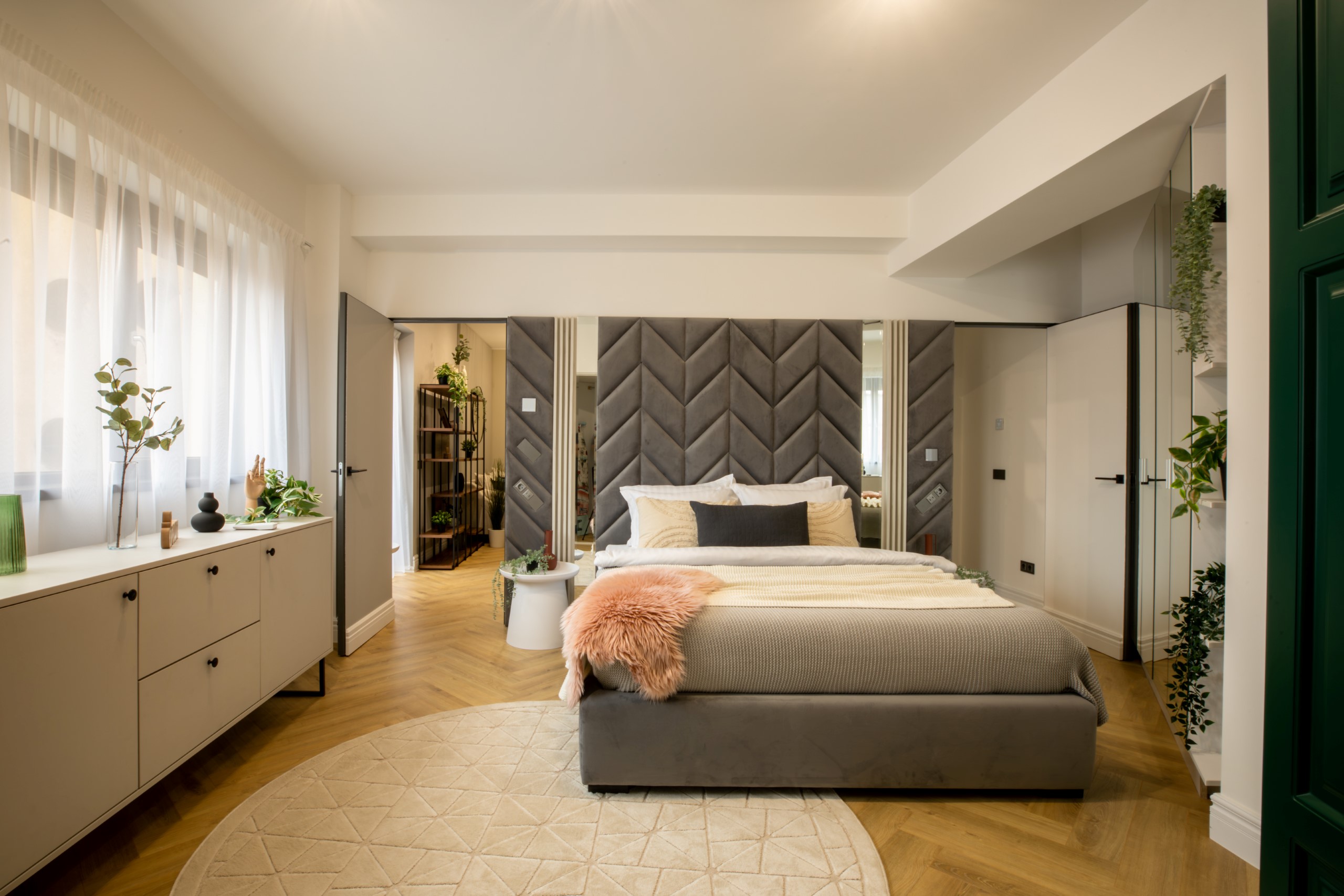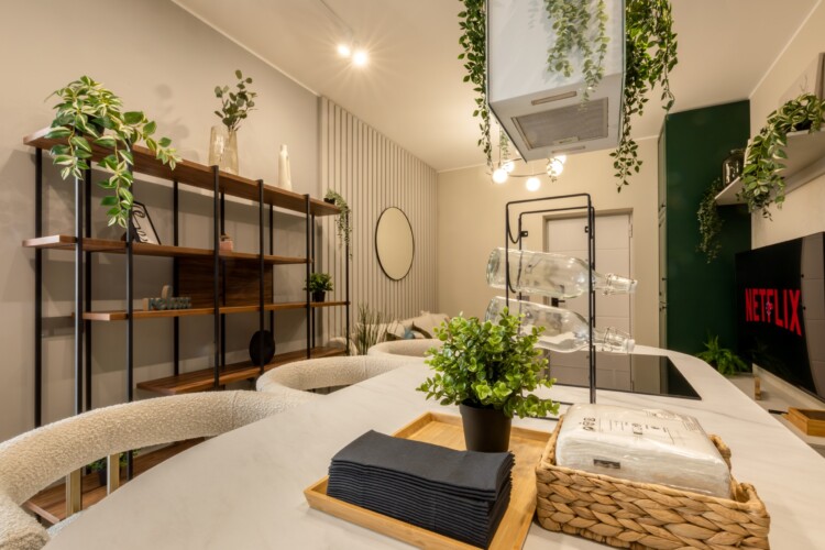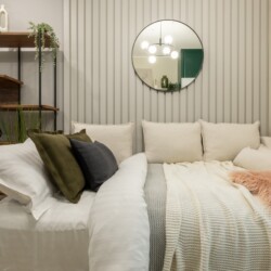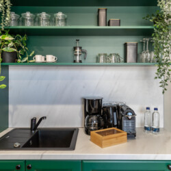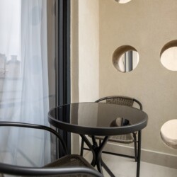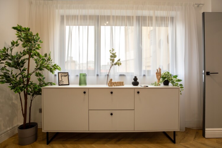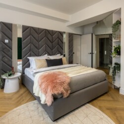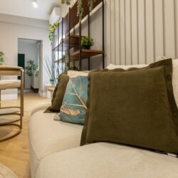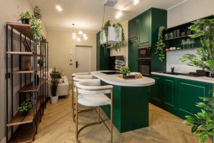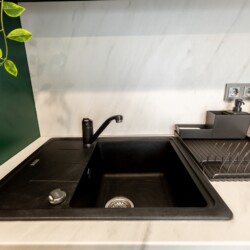 Immerse yourself in a space adorned with modern furniture and state-of-the-art appliances, ensuring utmost comfort and convenience during your stay. The mirror wardrobe adds a touch of elegance, while green elements throughout the apartment create a refreshing ambiance.