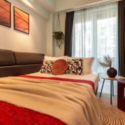 The apartment’s tasteful decor and thoughtfully selected furnishings exude a sense of sophistication and comfort.